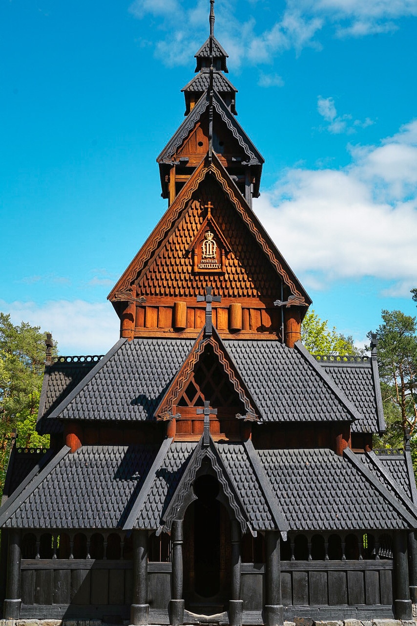 Le musée se compose d’un espace « vieille ville » et « campagne » qui présentent pas moins de 160 maisons de Norvège. La vieille ville comporte des bâtiments d’Oslo et d’autres villes. L’aire rurale montre les fermes typiques (beaucoup de fermes en bois avec des champs), des maisons de ville avec des rues pavées et cours intérieures qui dépeignent l’atmosphère de ville pour différents groupes sociaux, différentes régions norvégiennes à différentes périodes de temps. Durant l’été, des hôtes déguisés en costume traditionnel accueillent dans les maisons historiques, on peut voir les animaux de la ferme, faire de la cuisine traditionnelle, des tours en calèche et voir des performances de danse folkloriques. De nombreux intérieurs sont visibles comme une chambre d’ados, une ferme des années 50 avec des vaches, chevaux, moutons, cochons et poulets, une belle église médiévale en bois du 13ème siècle, une école des années 1860 avec des rangées de pupitres, petites ardoises, bouteilles d’encre et des crachoirs sur le sol, une cabane pour enfants avec des jouets des années 1950, donc vraiment différents styles d’intérieur et conditions de vie à différentes périodes et idéaux. On peut aussi visiter les intérieurs de commerces, comme ceux d’une pharmacie entre 1860 et 1960, d’une banque de 1897, d’un magasin de vente d’alcool, d’un magasin de fruits et de tabac et d’une confiserie. Les artisans accueillent dans leur ateliers où ils font et vendent leurs produits (le tisserand fabrique, dessine et vend des textiles traditionnels et modernes de Norvège; le cirier fait des bougies dans différentes formes, tailles et couleurs, l’orfèvre réalise des bijoux pour les costumes traditionnels folkloriques et des pièces modernes inspirées de cet art folklorique; le potier produit des objets faits mains avec des pigments, décorations et formes datant des années 1600.