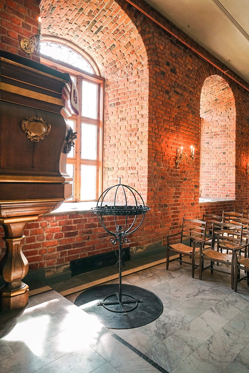 Cependant, l’Eglise du château, la crypte Mausolée de la famille Royale et le Donjon se visitent. A cet effet, les appartements royaux ont été transformés en grand hall de style baroque nordique. L’église du même style a quant à elle, conservé son rôle d’antan après de multiples restaurations.
