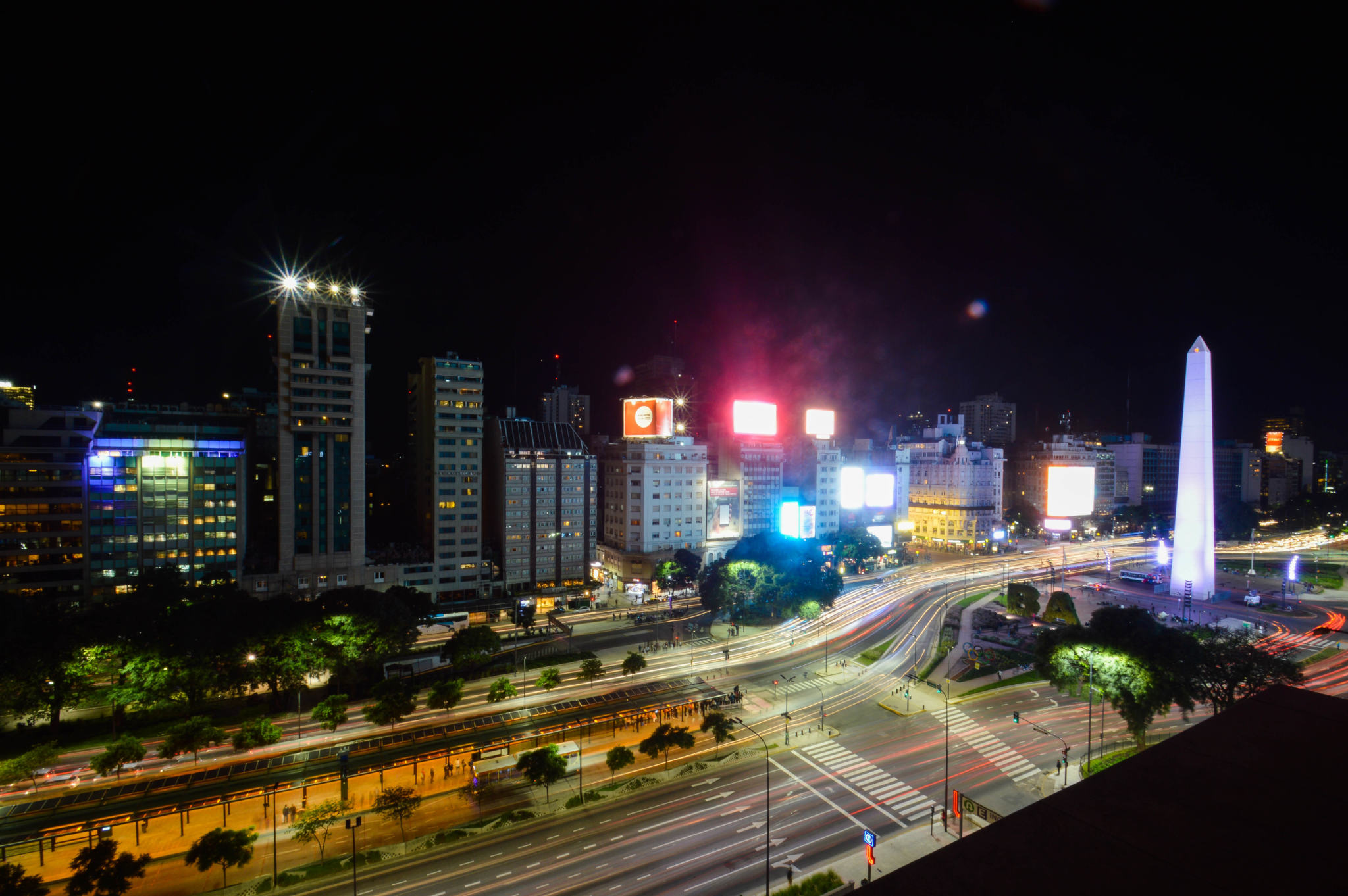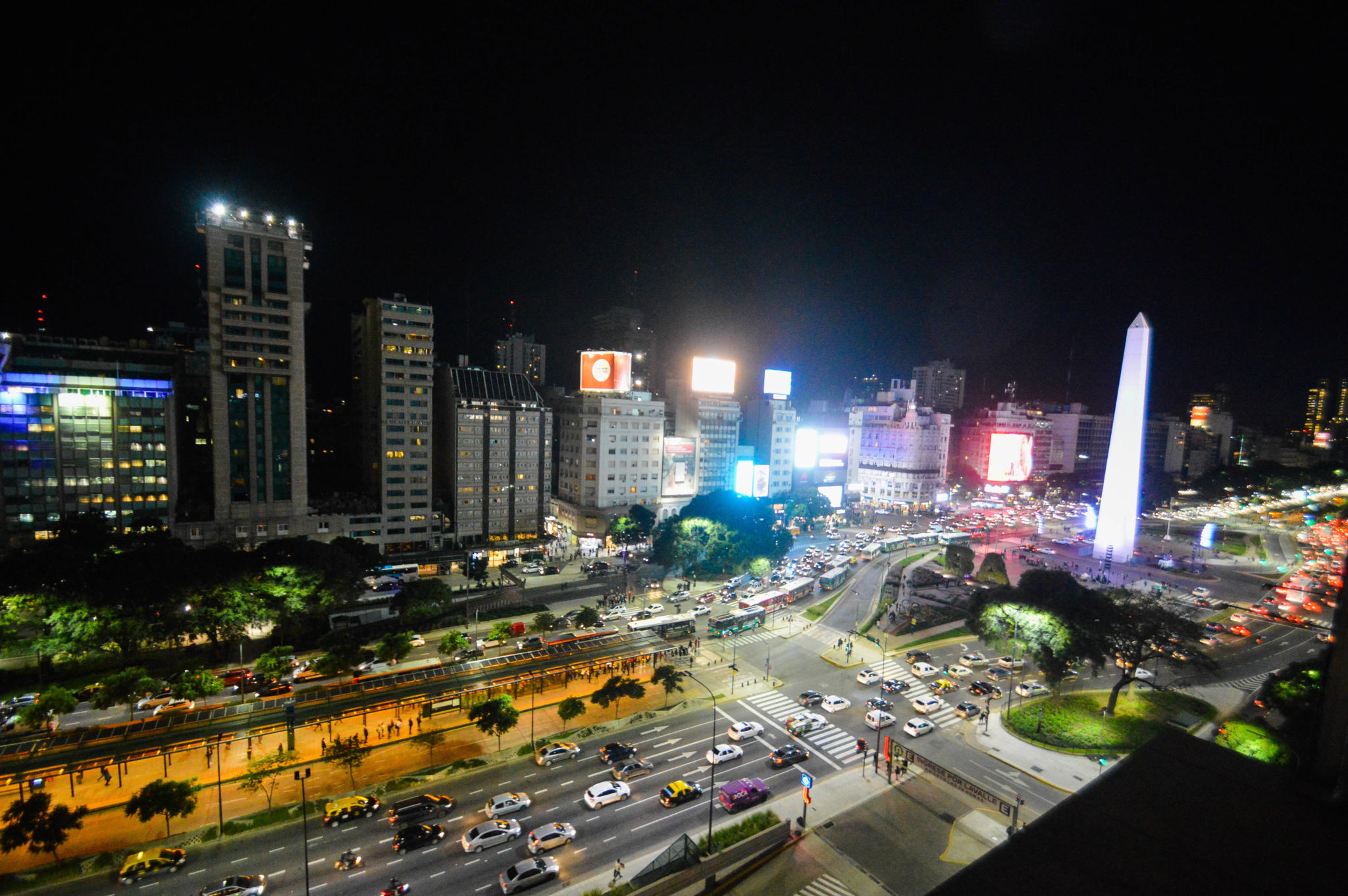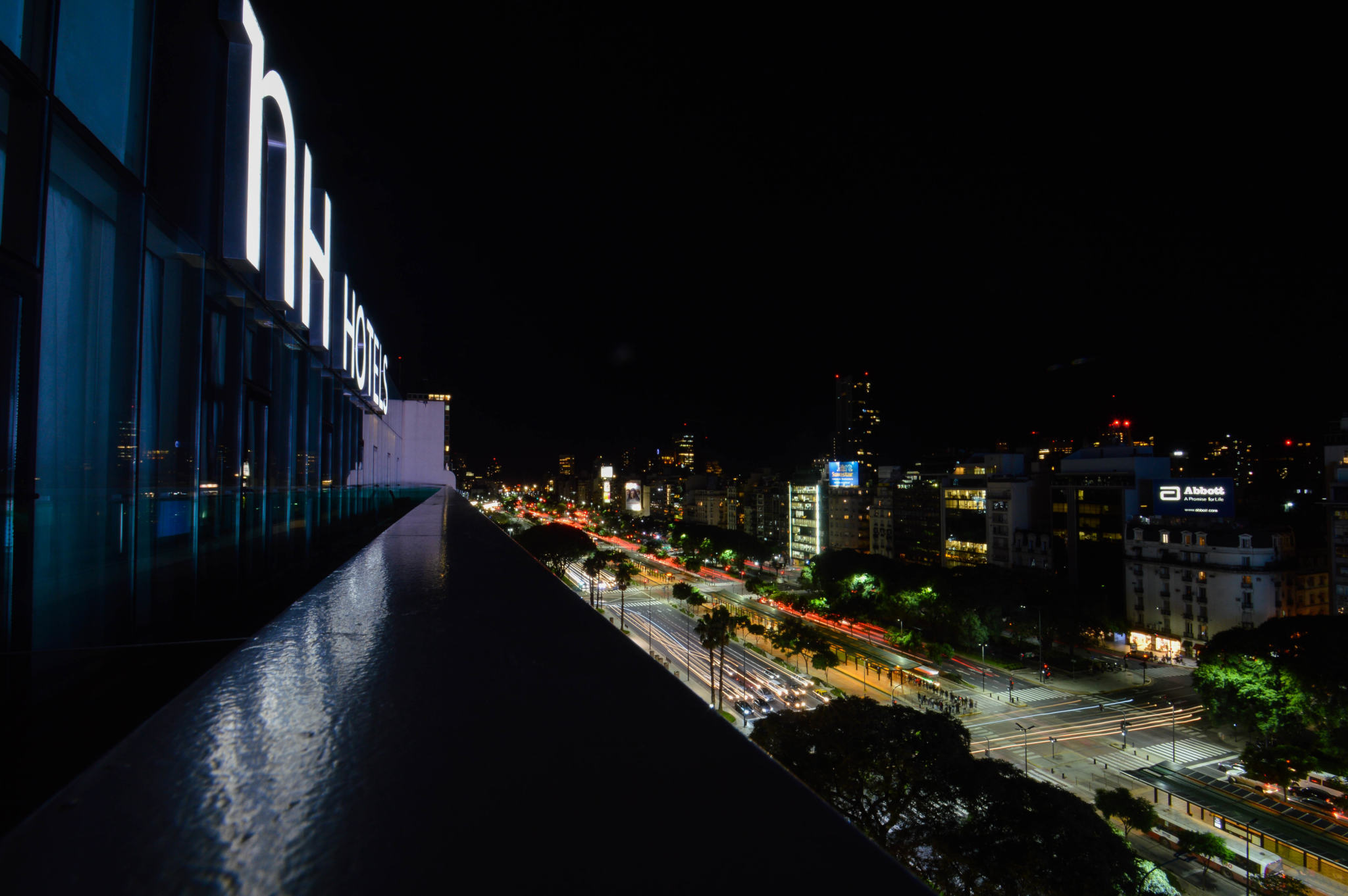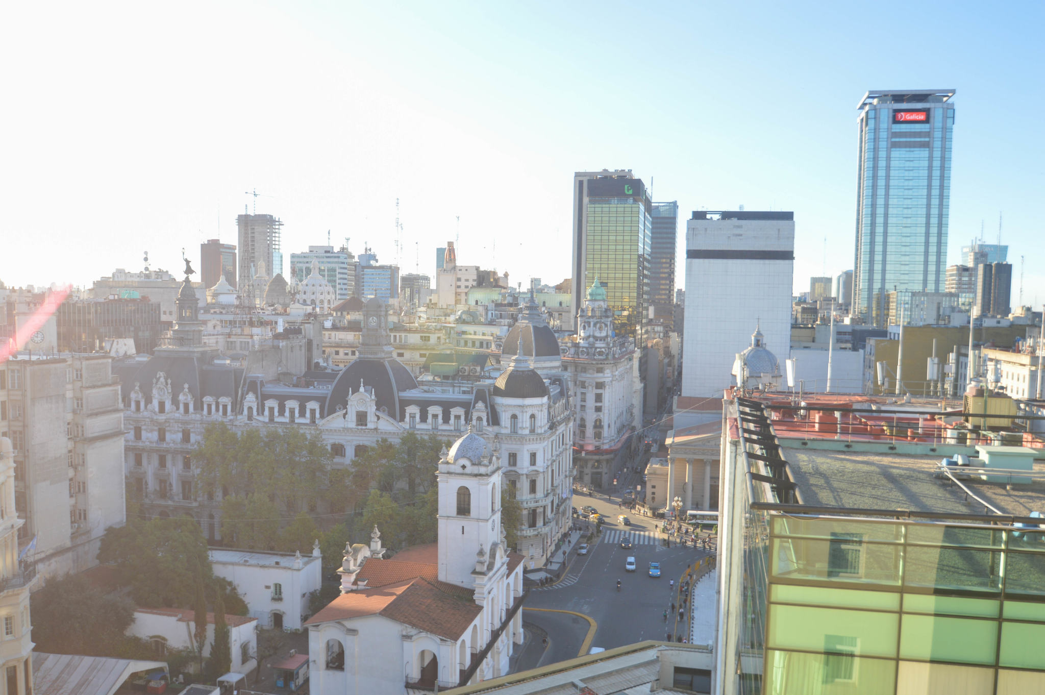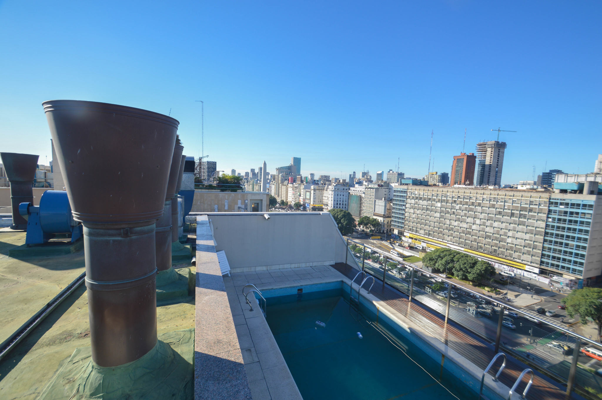 Si vous n’avez pas peur des hauteurs, vous pouvez tenter votre chance d’entrer sur les rooftops de grands hôtels, en demandant la permission bien sûr. J’ai rencontré les marketing managers de différents NH Hotels de la ville qui ont accepté de me laisser monter pour regarder la vue et faire quelques prises. Très jolies vues d’en haut, et avec le soleil on a été gâtés ! Première vue sur la plus large avenue du monde avec ses 140m de largeur et ses 4km de distance, l’Avenida 9 de Julio, nom d’hommage au 9 Juillet 1816, jour de l’Indépendance de l’Argentine. Sa largeur non singulière est due à la structure en damier, les carrés étant appelés les « manzanas ».