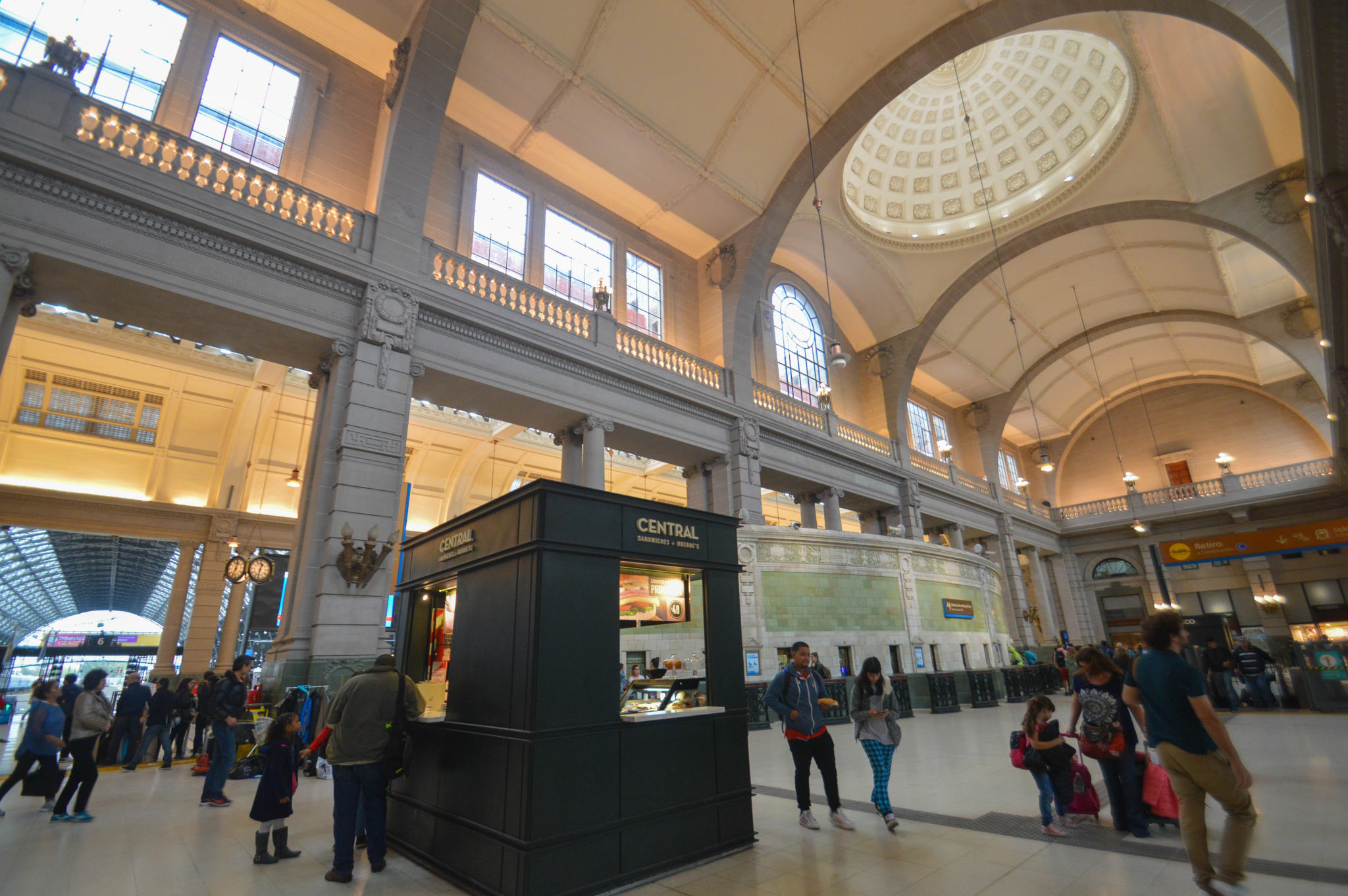 Situé à l’Est de la ville, le quartier de Retiro est unique en son genre. Unique parce qu’il n’a pas d’homogénéité, il est plutôt très divers et non harmonisé comme les autres. Il faut dire qu’il concentre énormément de lieux d’intérêt sans liens. La gare centrale, joli bâtiment à l’influence britannique, très fréquentée, avec vue sur la Plaza San Martín et sur le triste bidonville de villa favela 31 (encore appelé Villa Miseria) des logements précaires et une situation sociale misérable, un peu plus loin puis la Tour des Anglais (ou Tour Monumentale), le Palacio Paz, le Plaza Hotel (le plus ancien palace construit), l’édifice Kavanagh (de l’Art Déco dans toute sa splendeur), la Basilica del Santisimo Sacramento, la Basilica de Nuestra Señora del Socorro, le Musée d’Art hispano-américain, le Musée national ferroviaire, le centre naval, le Palacio San Martin, la calle Tres Sargentos, le Théâtre National Cervantes, le Palacio Estrugamou (au style très parisien), le Palacio Haedo (le plus ancien hôtel particulier sur la Plaza San Martin), les trois stations ferroviaires de Retiro, Terminal de Omnibus de Retiro…