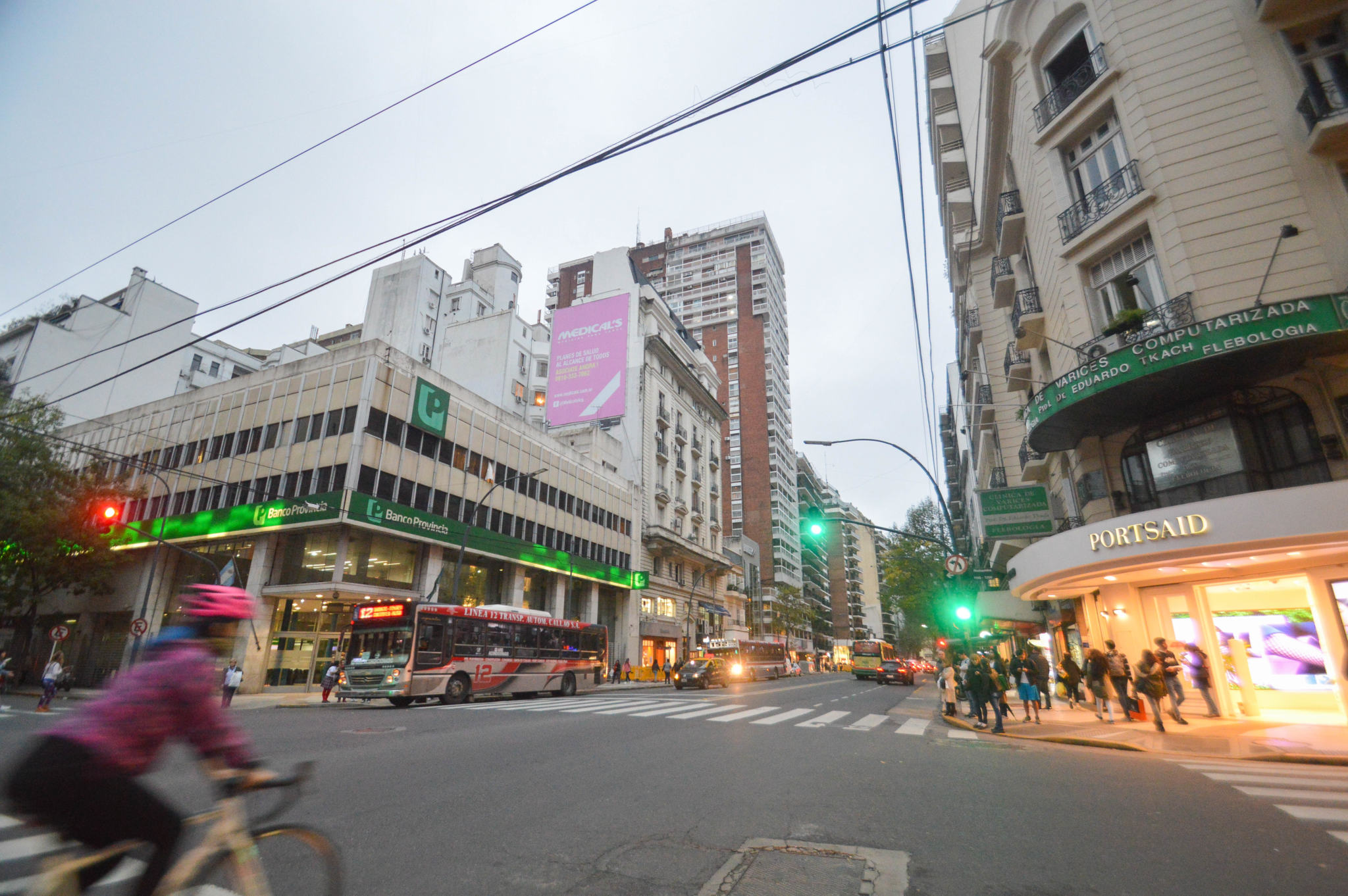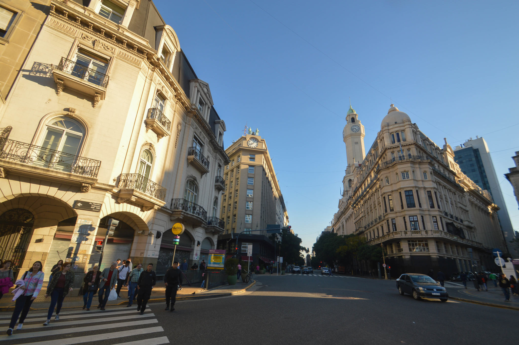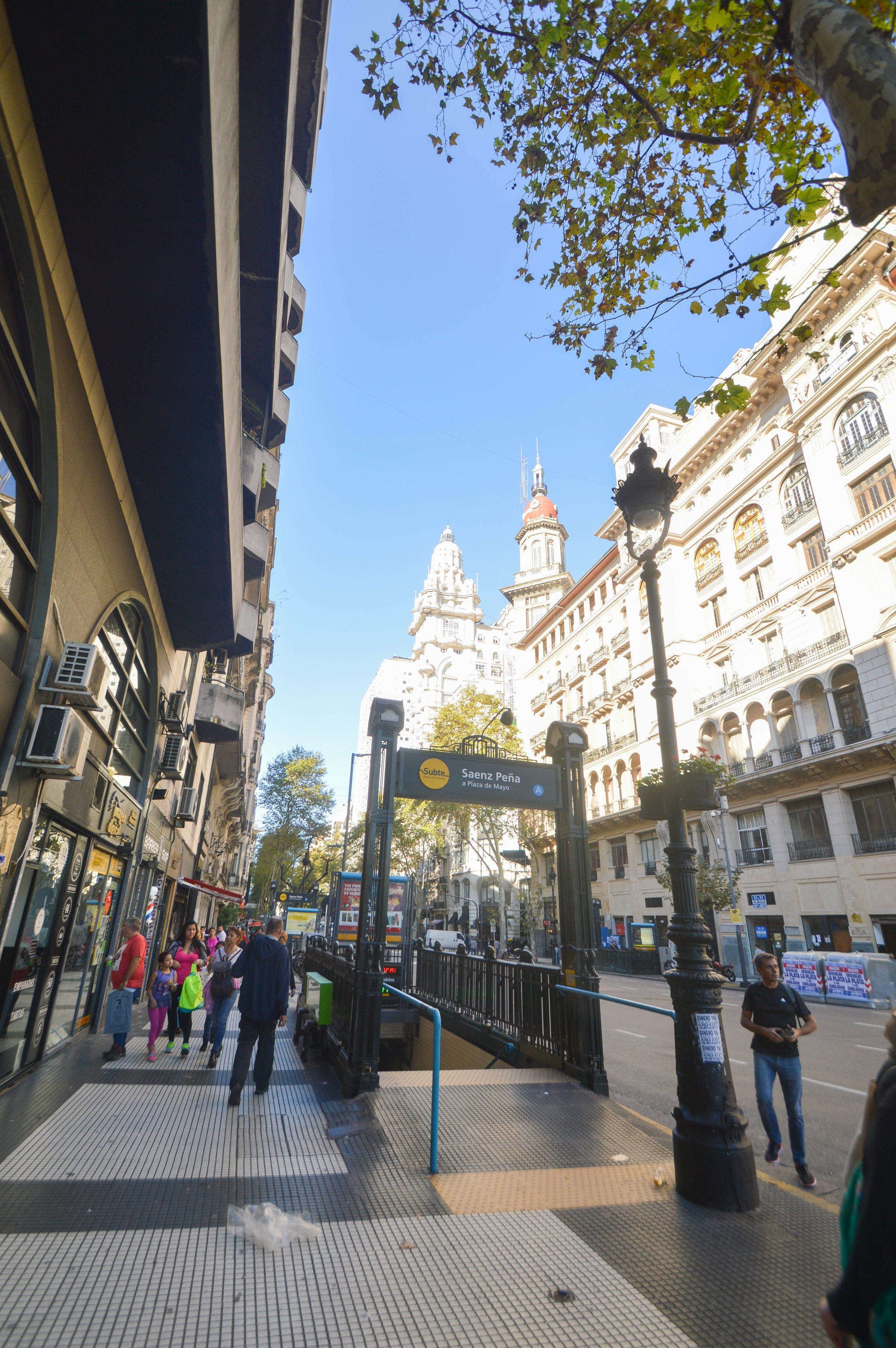 Cette fois-ci, nous sommes dans le micro-centro, dans le coeur du quartier financier d’affaires et des arts du spectacle. Avec le quartier Monserrat, le quartier de San Nicolas est le plus ancien de la ville. On y trouve des sièges de banques et d’assurances dans la partie Est. Dans l’Ouest, dans l’Avenida Corrientes, ce sont plutôt les côtés juridique et culturel qui prévalent. Tribunaux et théâtres à tout va. Des buildings élevés de bureaux sur l’Avenida Diagonal Norte, des magasins d’or et bijoux sur la calle Libertad, et la rue piétonne Calle Florida.