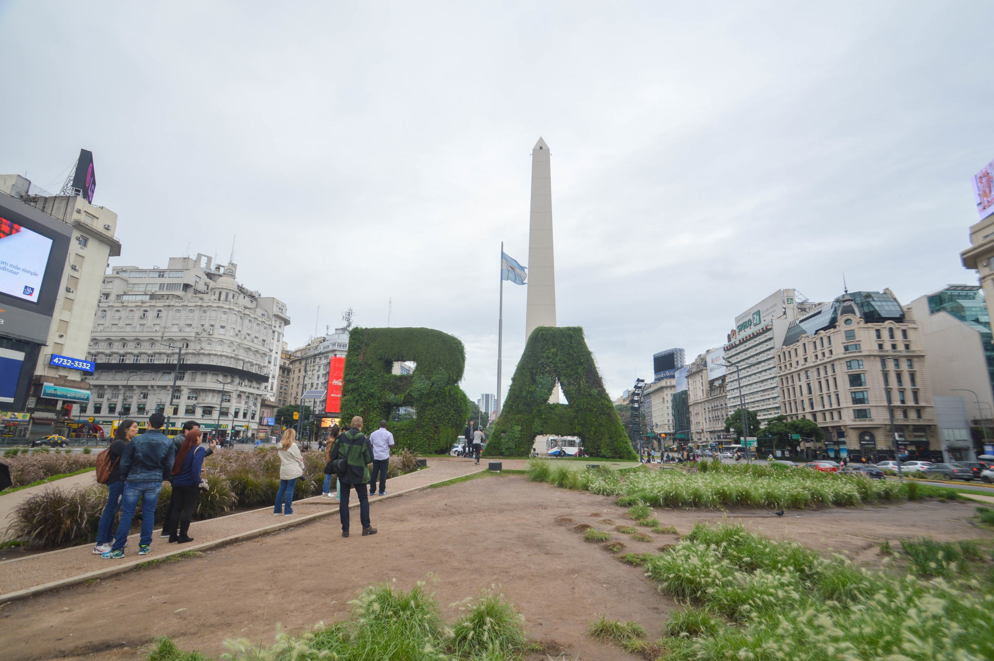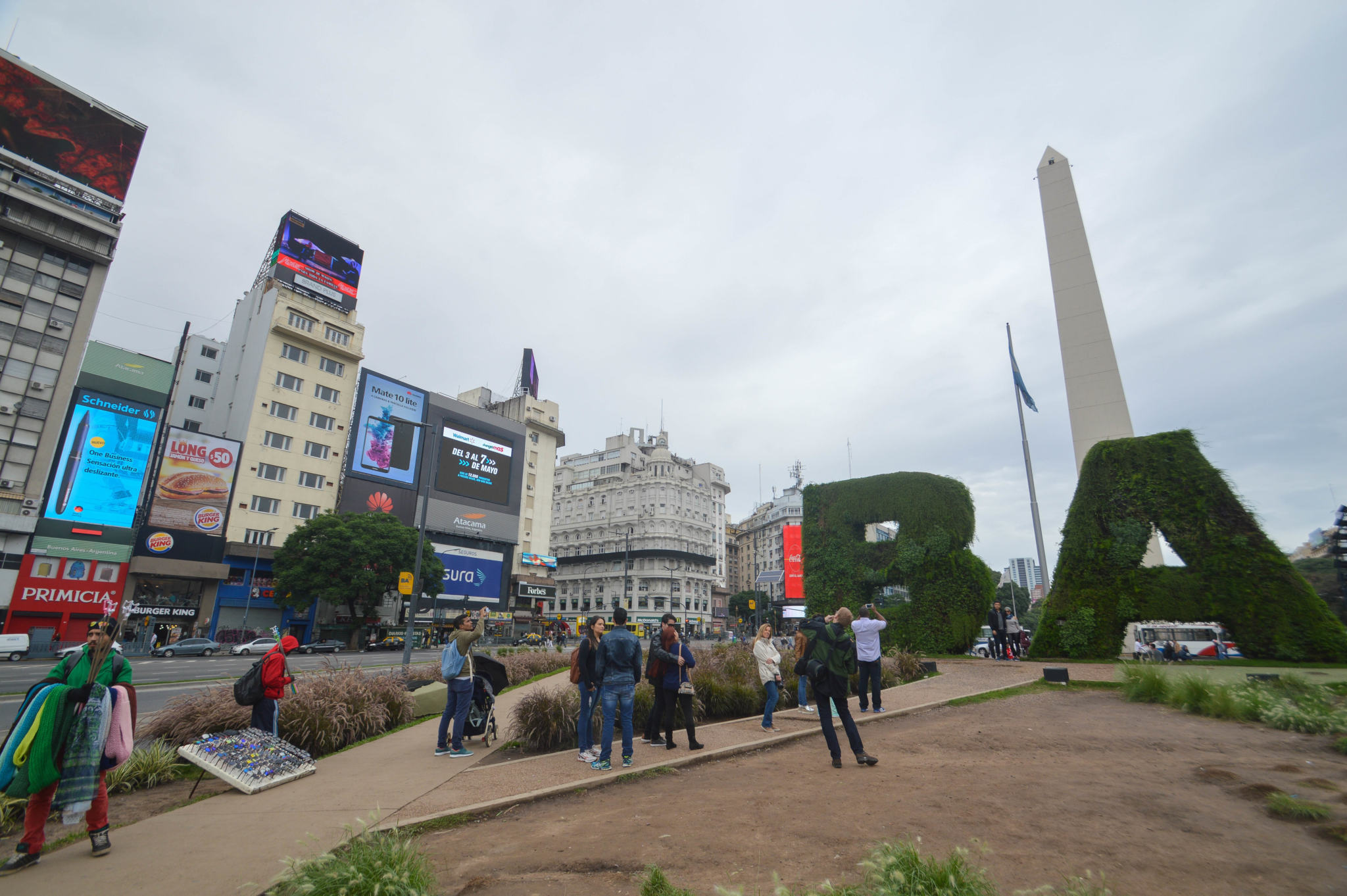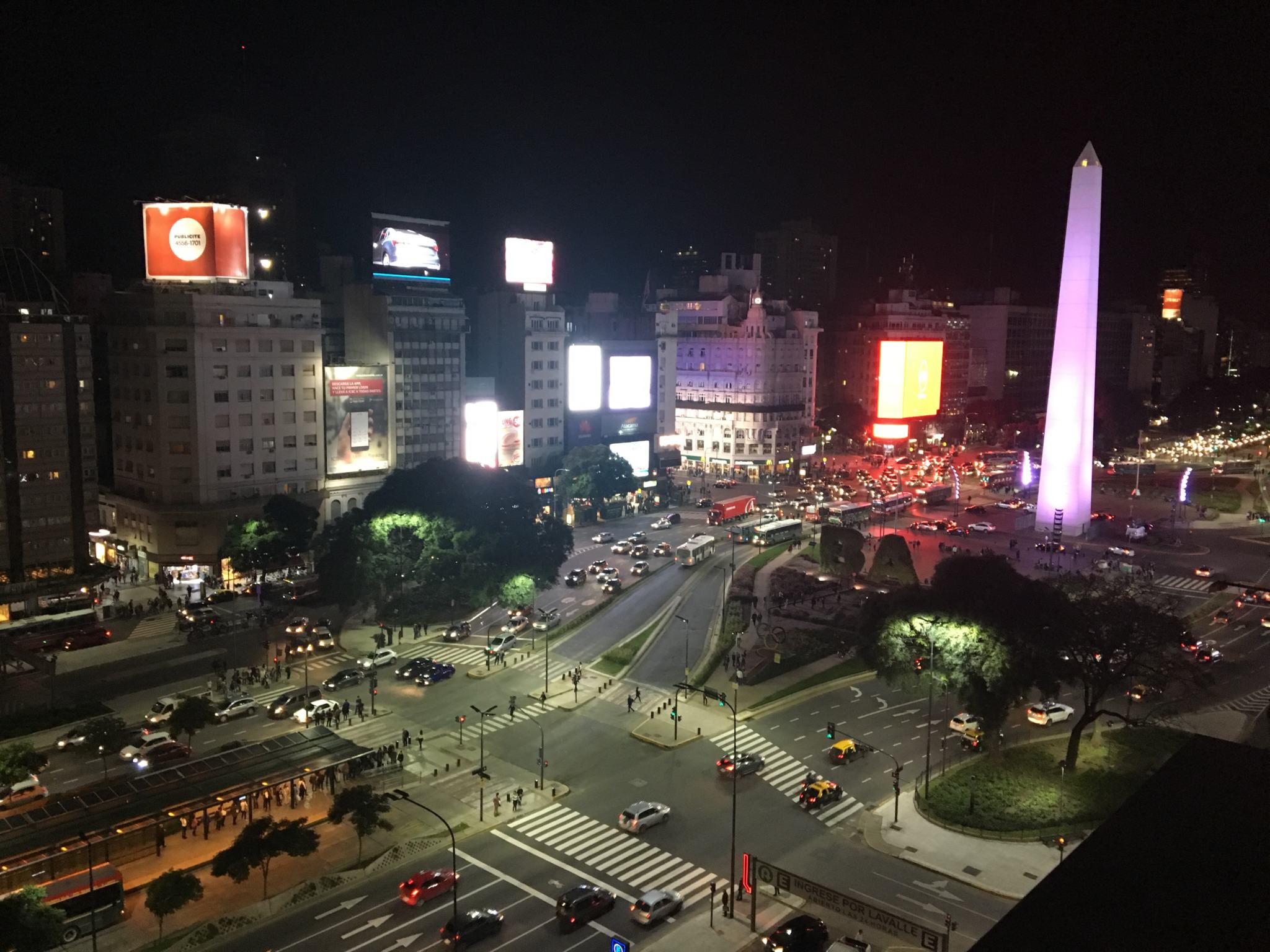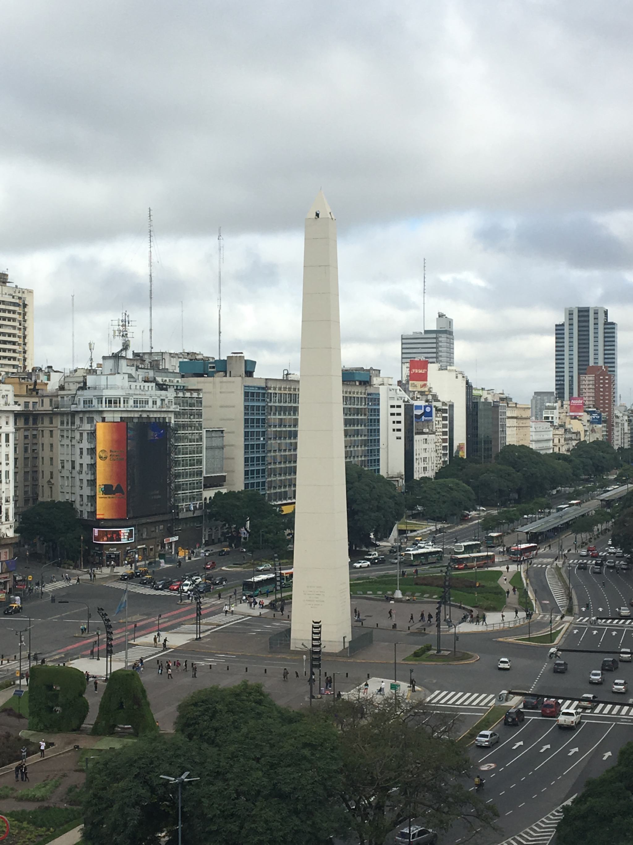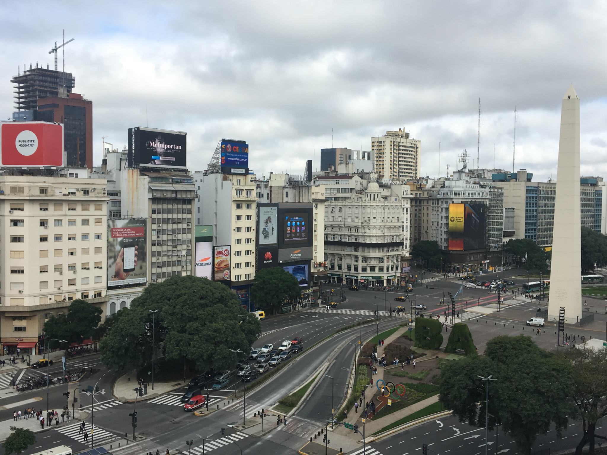 Ici, la Plaza de la República, avec l’Obélisque, l’icône de Buenos Aires, fondé en 1936 en commémoration du 4ème centenaire de la fondation de la ville. Il mesure 68 mètres de hauteur (contre 22,87m pour l’Obélisque de Louxor sur la Place de la Concorde à Paris).