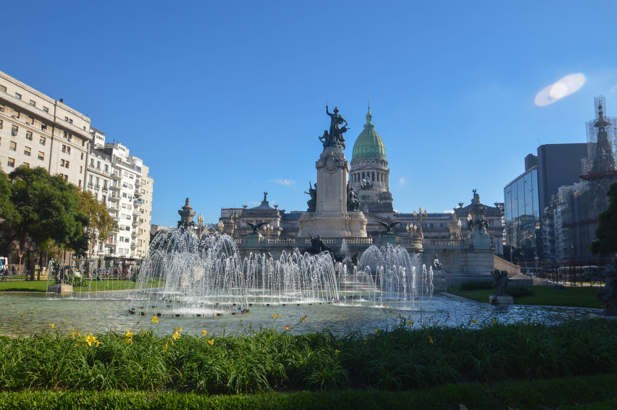 La Place du Congrès est reliée de façon historique à la Plaza de Mayo, unissant finalement les deux piliers politique et institutionnel, le pouvoir exécutif à la Casa Rosada et le pouvoir législatif dans le Congrès national, les jalons fondamentaux de la République argentine. Marches, défilés, manifestations et tout le protagonisme qu’il a pu y avoir au cours de l’histoire continuent de se retrouver entre ces deux axes fondamentaux.