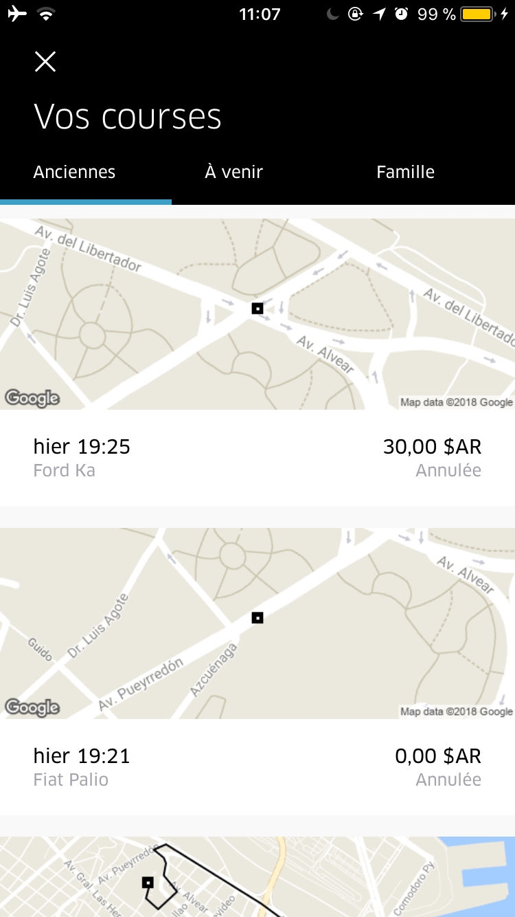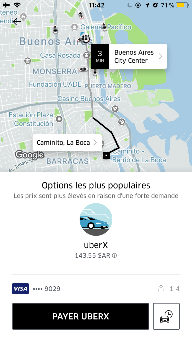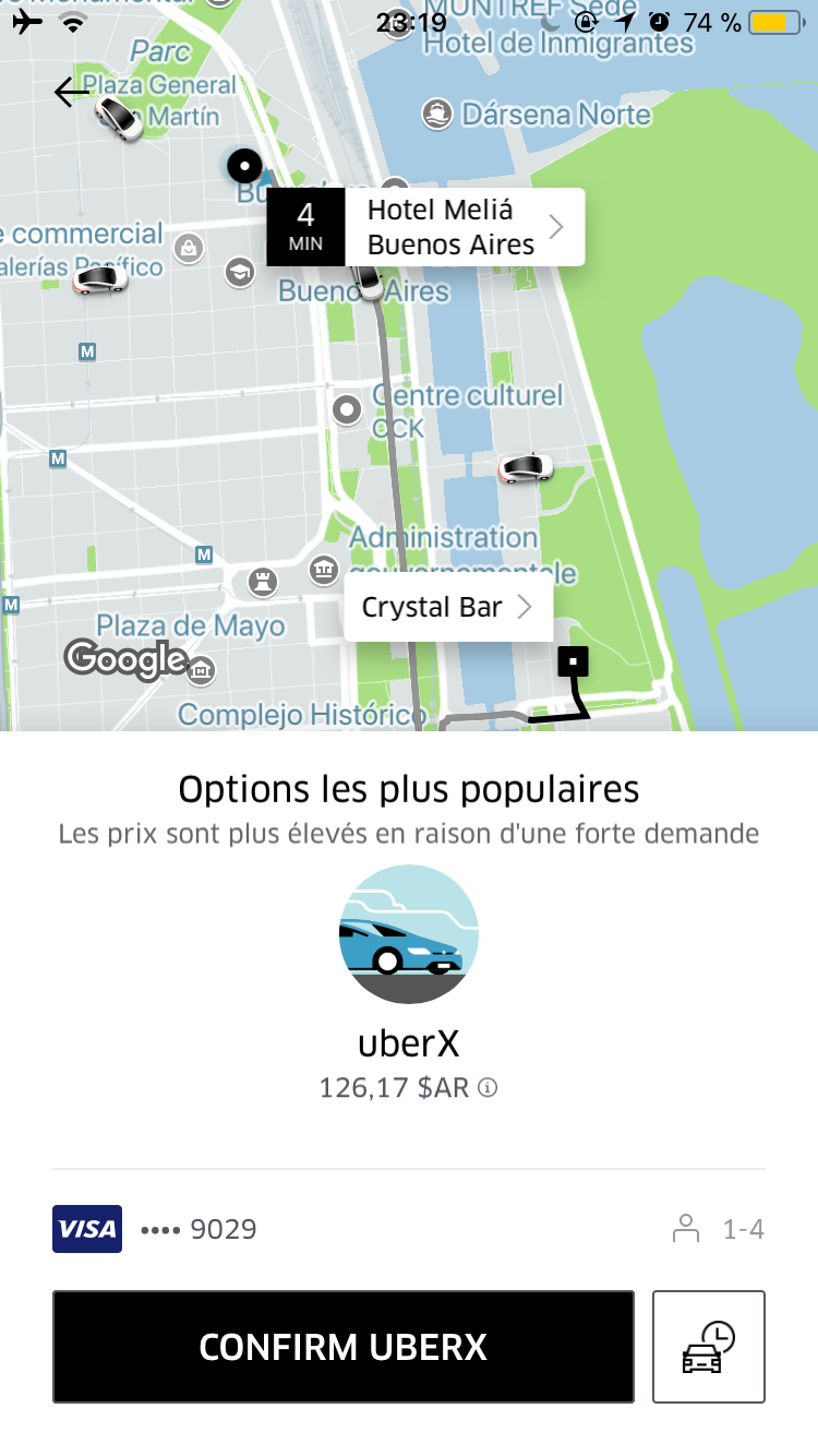 Petite parenthèse Uber avec le prix de courses depuis notre hôtel à Retiro :