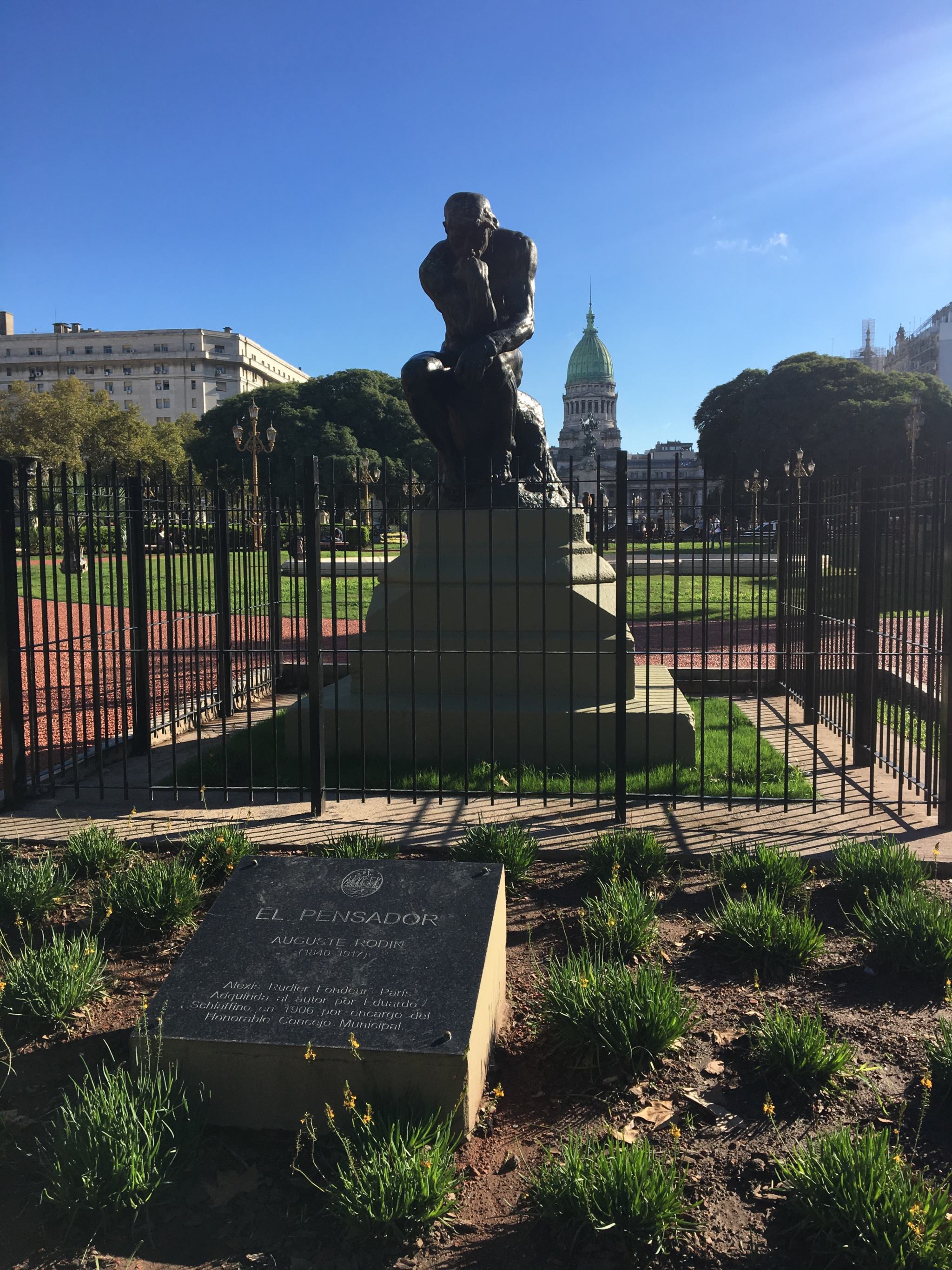 Plus loin, dans les jardins de la place, l’une des sculptures les plus précieuses de la ville qui parlera à tout le monde, Le Penseur Auguste Rodin, datant de 1914.