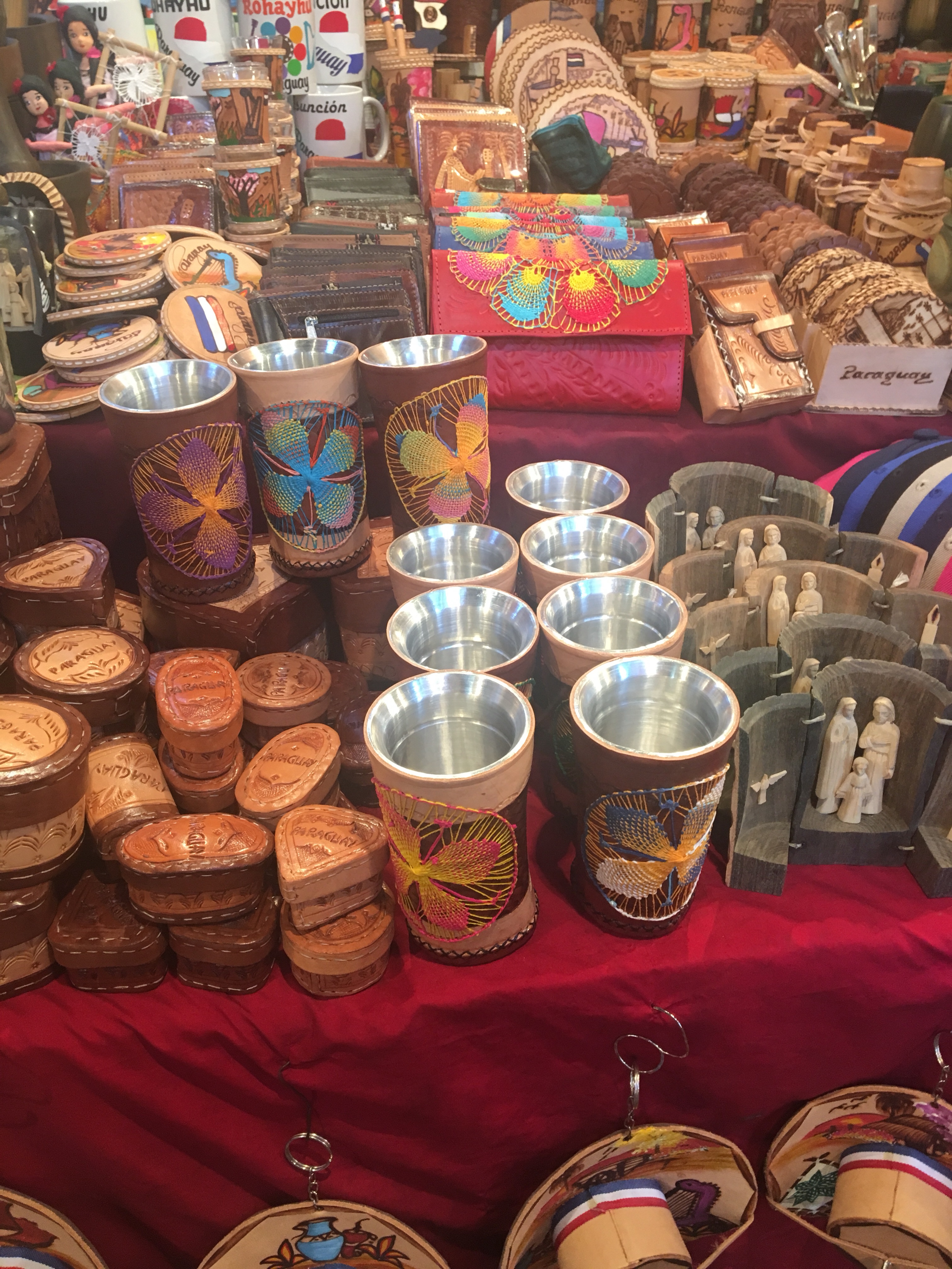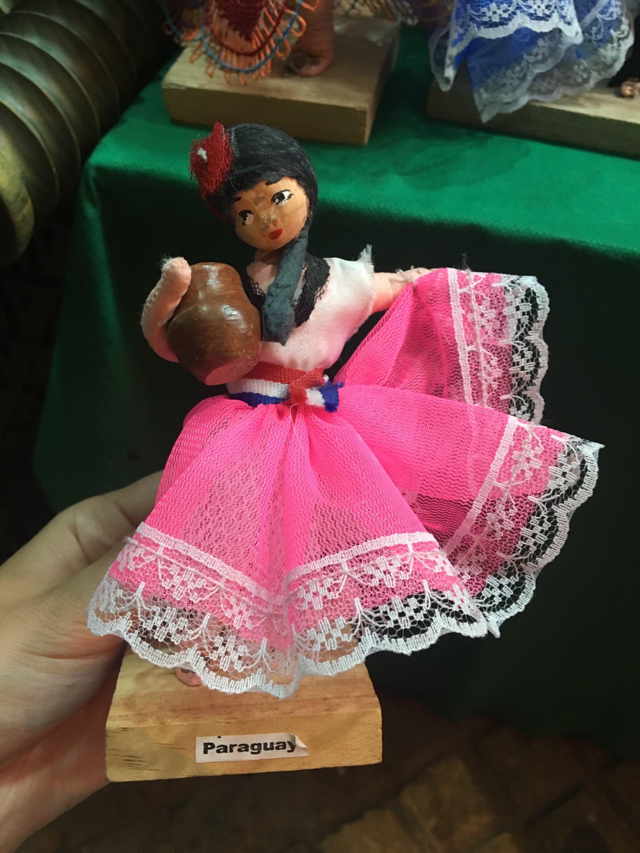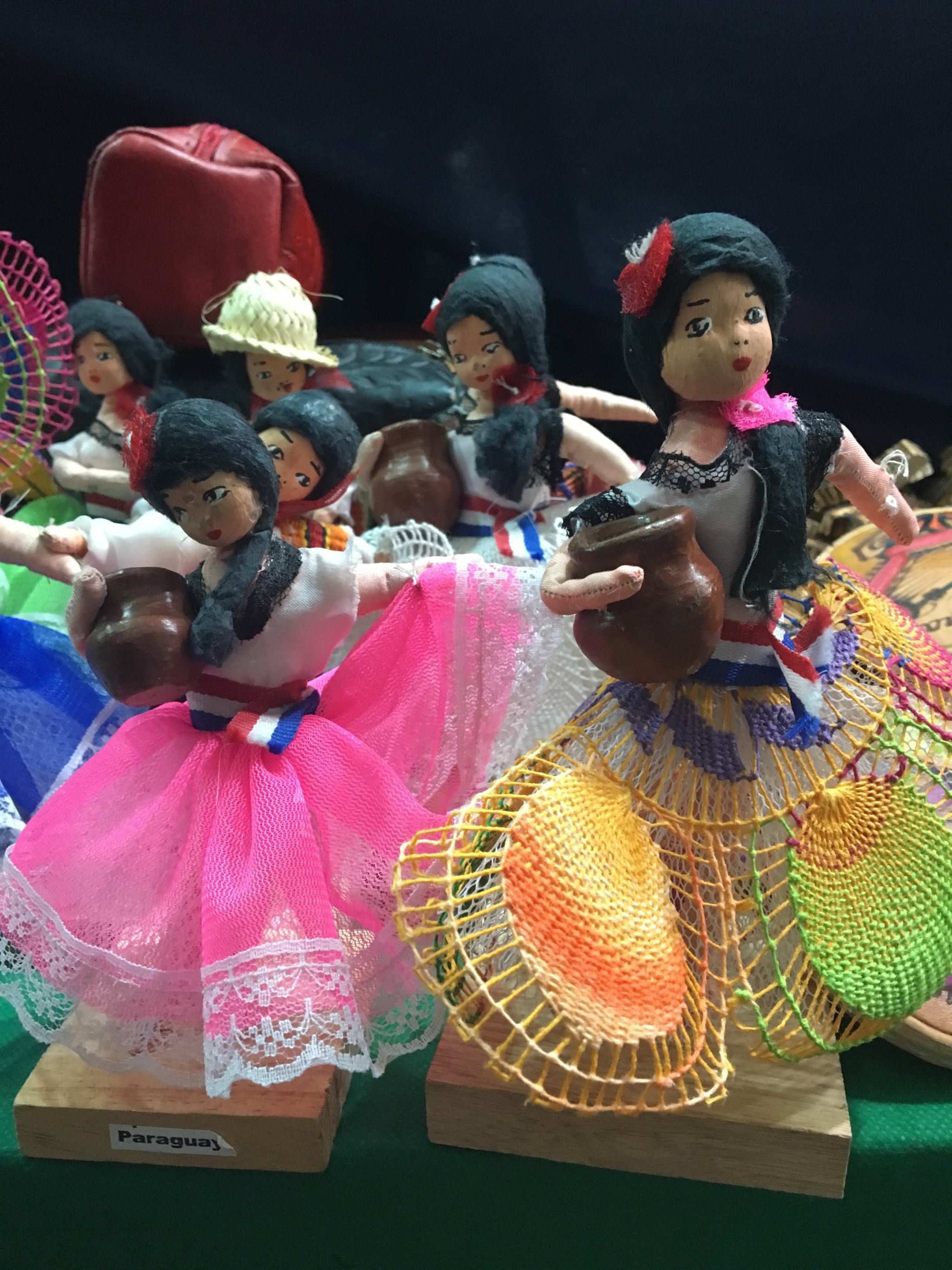 Dans la balade, nous passons encore par un petit marché local, le dernier plaisir de voir ces tasses avec l’inscription « Rohayhu » (qui signifie « Je t’aime » en guarani) ou les petites poupées symbolisant les danseurs et danseuses en tenue locale et robe Ñandutí.
