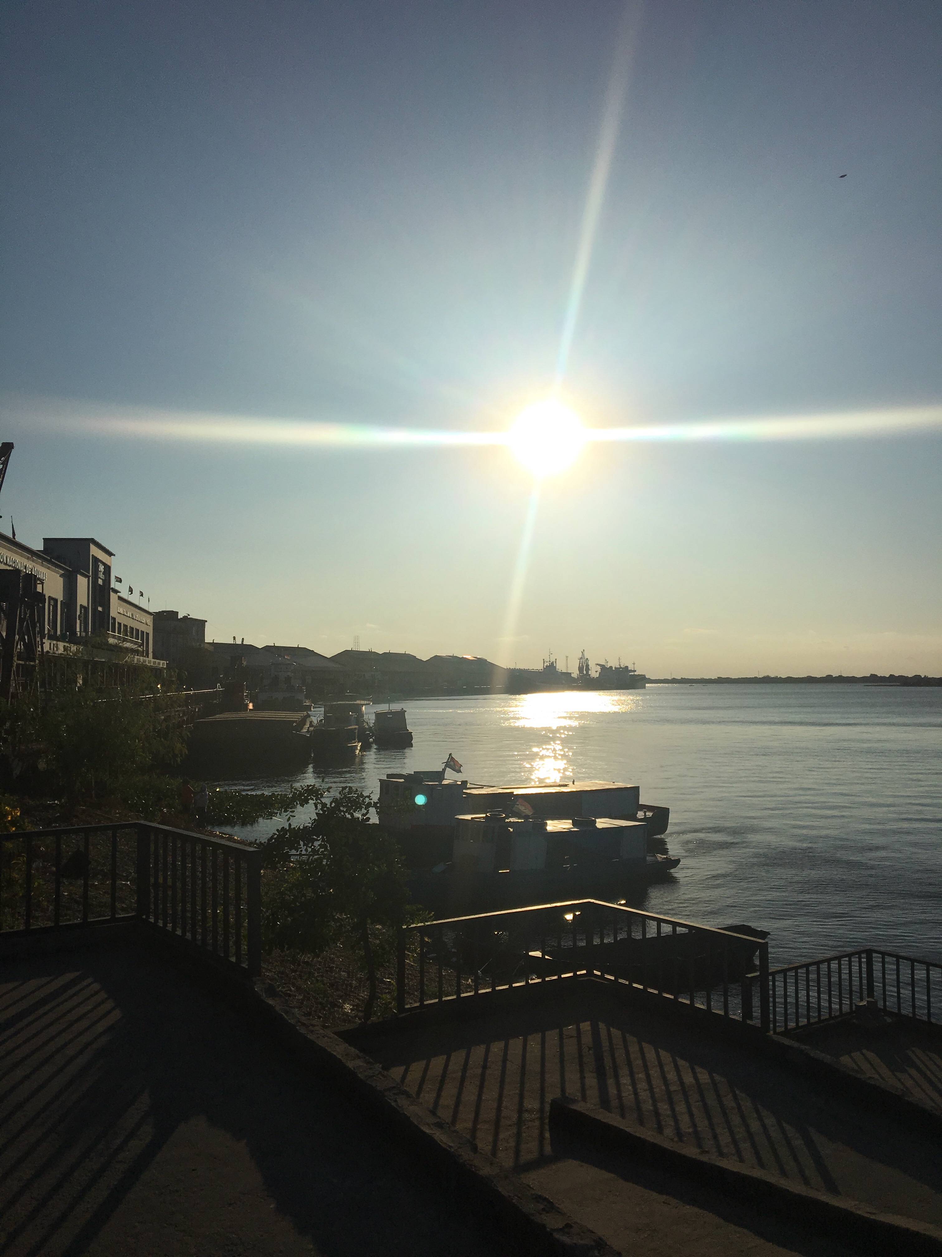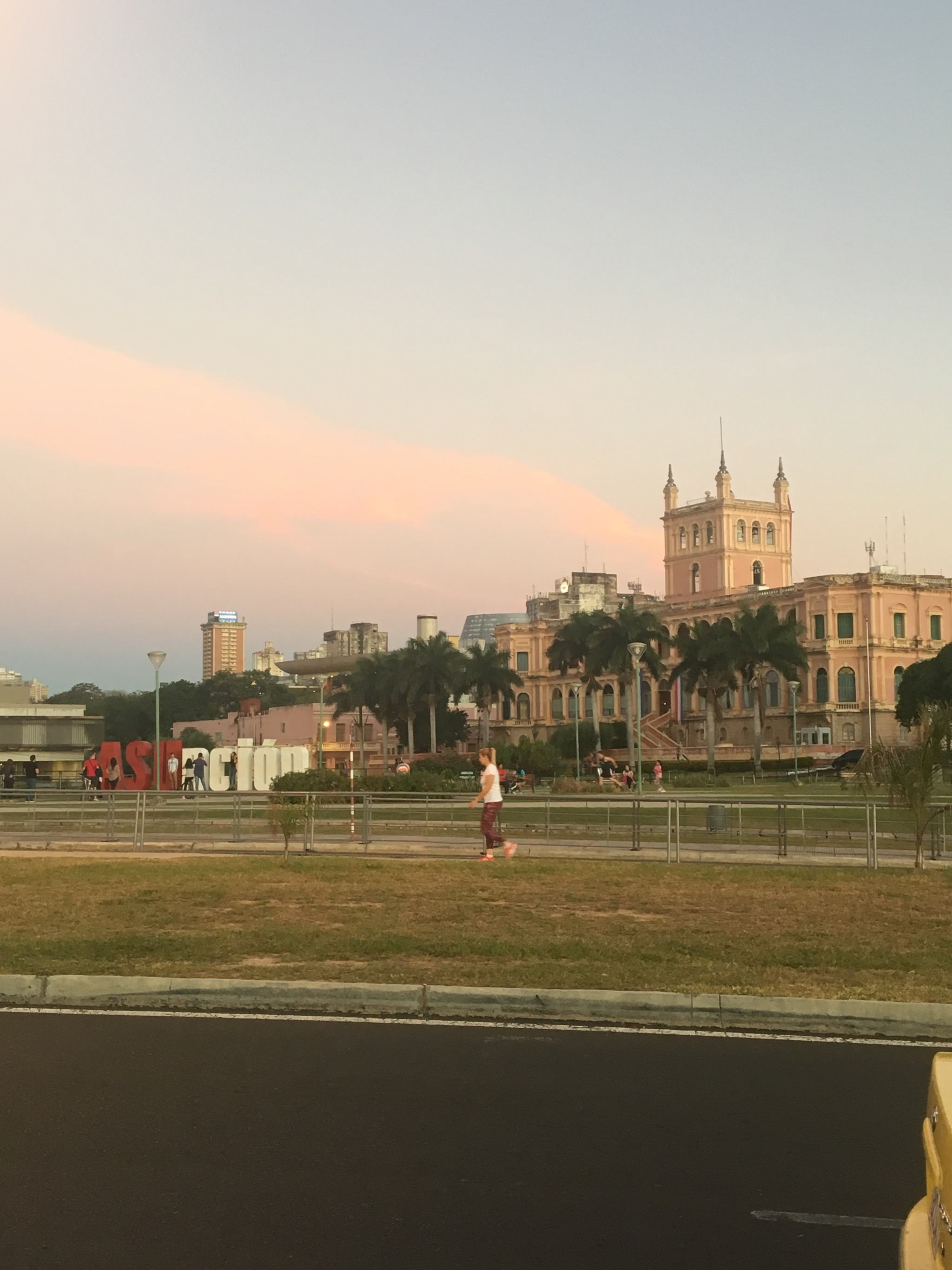 16h30 : En place pour le coucher de soleil face au Río Paraguay sur la Costanera d’un côté, et à la skyline d’Asunción avec son sublime Palacio López, de l’autre.