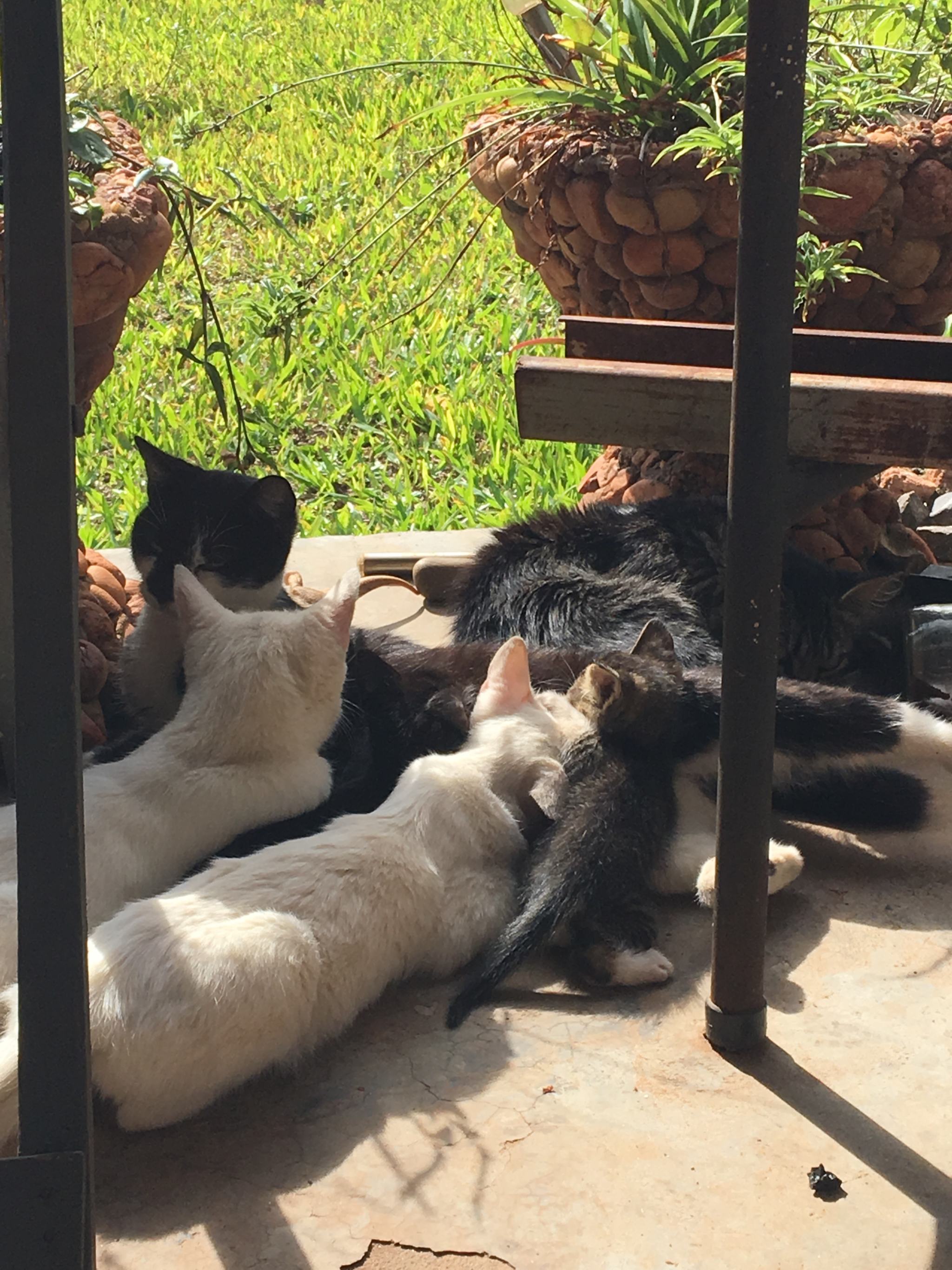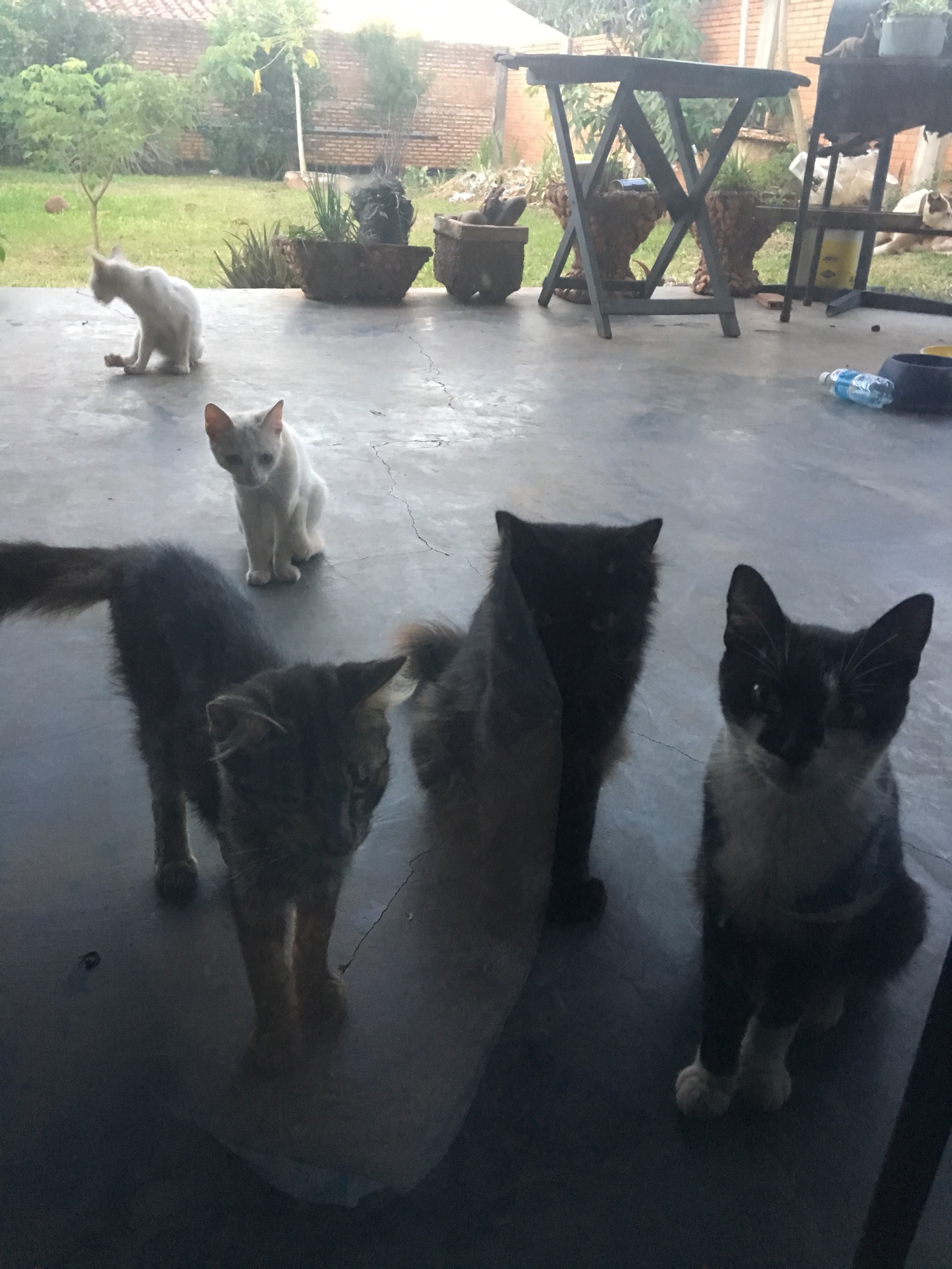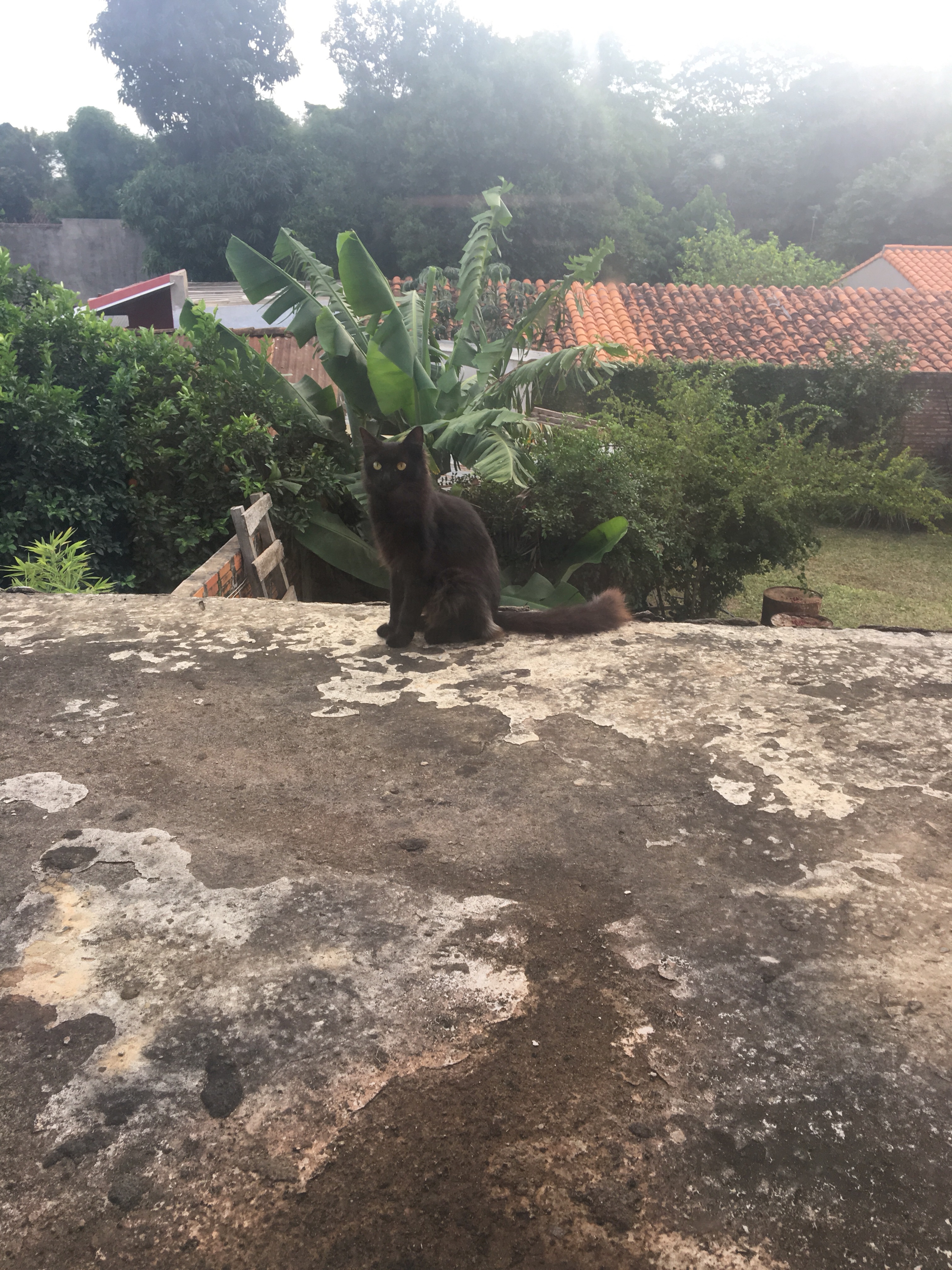 9h : Retrouvailles avec Martin puis rencontre avec sa mère Maria et son frère Arturo, tellement adorables ! Un pur bonheur d’être ici ! Avant d’y aller, on tire nos premiers guaranis à l’automate de l’aéroport. Une fois quelqu’un m’a dit « ici avec 100€ tu es millionaire! », conseil avisé et conseil suivi. On découvre effectivement après que la vie n’est pas chère, comparée à l’Europe. Puis direction notre maison chez l’habitant local :p avec un premier tereré, la boisson vénérée des paraguayens, et les chats de la famille qui se demandent qui sont les nouvelles arrivantes ! J’aime déjà trop cette petite tribu d’animaux!