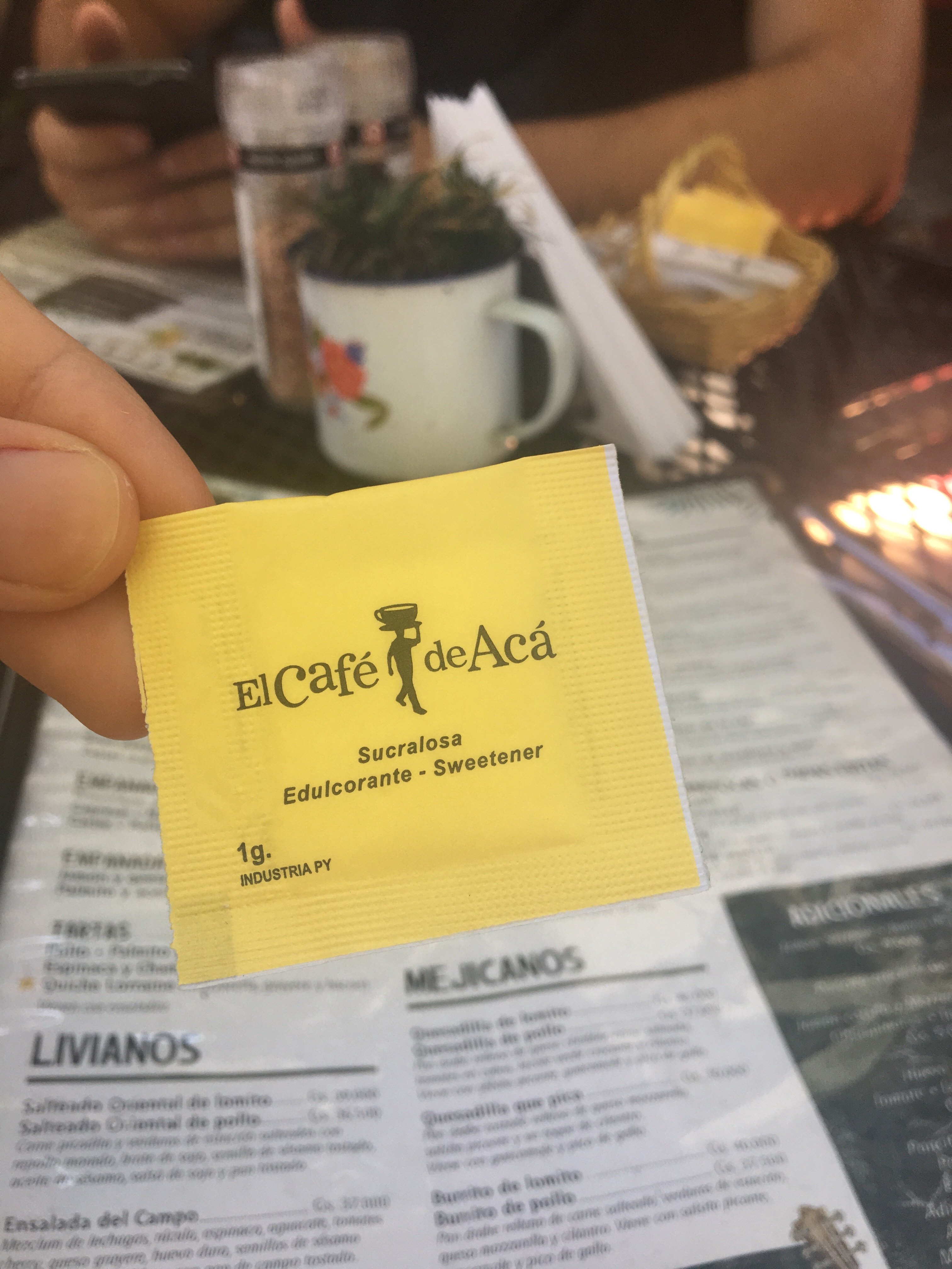 Justement quand cette heure arrive enfin dans ce nouveau lieu, nous nous posons au Juan Valdez Café, avec une portion généreuse de tarte au dulce de leche, une spécialité locale et c’est aussi le moment de faire un apprentissage de mots en guarani. Ici la stevia, d’origine du Paraguay, est un sucre quinze fois plus puissant qu’un traditionnel, se prononce ka’a hee !