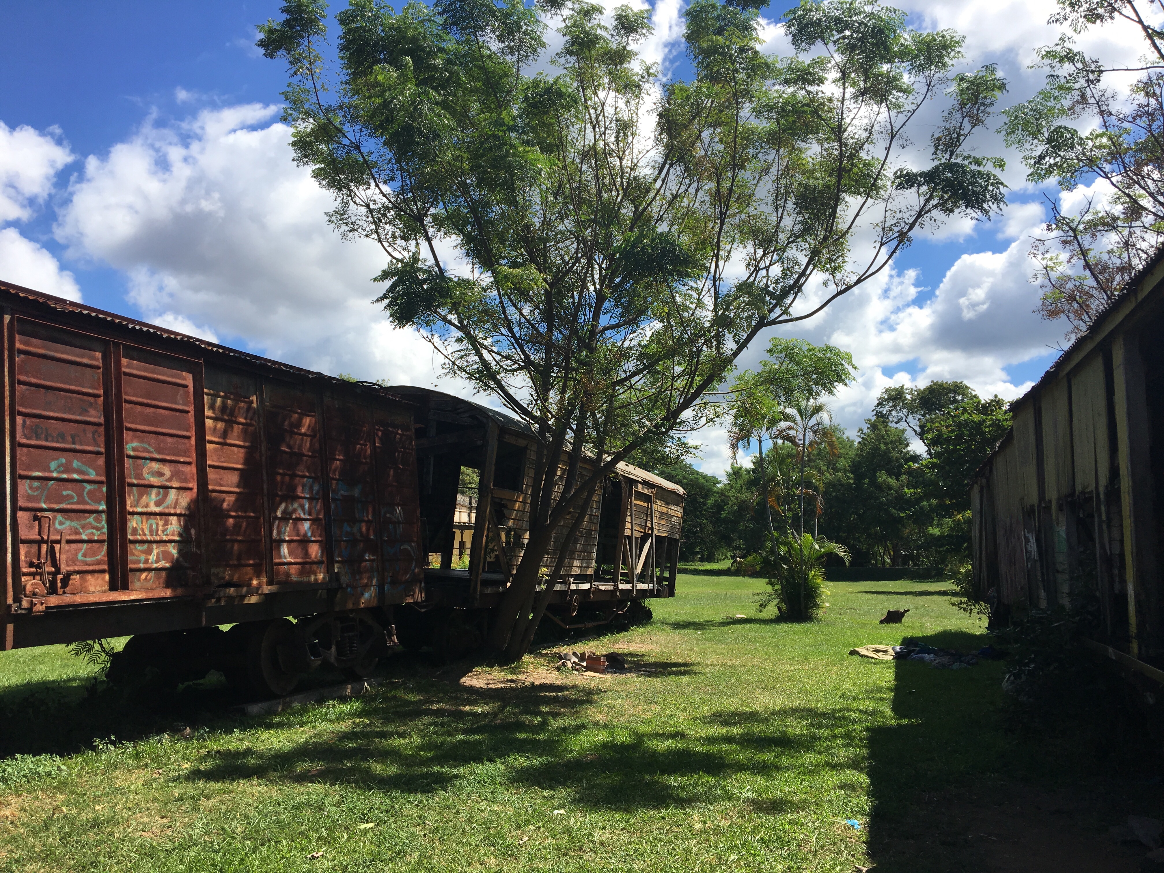 Nous nous stoppons sur le chemin à une ancienne gare ferroviaire, station de train abandonnée, qui nous intrigue puis décidons d’aller sur le site quelques instants.