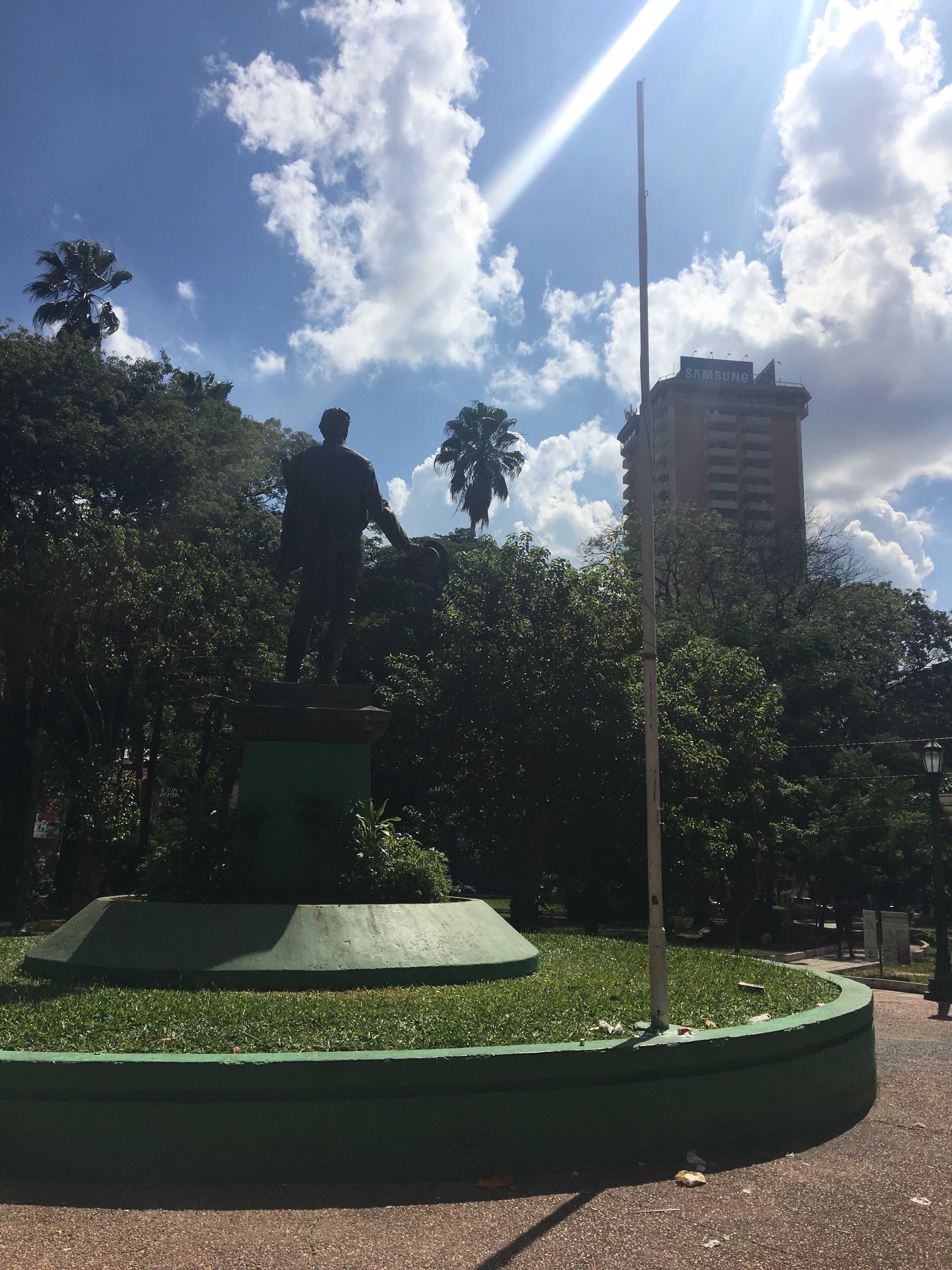 Après l’avoir vu de nuit, nous allons le découvrir de jour, ce centre-ville de Asunción. Nous prenons un bus depuis la maison de Martin qui nous dépose à la Plaza Uruguaya et de là nous nous enfonçons petit à petit dans les rues.