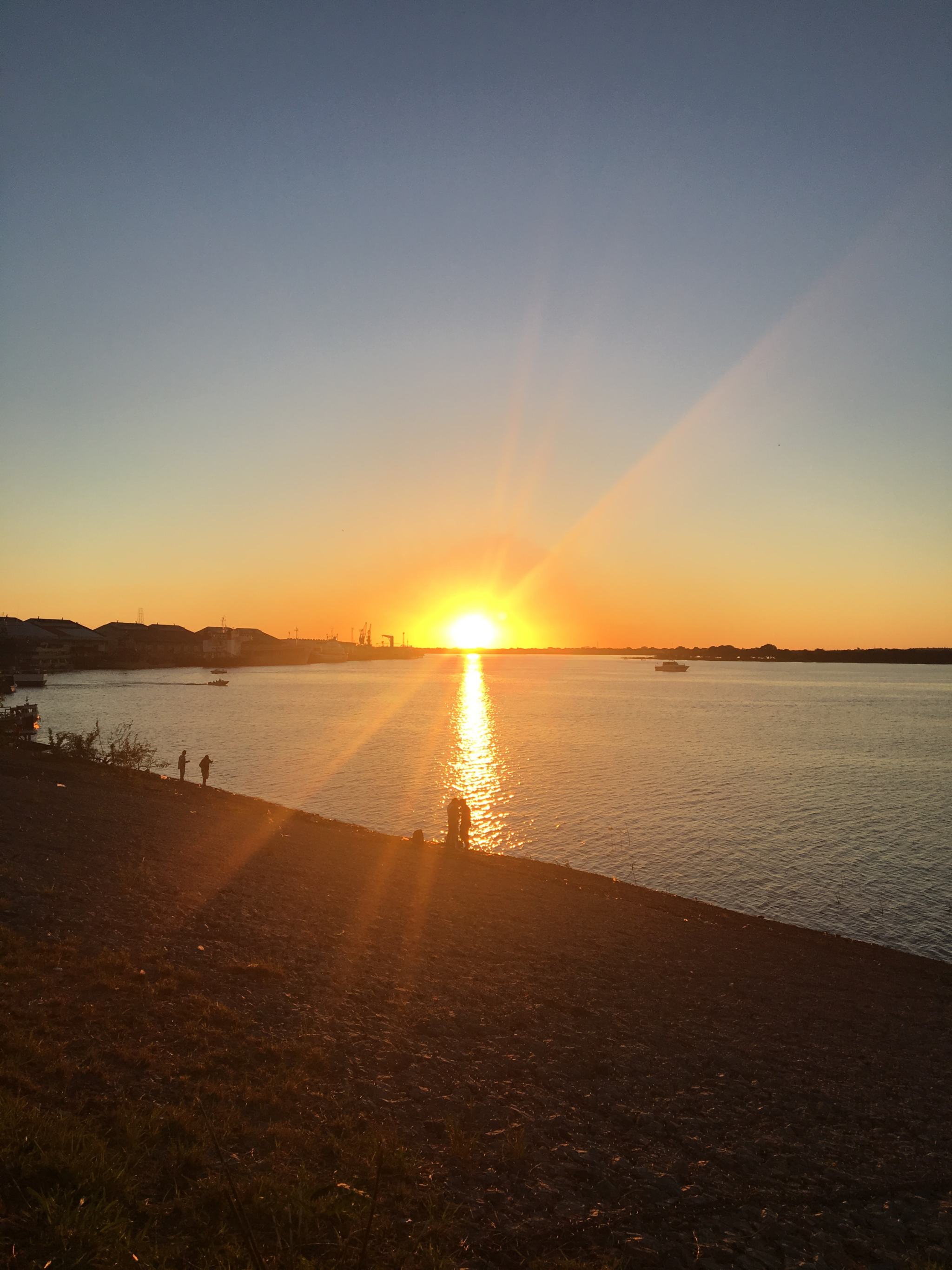 Nous voici en haut de la terrasse avec une perte de vue sur le Río Paraguay d’un côté et les buildings de la ville de l’autre puis encore un autre avec le soleil de braise derrière un arbre, une image qu’on croirait prise en Afrique !