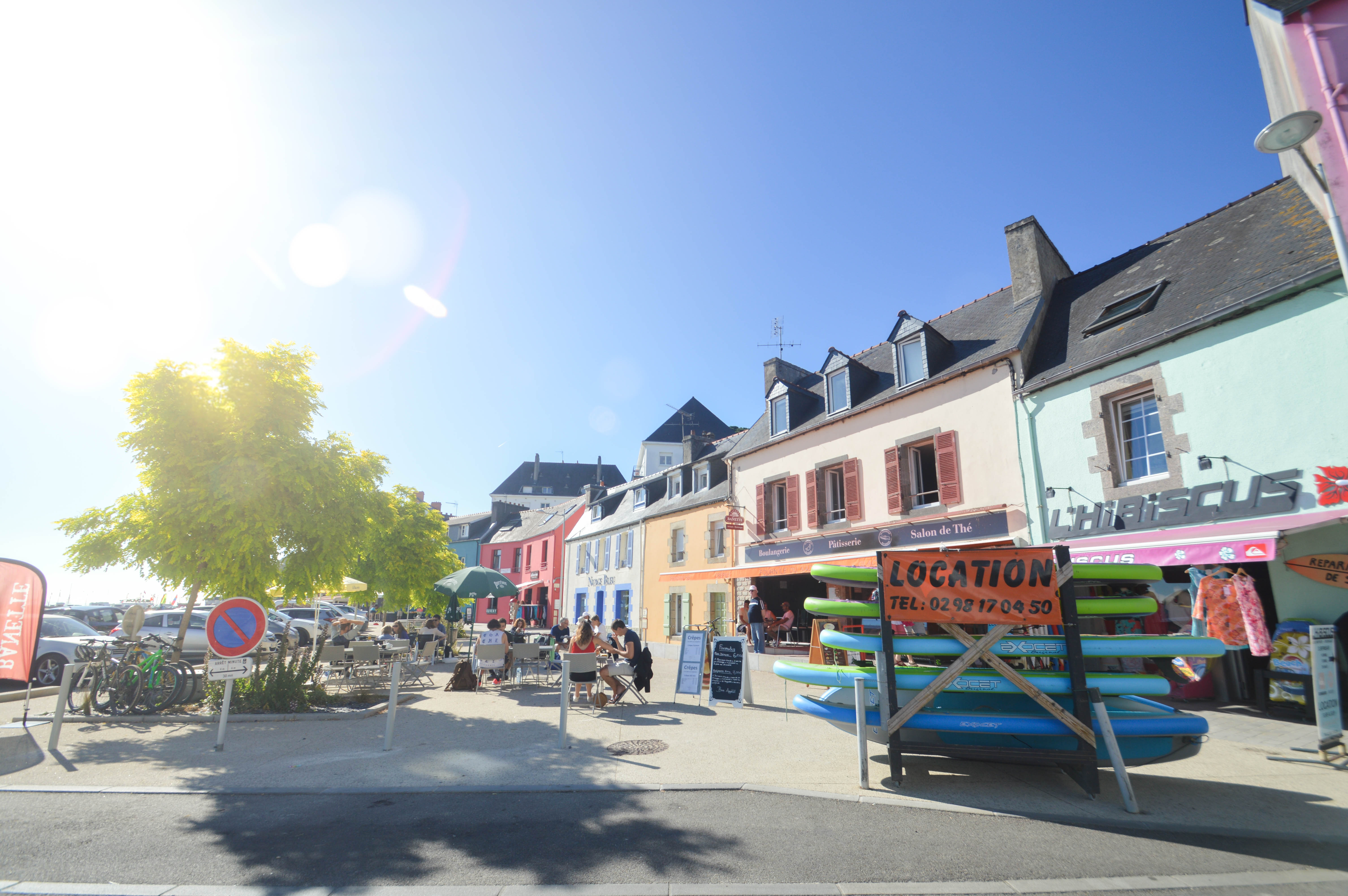 Réveil à 8h, ça va ramer autant que rimer aujourd’hui, car c’est une journée sportive en perspective ! Comme prévu la veille, nous retournons sur la Plage de l’Île Vierge tôt le matin pour profiter de la belle lumière et aussi éviter la foule de fin de matinée début d’après-midi. Sur le chemin, petit passage par la colorée ville de Morgat. Après un bon bol d’air iodé, nous reprenons le chemin. L’arrivée sur l’île se fait sous un soleil de plomb qui pétille sur l’eau transparente tel un archipel paradisiaque comme espéré ! Dans notre programme marathon où nous devons enchaîner, nous n’avons que le temps de prendre des clichés de ce spectacle dont on aurait bien voulu plus profiter.