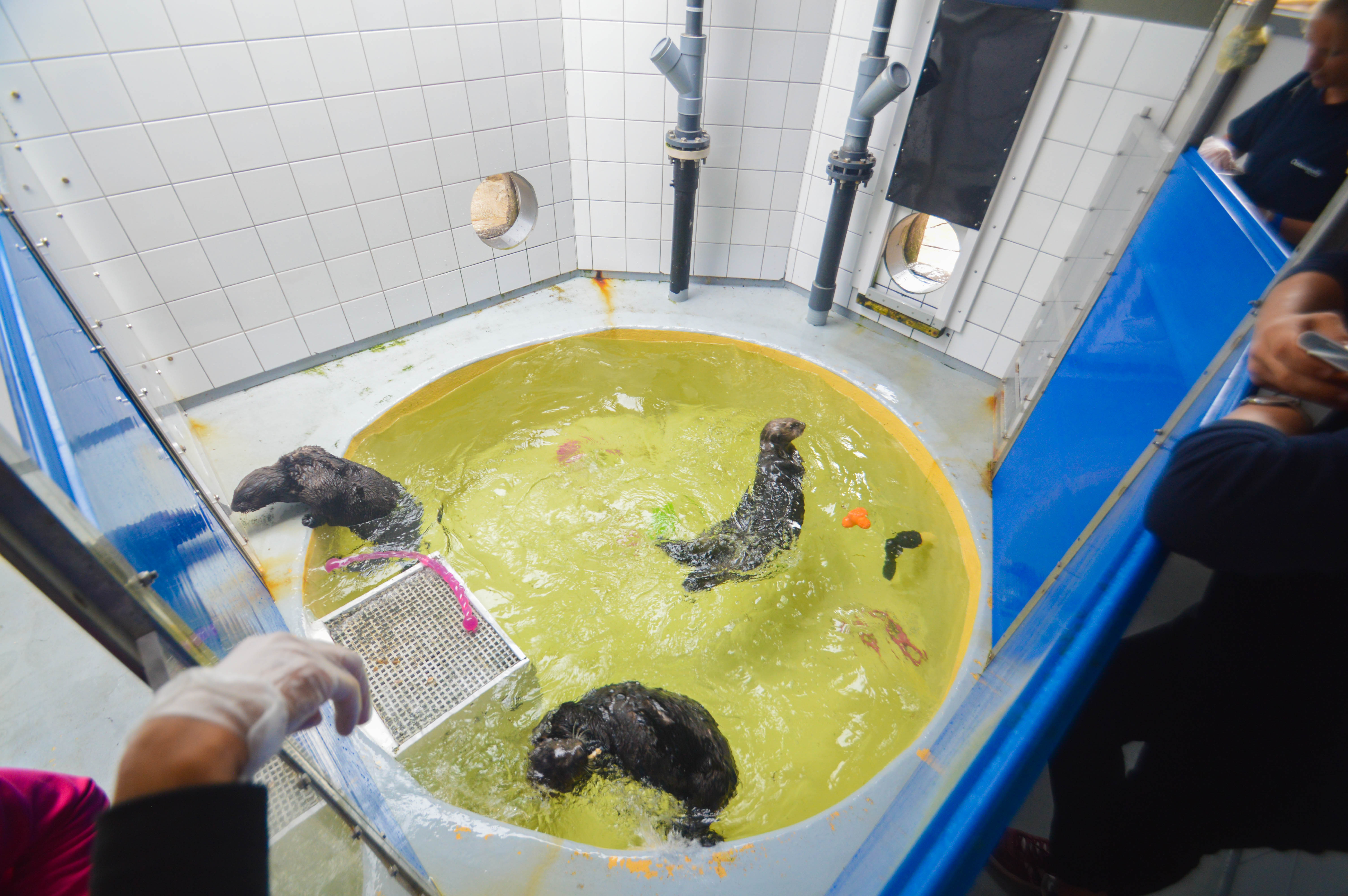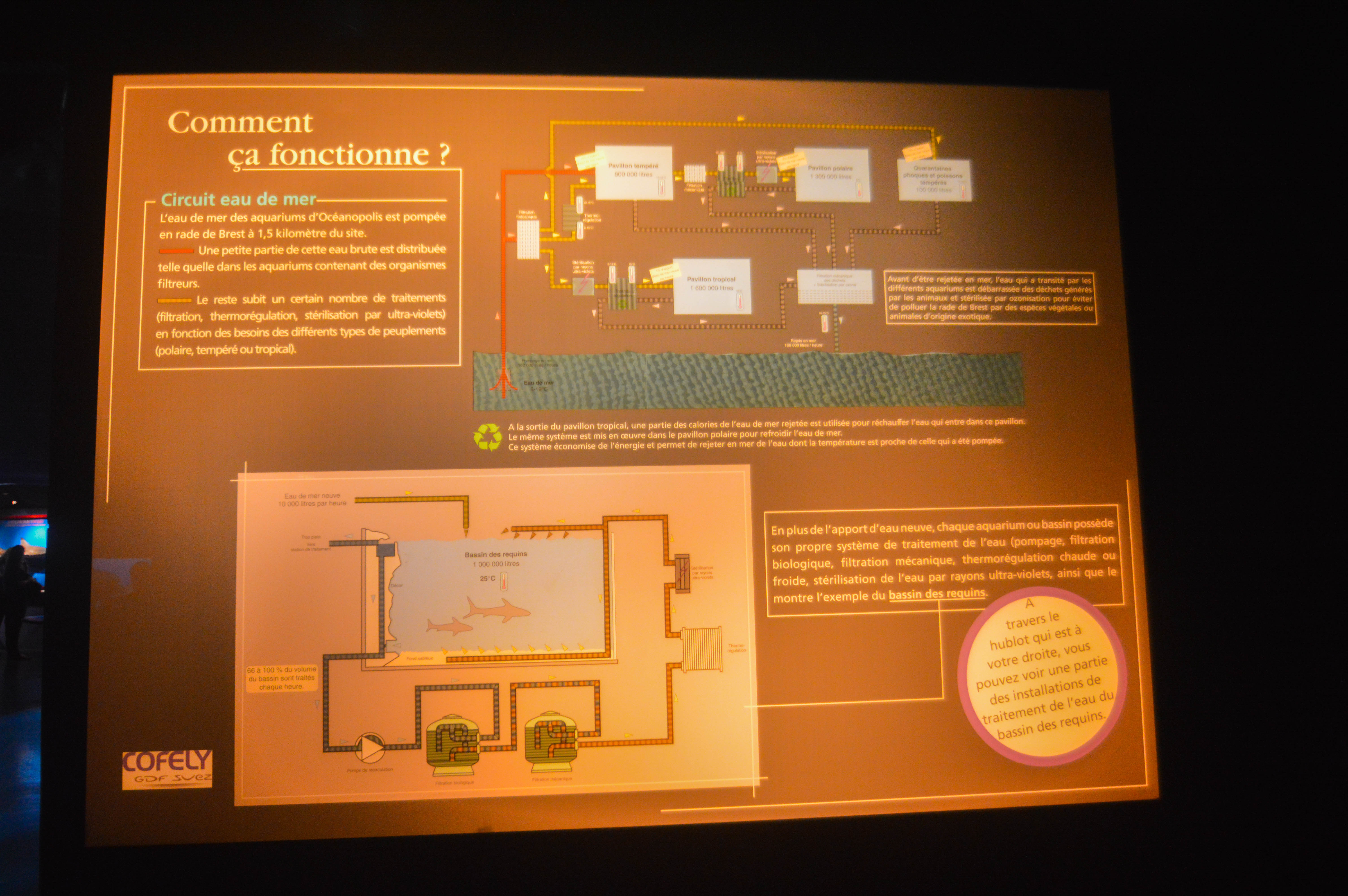 Rendez-vous maintenant juste à côté à l’Océanopolis. Abritant plus de 1000 espèces marines, cet espace est réparti sur 9000m2 et met ainsi en scène différents écosystèmes. Véritable voyage sous l’océan, il recrée chaque mer du globe au travers de 3 univers thématiques que sont le Polaire, le Tropical et la Bretagne. Le pavillon polaire est axé sur les distinctions entre l’Arctique et l’Antarctique. On peut facilement observer les phoques du grand Nord faire des plongeons gracieux dans leur énorme bassin, chercher Némo dans la multitude de poissons colorés, voir les manchots filer à toute vitesse, les requins et les raies nous saluer le long des parois de verre. Certains bassins reconstituent les univers réels, d’autres reprennent même les phénomènes de marées, ainsi les animaux ne sentent pas dépaysés de leur environnement naturel. Comme nous sommes en visite privée, nous accédons aux coulisses de l’Aquarium. Cette section backstage commence par le nourrissage des loutres qui viennent d’Alaska, ce sont les seules en Europe avec Copenhague et Lisbonne où on en trouve aussi. Elles ont été récupérées car abandonnées à la naissance ou trop faibles pour résister à l’environnement hostile des fonds marins. Sous les yeux de quelques spectateurs, nous assistons sur le territoire des phoques à leur déjeuner et à leur massage quotidien pour vérifier si tout va bien. Ensuite, nous empruntons une porte qui mène au dessus de différents aquariums et voyons les animaux sous un autre angle que celui des visiteurs. Il faut savoir que l’Océanopolis abrite aussi une équipe de chercheurs ! Nous voyons également le processus analysé des algues en laboratoire, la salle gigantesque des réservoirs d’eau etc une visite bien riche en découverte. Moi qui n’étais à l’époque pas très à l’aise avec la mer, je me suis réconciliée avec elle !