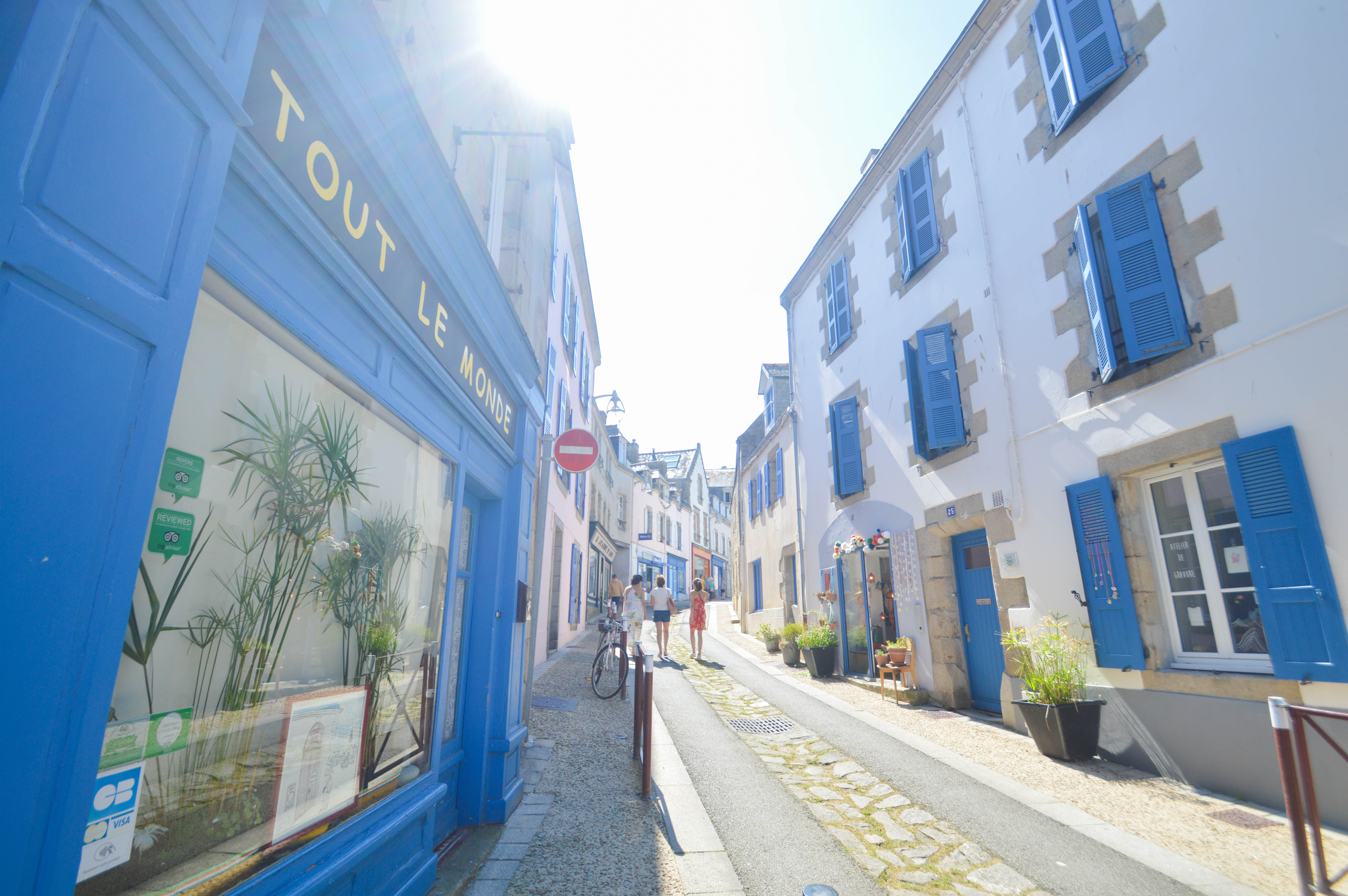 13h, c’est l’arrivée à Douarnenez que je connais bien pour y avoir séjourné l’an dernier. Un plaisir d’être de retour et de redécouvrir la ville, même si ce n’est que pour une journée ! Une halte pour déjeuner un délicieux burger végétarien en forme de macaron rose au restaurant Quai 29 sur le Quai du Petit Port, et on repart pour arpenter les rues avec l’Office de Tourisme de Douarnenez. Je reviens sur des points de vue de la rue Anatole France que j’avais photographié l’an dernier et l’impression est toute drôle de re-traverser le décor de ses propres photos!