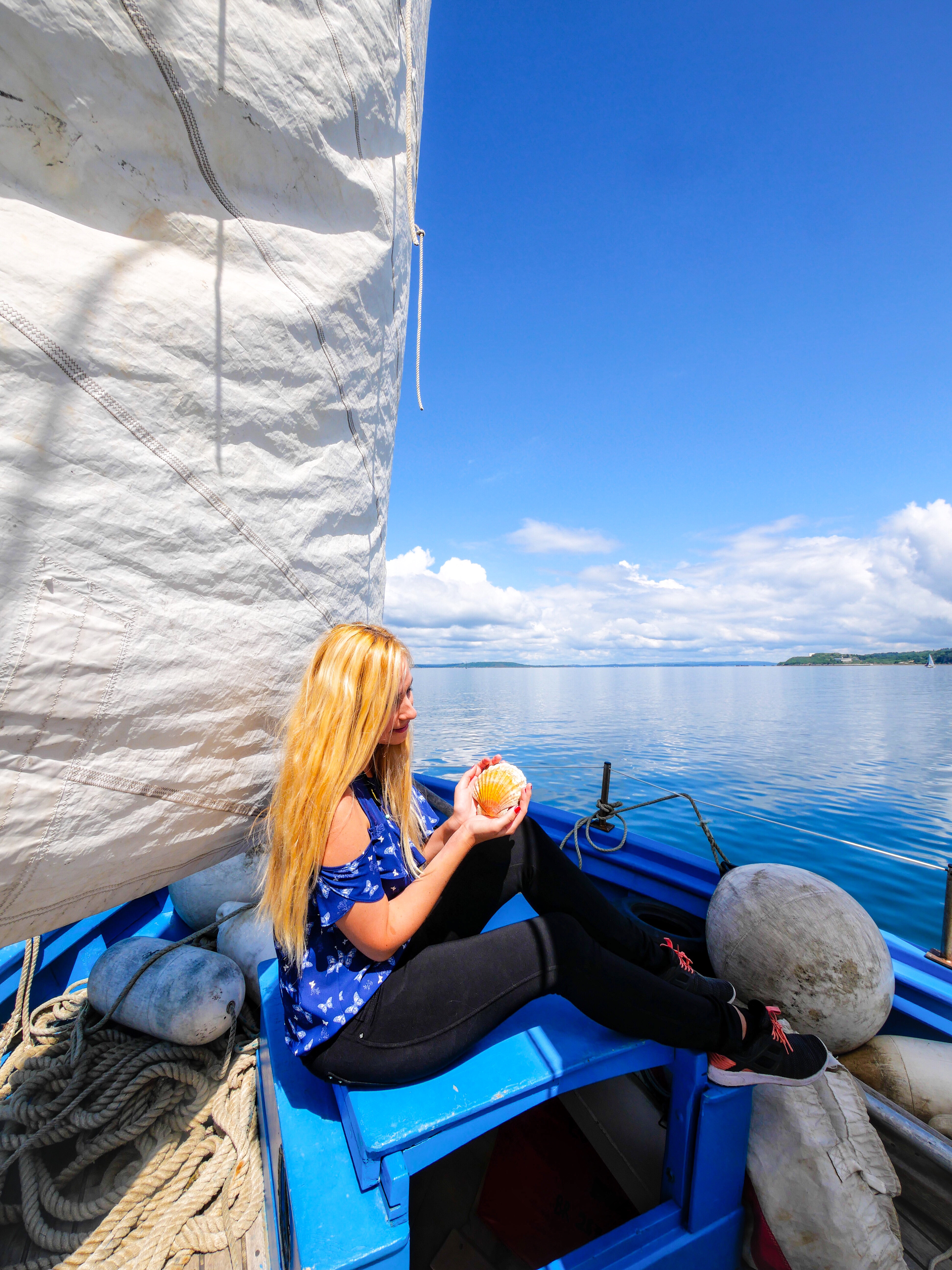Sur place, nous embarquons à bord du Loch Monna (en breton, « loch » signifie lieu de prière d’un saint) dirigé par le passionné Capitaine Yann Roger qui nous apprend que nous allons naviguer sur 12 tonnes et qu’une voile peut coûter jusqu’à 20,000€. Au loin, on aperçoit toute la côte et la base des sous-marins nucléaires. Et c’est ainsi que notre coeur a chaviré lors de ce tour de 3 heures sur une mer d’huile à respirer un air pur et ressourçant à l’autre bout du monde…Réelle impression ! Véritable terre de marins et d’explorateurs, le Finistère abrite le long de ses 1000km de côtes, les héritages maritimes qui façonnent les littoraux, entre autres les phares, les maisons de pêcheurs, conserveries…