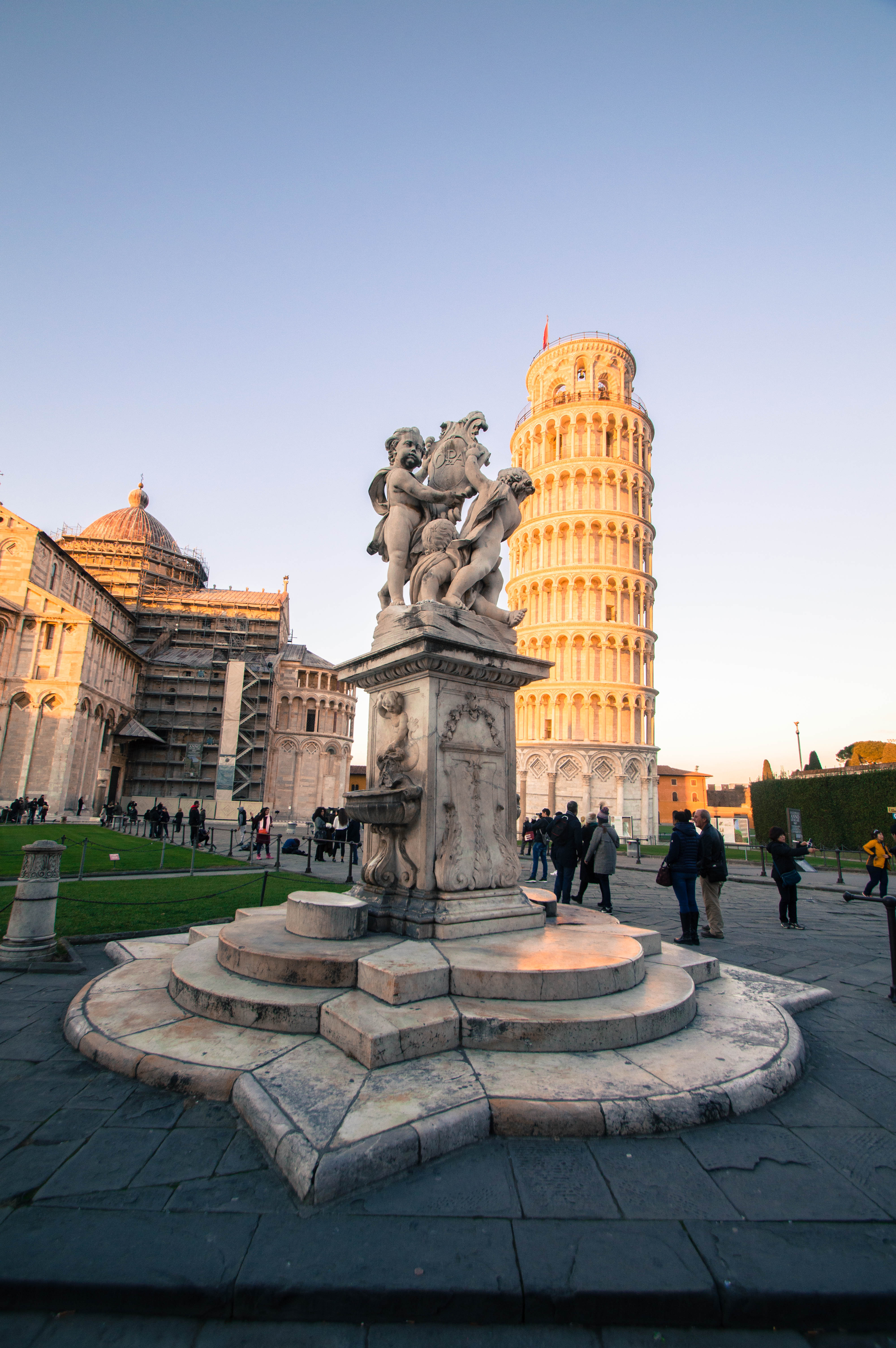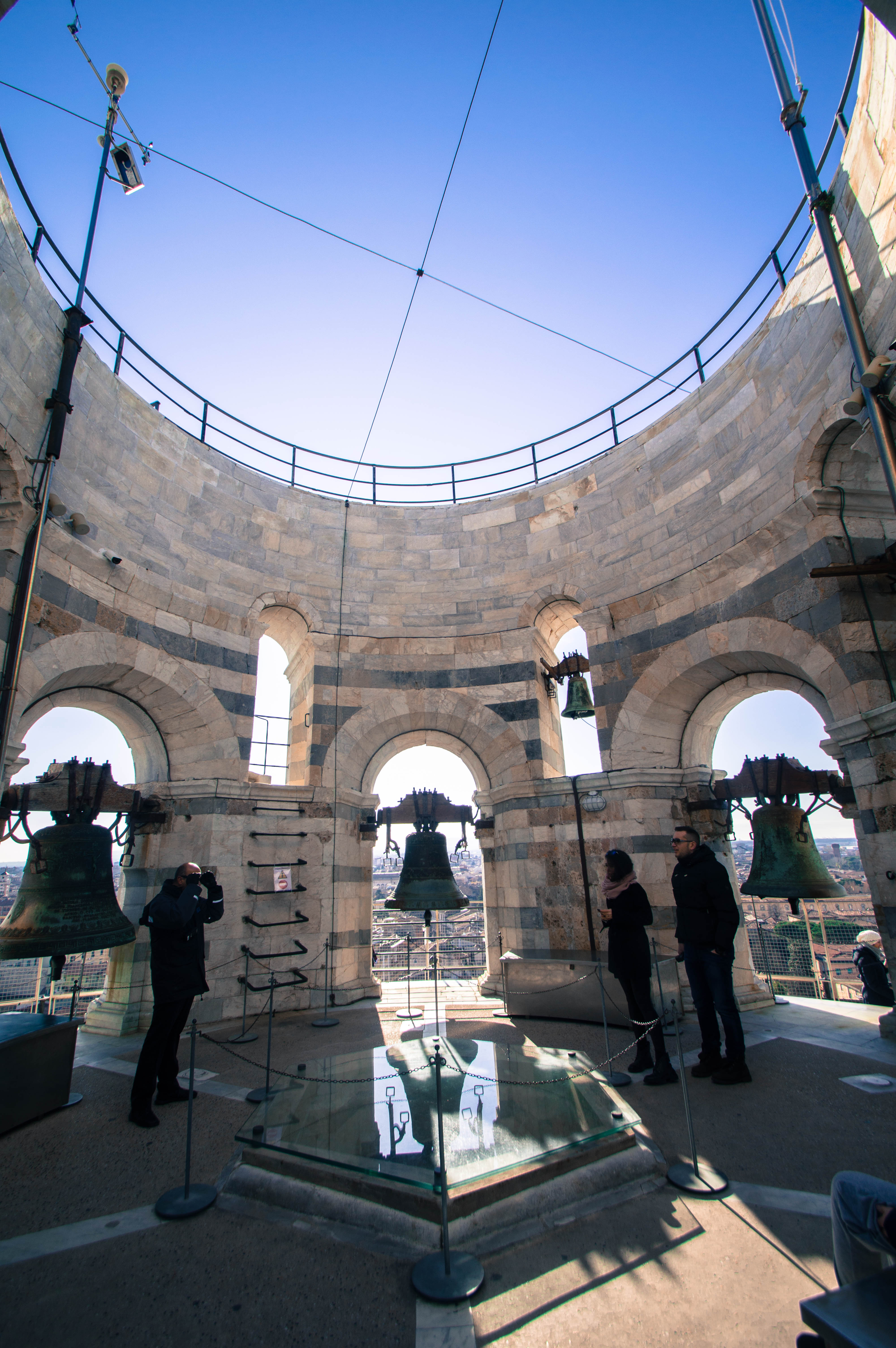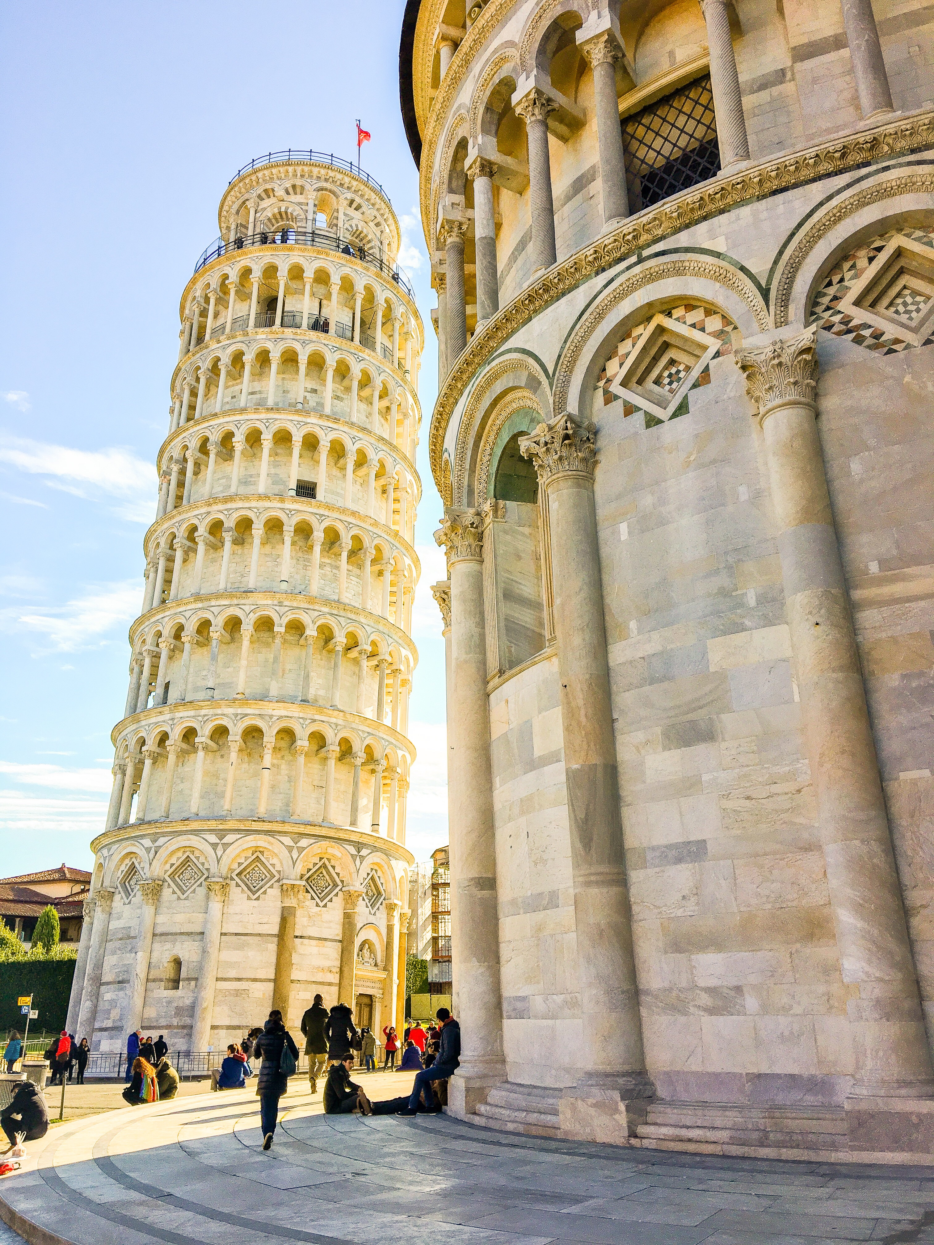 Après quelques photos comme de traditionnels touristes, nous achetons les tickets et montons au sommet de la Tour, un moment fun où nous ressentons vraiment l’aspect penché. Nous restons deux bonnes heures pour faire le tour et s’asseoir un long moment sur les marches clocher pour observer la vue et se réchauffer avec le soleil.
