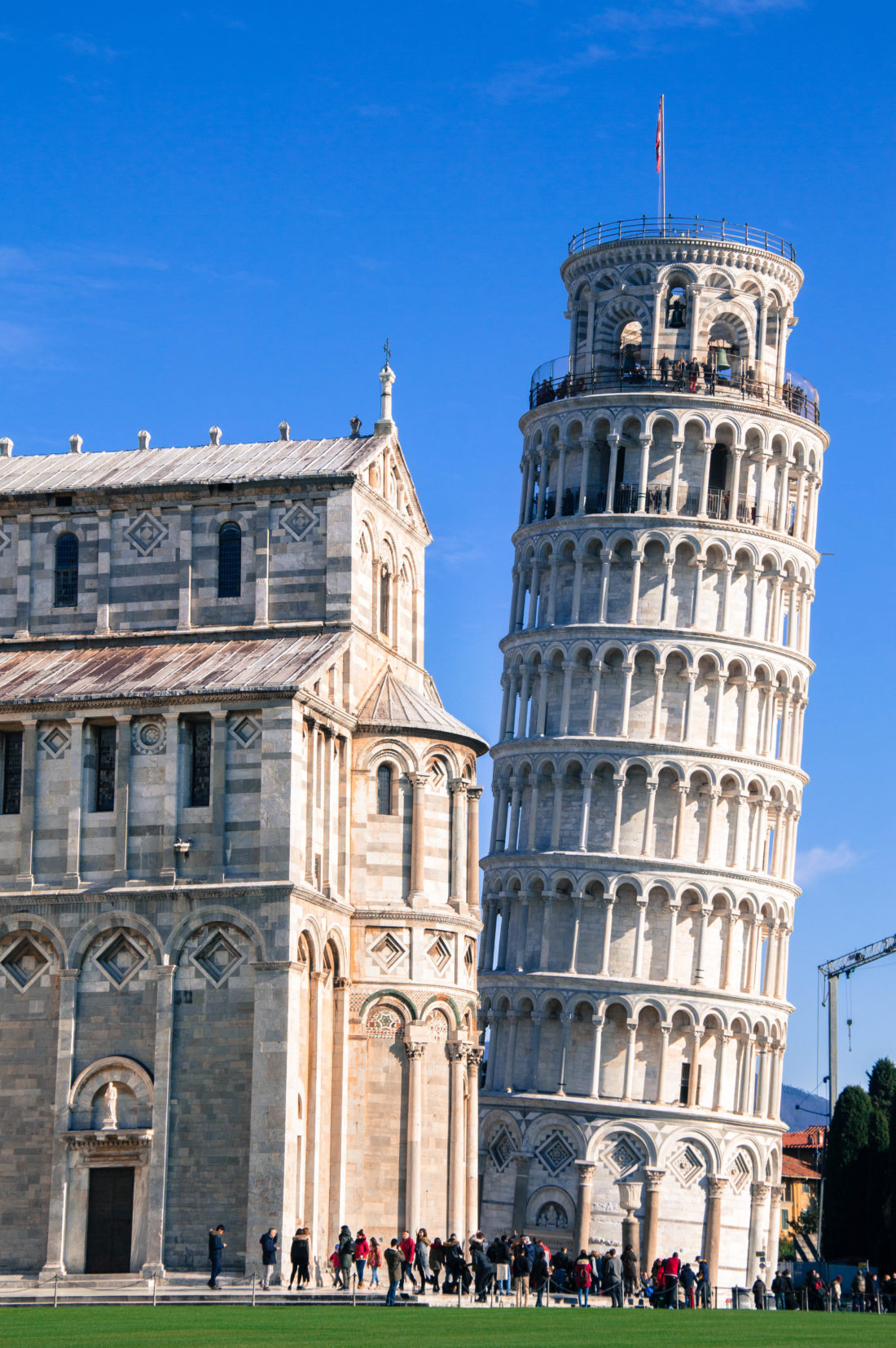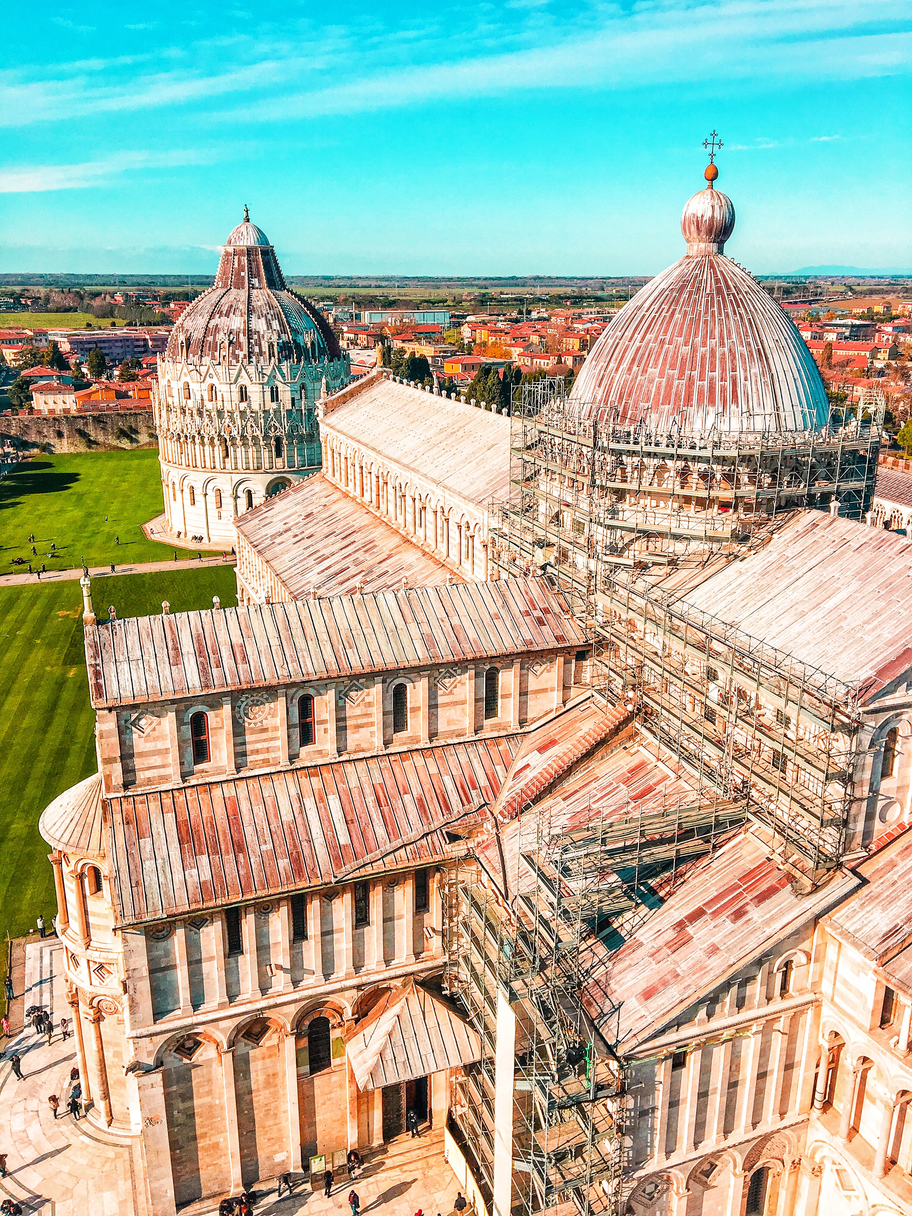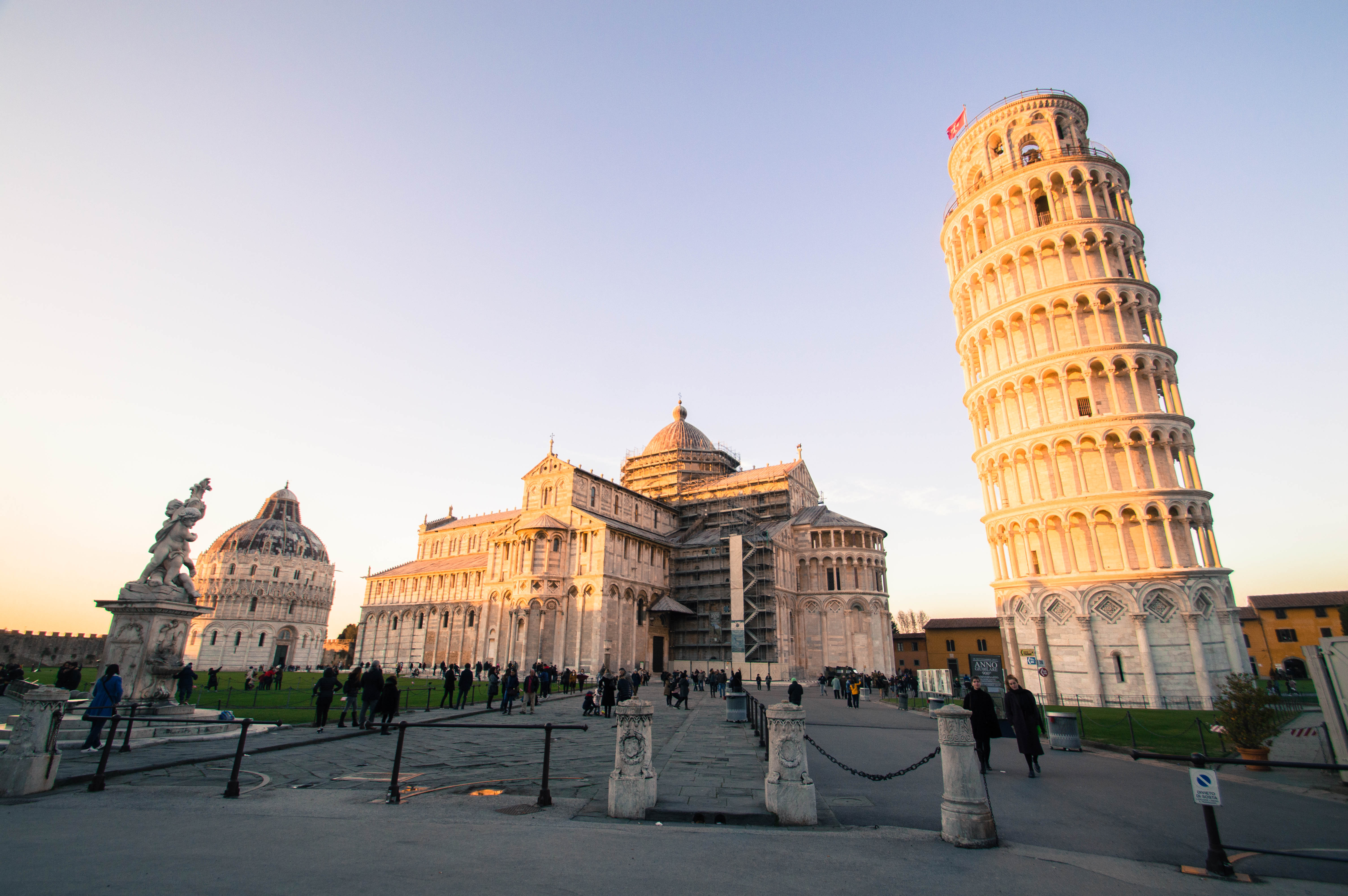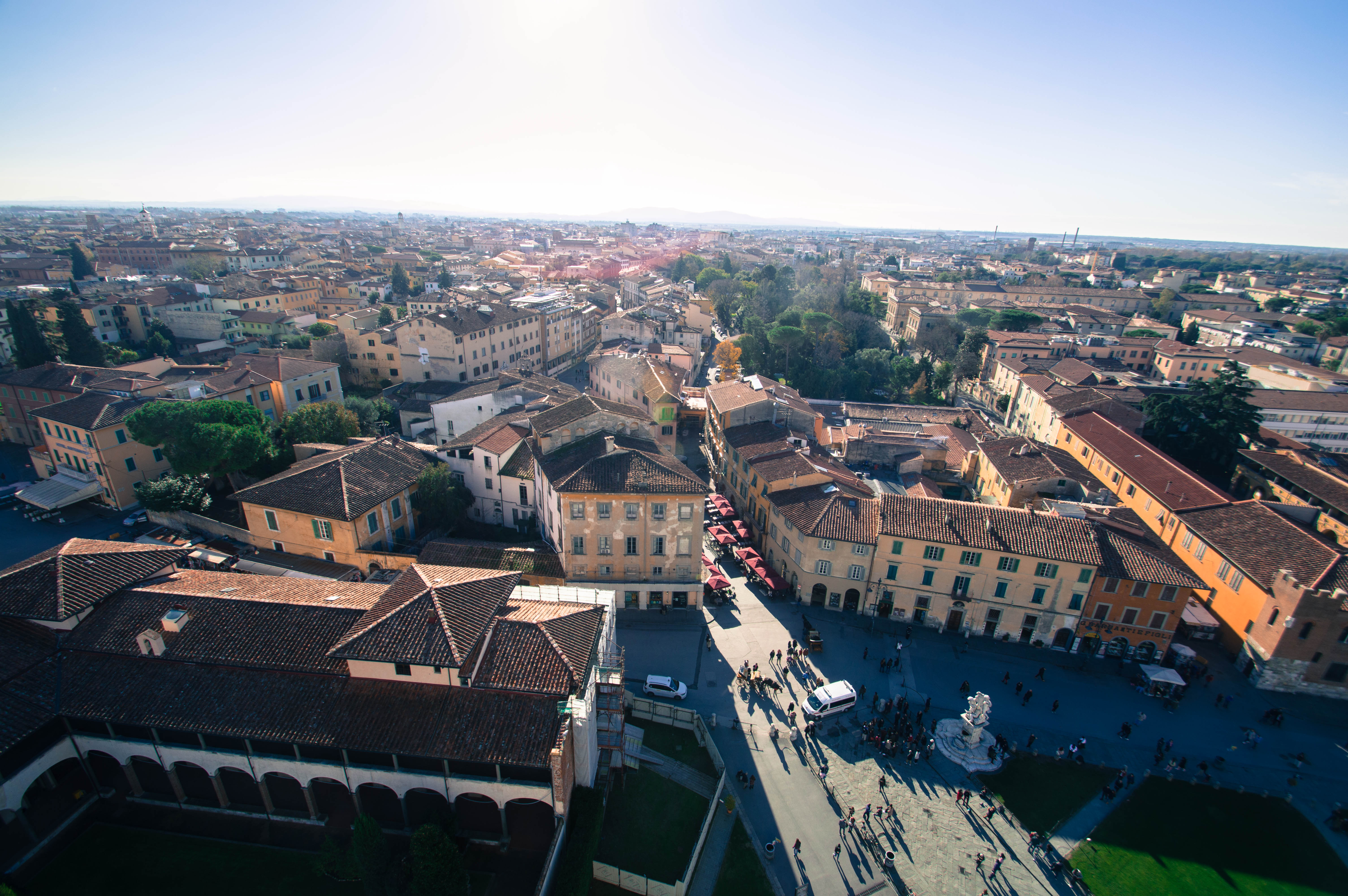 Après quelques photos comme de traditionnels touristes, nous achetons les tickets et montons au sommet de la Tour, un moment fun où nous ressentons vraiment l’aspect penché. Nous restons deux bonnes heures pour faire le tour et s’asseoir un long moment sur les marches clocher pour observer la vue et se réchauffer avec le soleil.