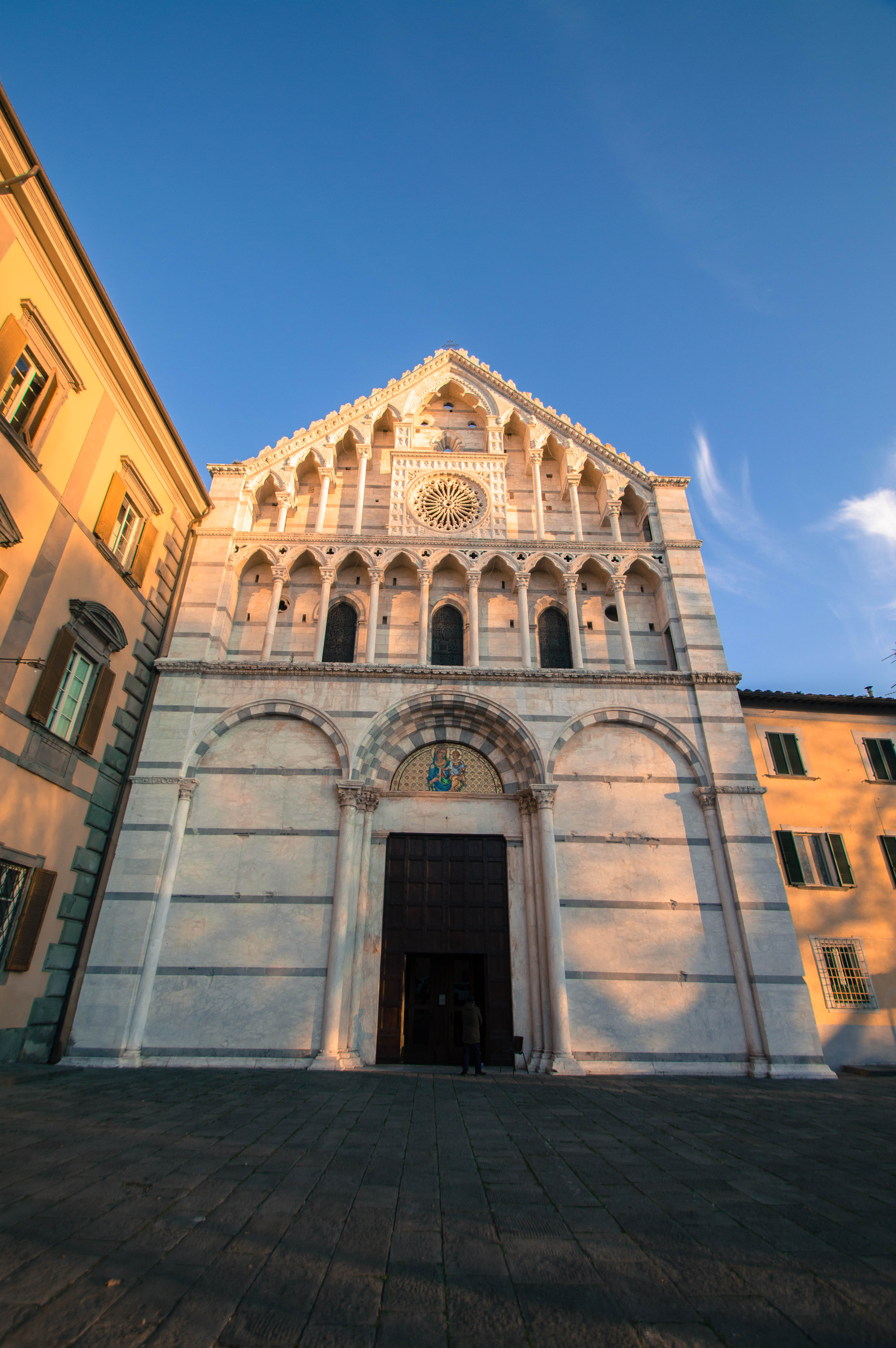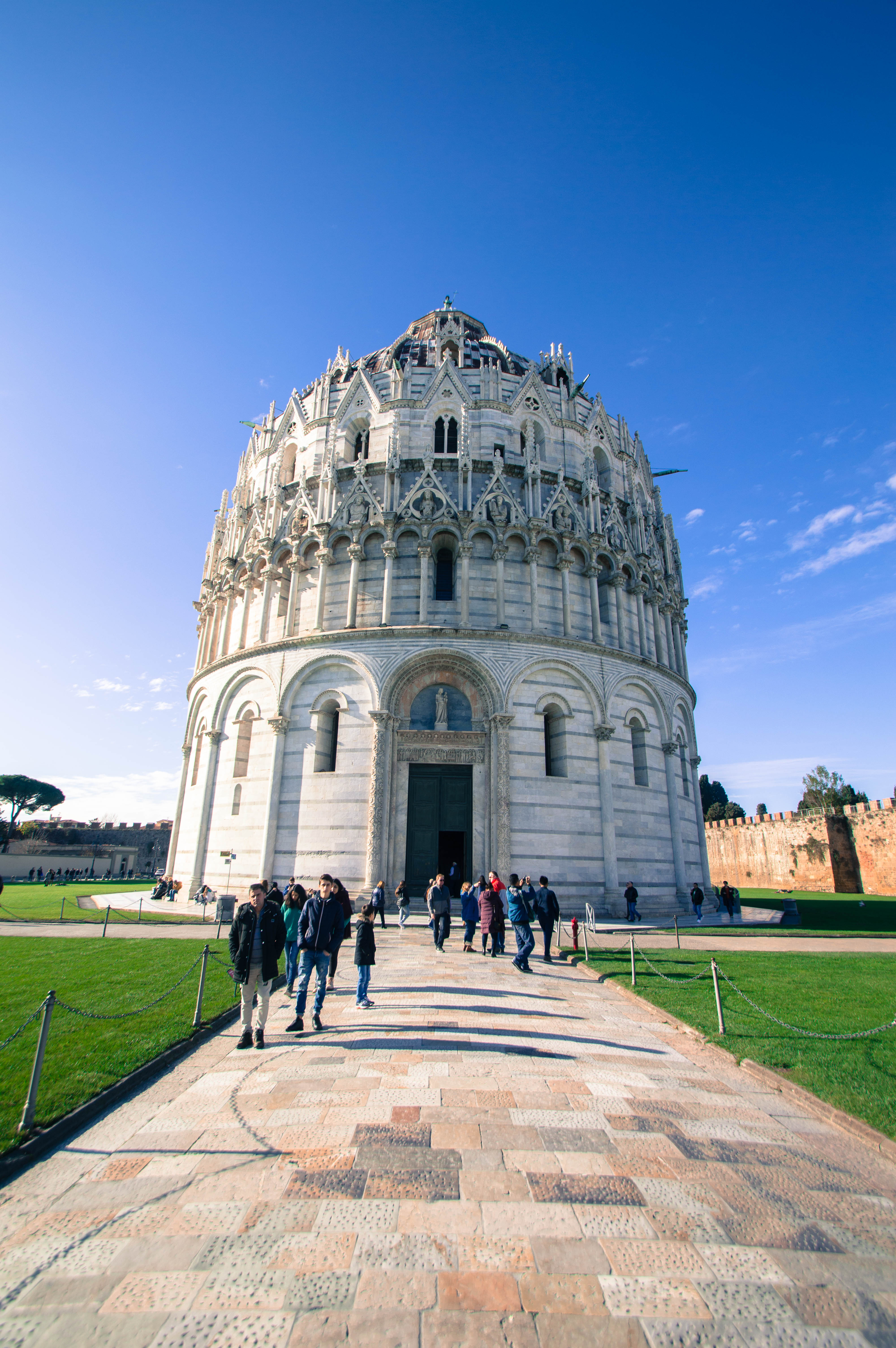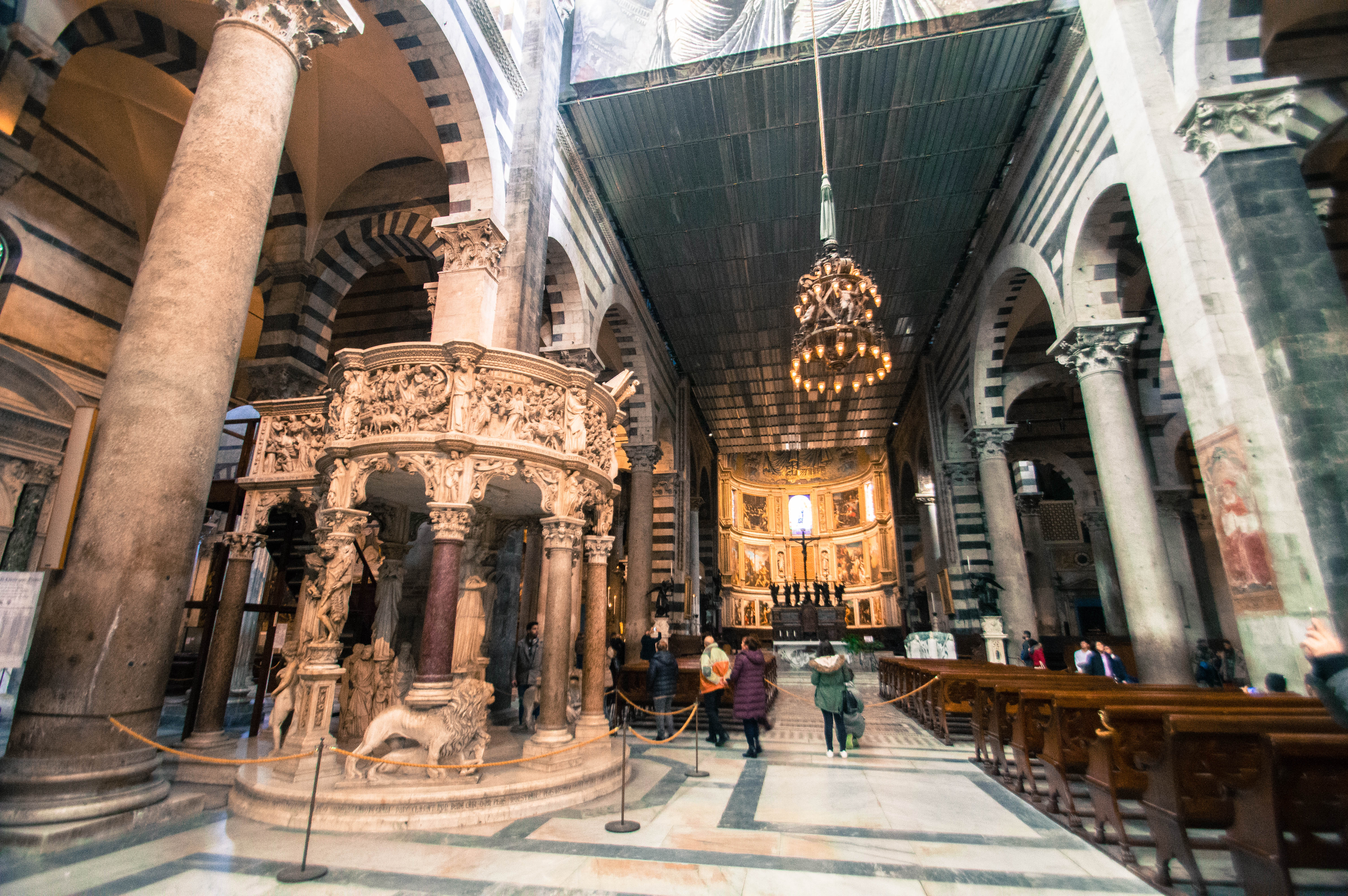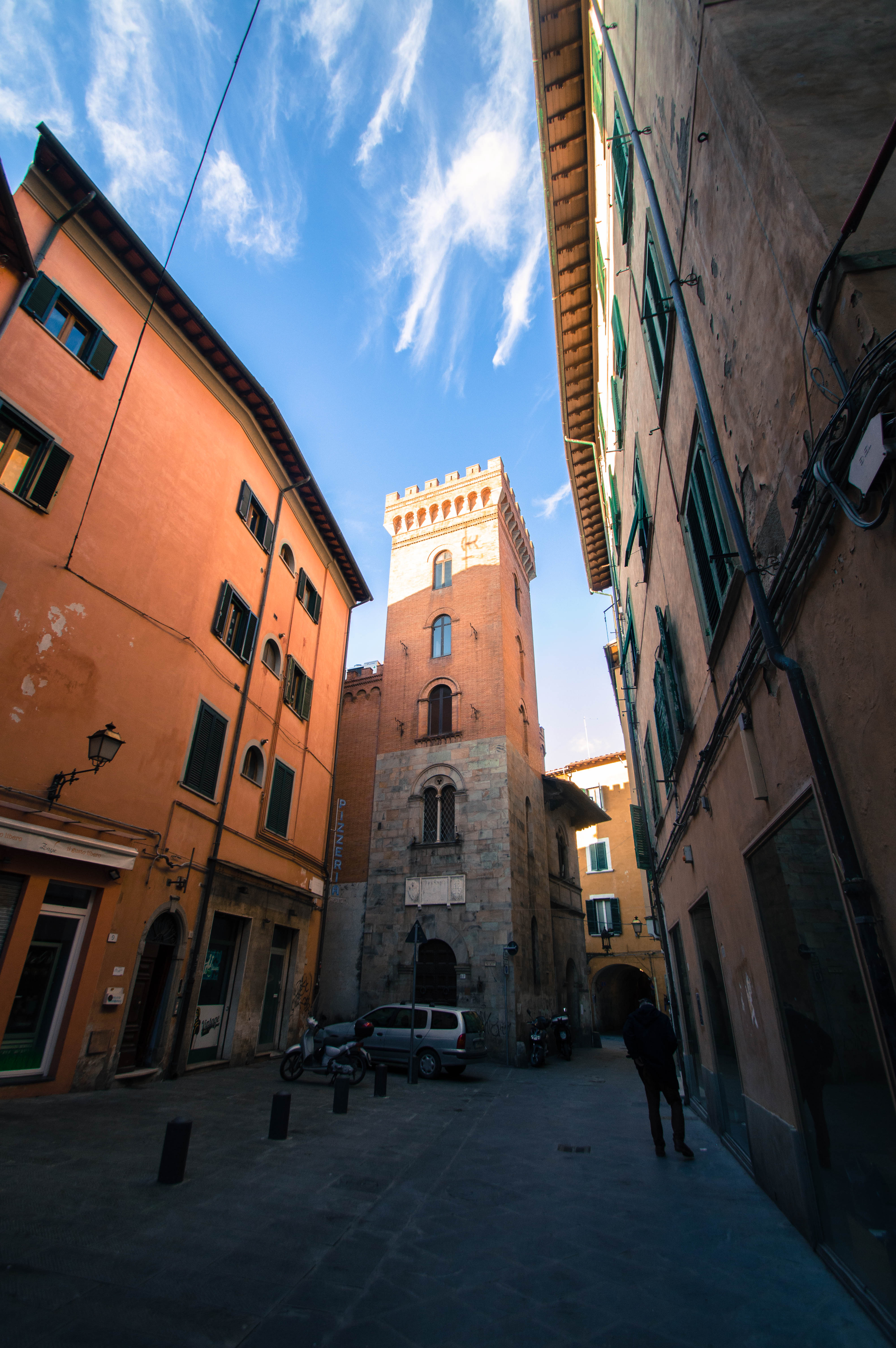 Notre arrivée en Toscane s’est faite sous le soleil à 8h30 du matin. Au sortir de la gare, depuis la Piazza della Stazione, nous enclenchons notre découverte de Pise sans perdre un instant. Nous empruntons la première rue qui s’offre à nous et qui nous mène à la Piazza Vittorio Emanuele II. La ville s’éveille, les marchés de Noël s’installent. La rue principale commerçante de Corso Italia est encore déserte et les rayons du soleil viennent titiller les décorations ainsi que les façades des immeubles.