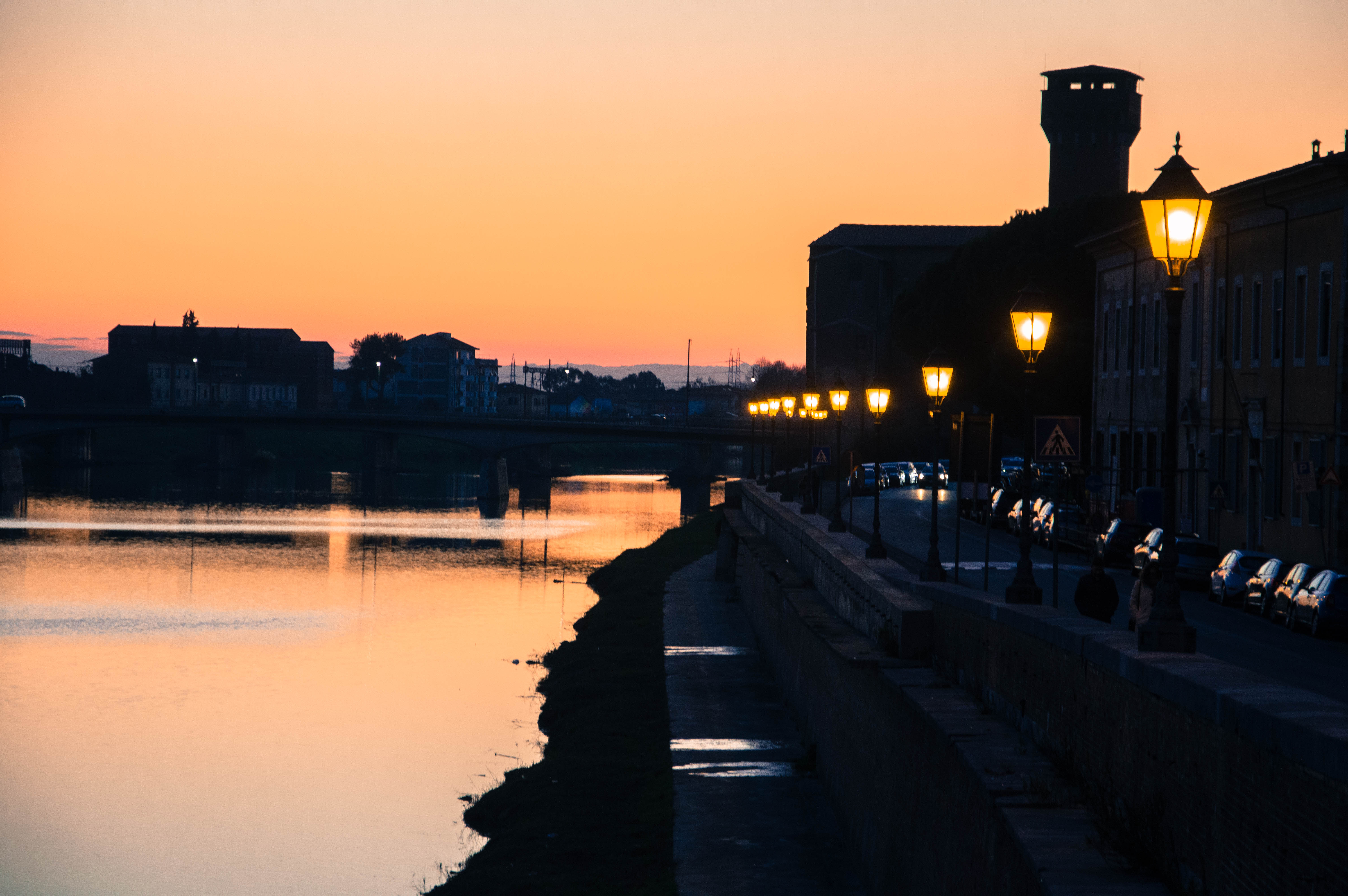 Nous faisons le tour de la ville, visitons quelques petites églises, passons par la Piazza Dei Cavalieri, repassons une dernière fois vers la Tour de Pise et nous revenons progressivement au Tibre avec un sunset des plus rouge vif.