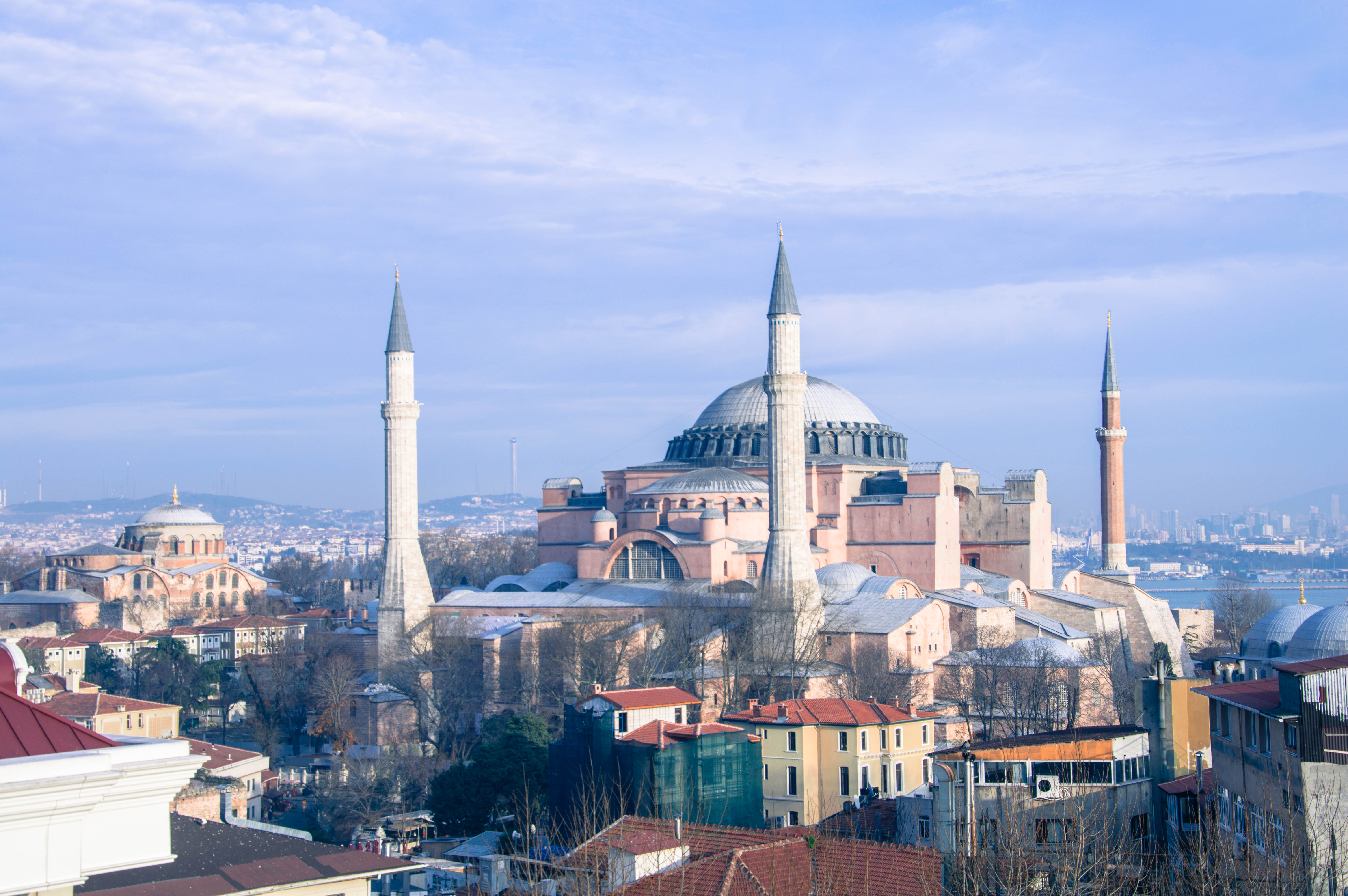 - La Basilique Sainte-Sophie, ou Hagia Sophia en grec qui signifie « Sainte Sagesse ». Ancienne basilique chrétienne puis mosquée, elle est aujourd’hui répertoriée comme un musée plutôt qu’un lieu de culte. On admire ses colonnes en marbre et granite, ses colonnes, sa copupole qui lui ont conféré le statut de plus grande basilique au monde avant que la Cathédrale de Séville lui vole la vedette. Son architecture byzantine lui vient du fait qu’elle aurait été construite avec des matériaux provenant de Grèce.