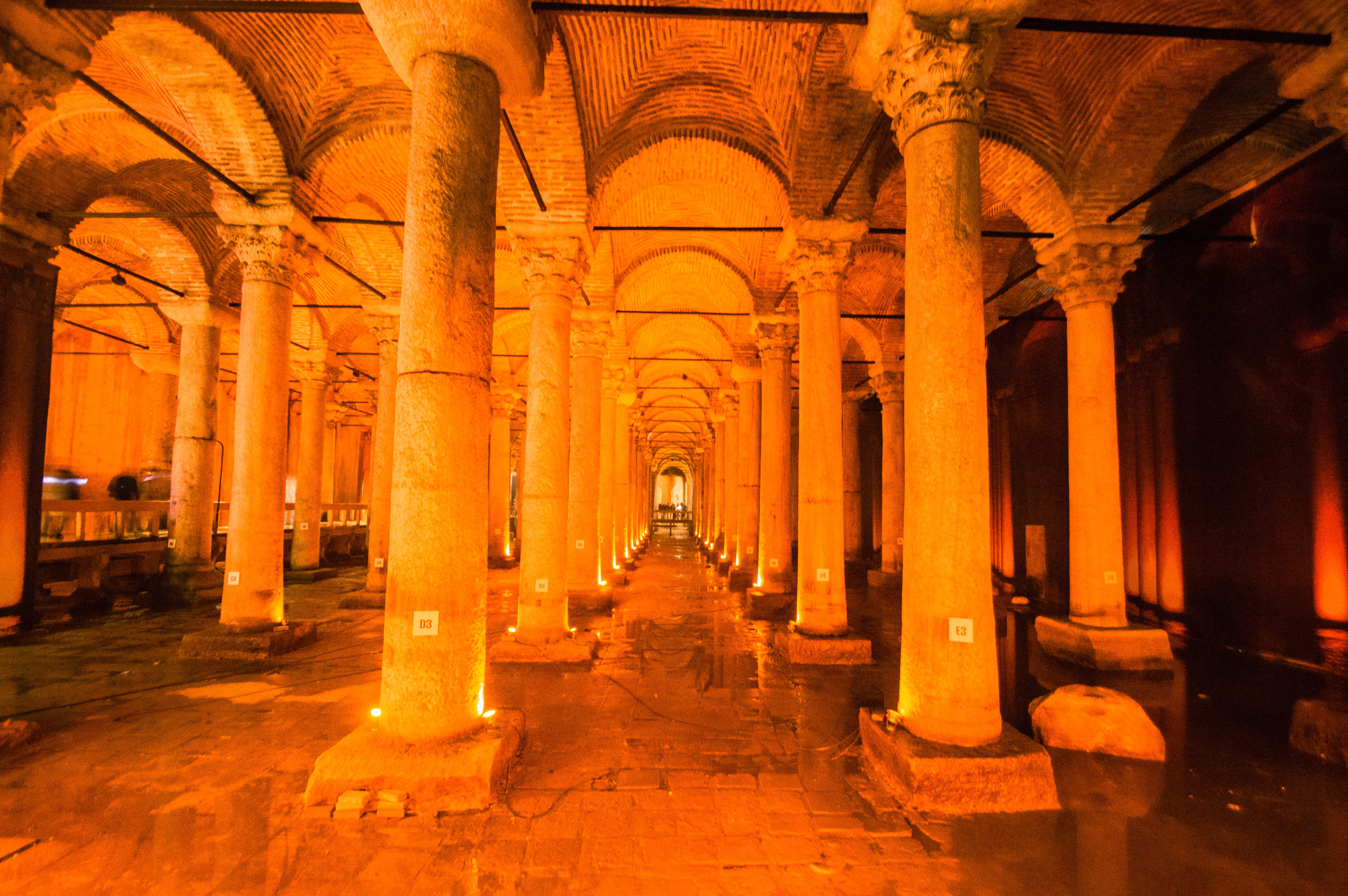 6. La Citerne-Basilique (Yerebatan Sarnıcı). Son entrée discrète est située juste en face de la basilique Sainte-Sophie. Cette citerne souterraine de Constantinople constituait à l’époque un important stock de 78.000 m3 d’eau. Aujourd’hui c’est l’une des top activités à faire dans la ville. A des dizaines de mètres de profondeur, vous entrez dans un autre monde où vous vous baladez le long des colonnes dans une atmosphère humide et tamisée, sur un fond musical discret.