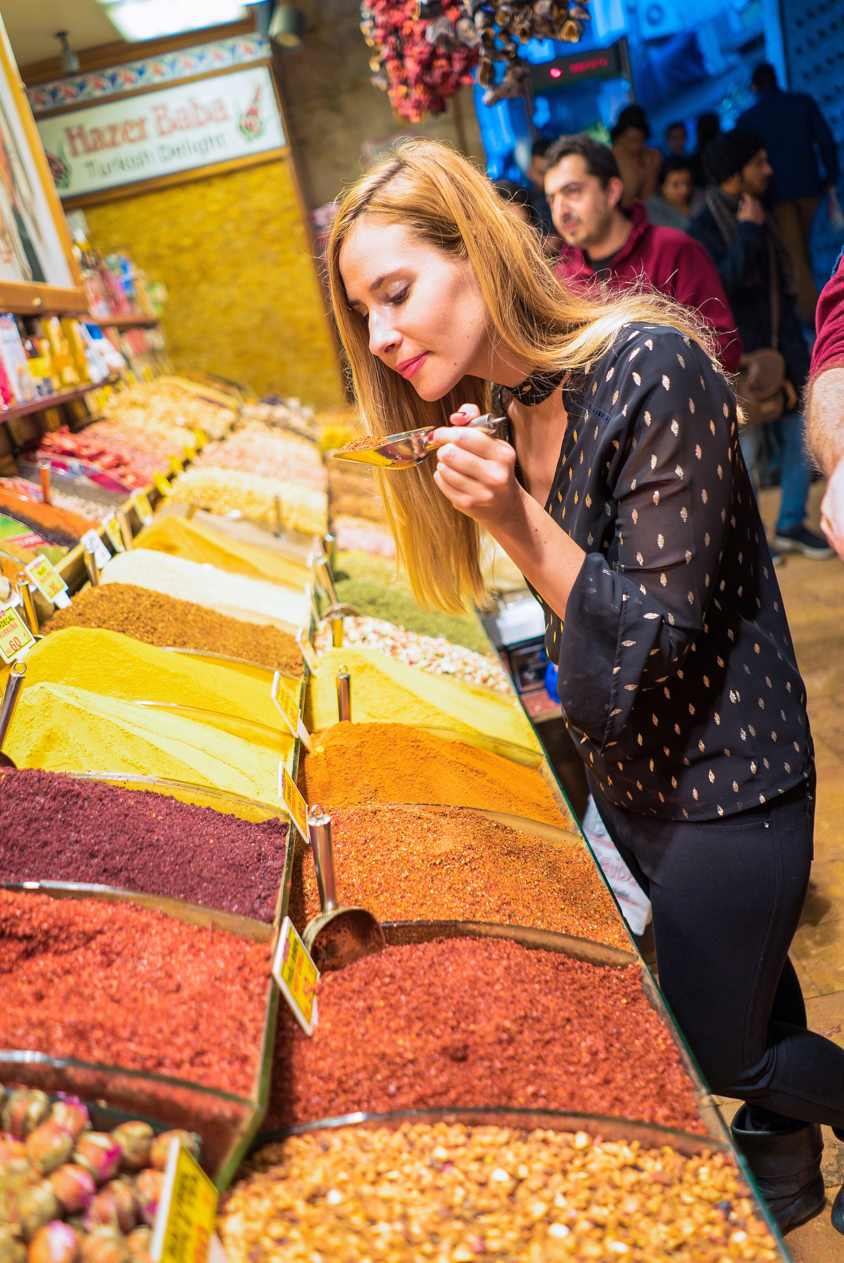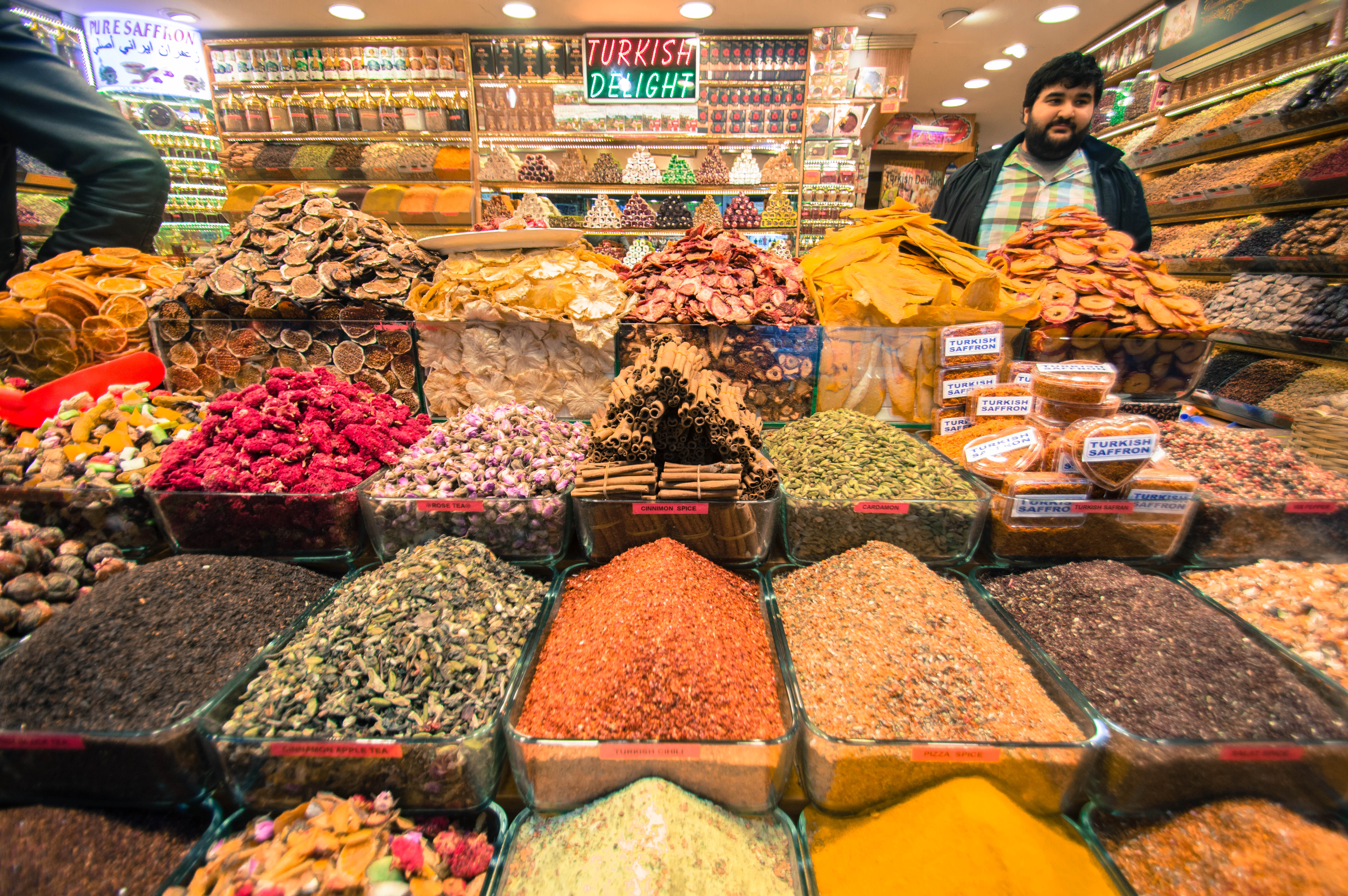 Devant un marchand d’épices au Bazar Egyptien d’Istanbul