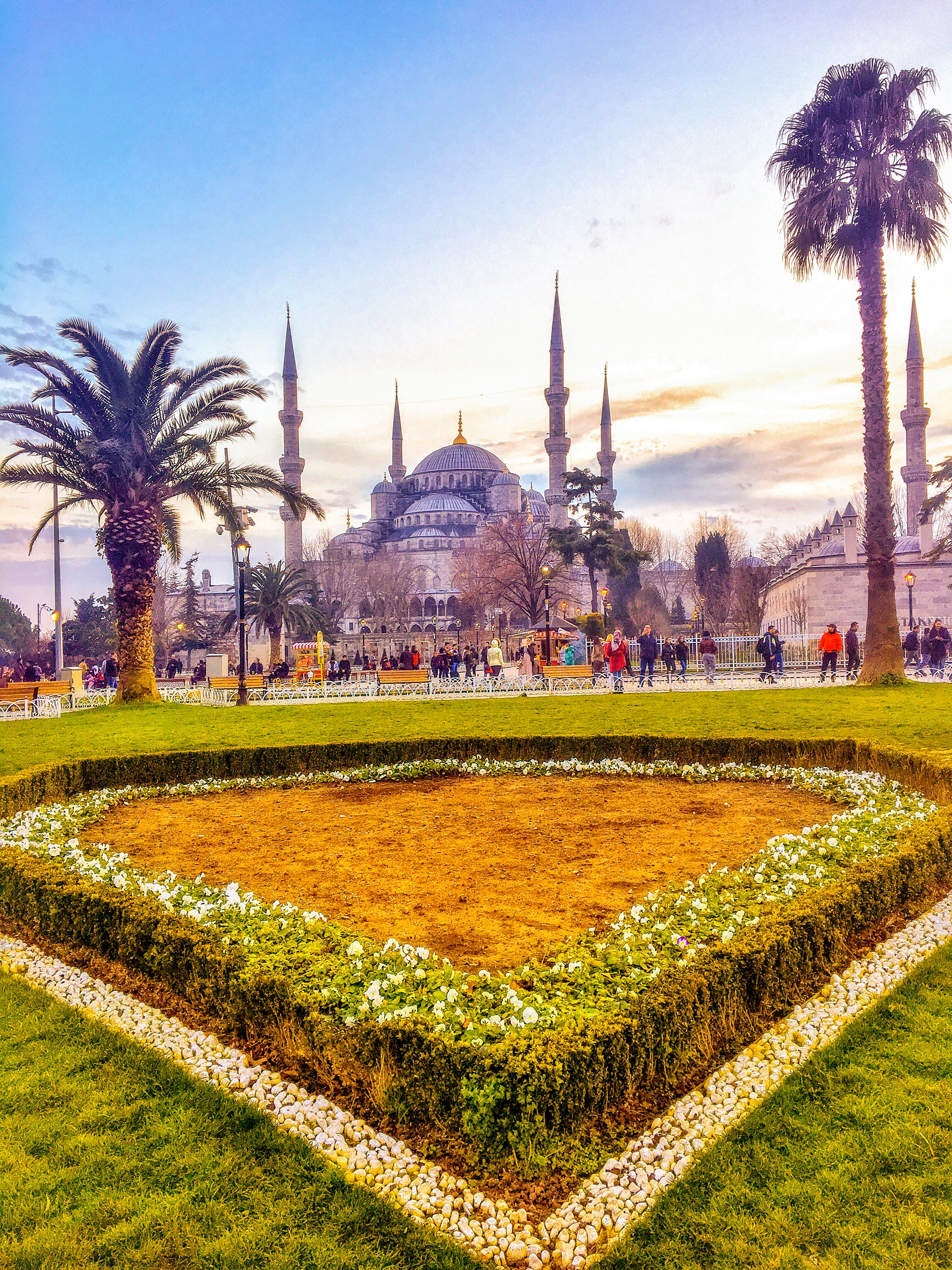Le quartier de Sultanahmet commence par la belle esplanade centrale et son parc qui regroupe les deux lieux prisés que sont Sainte-Sophie et la Mosquée Bleue. De plus, juste devant cette dernière se trouve un ancien hippodrome dont on devine l’existence par deux obélisques égyptiens de l’époque restés intactes.