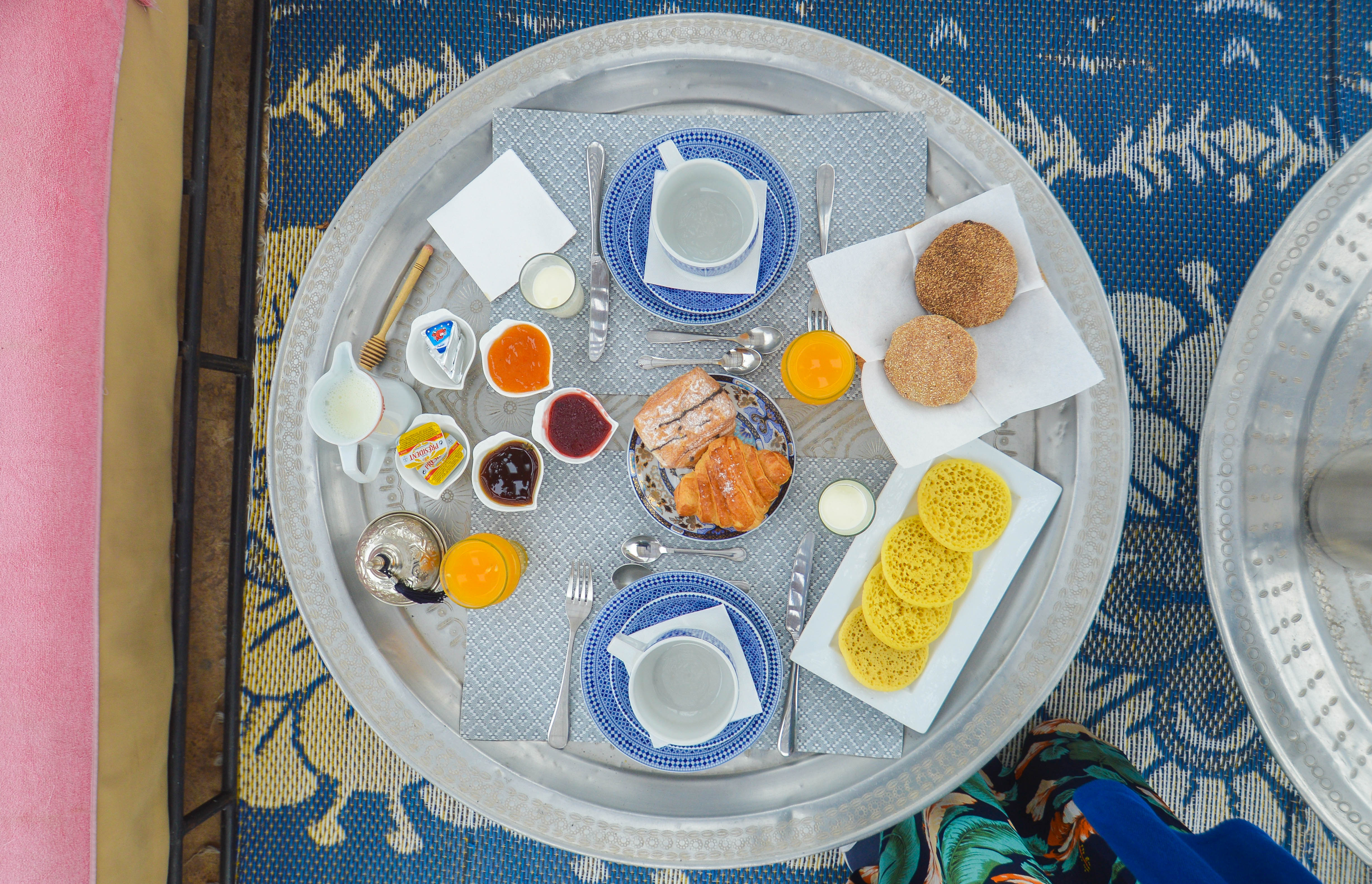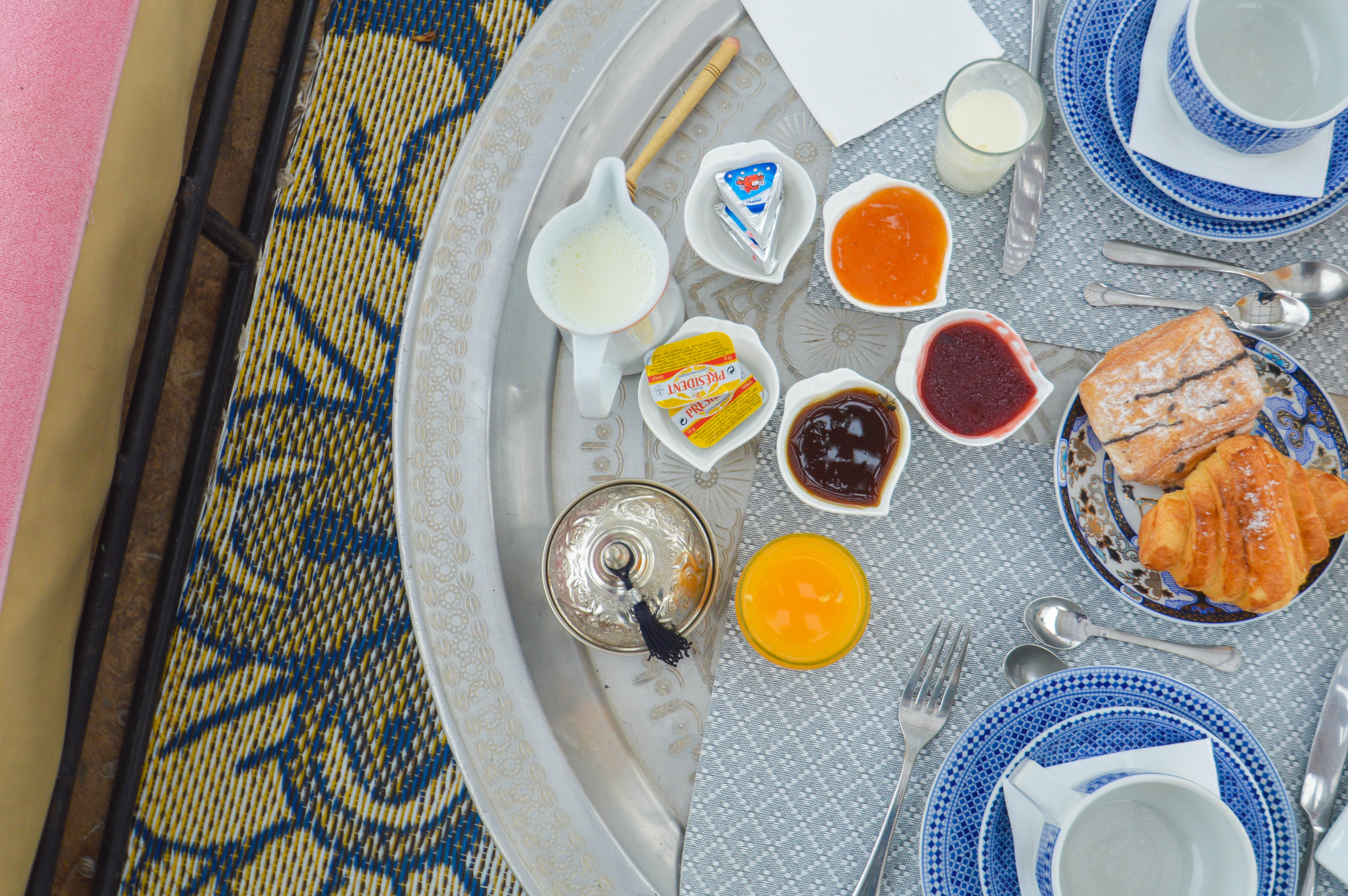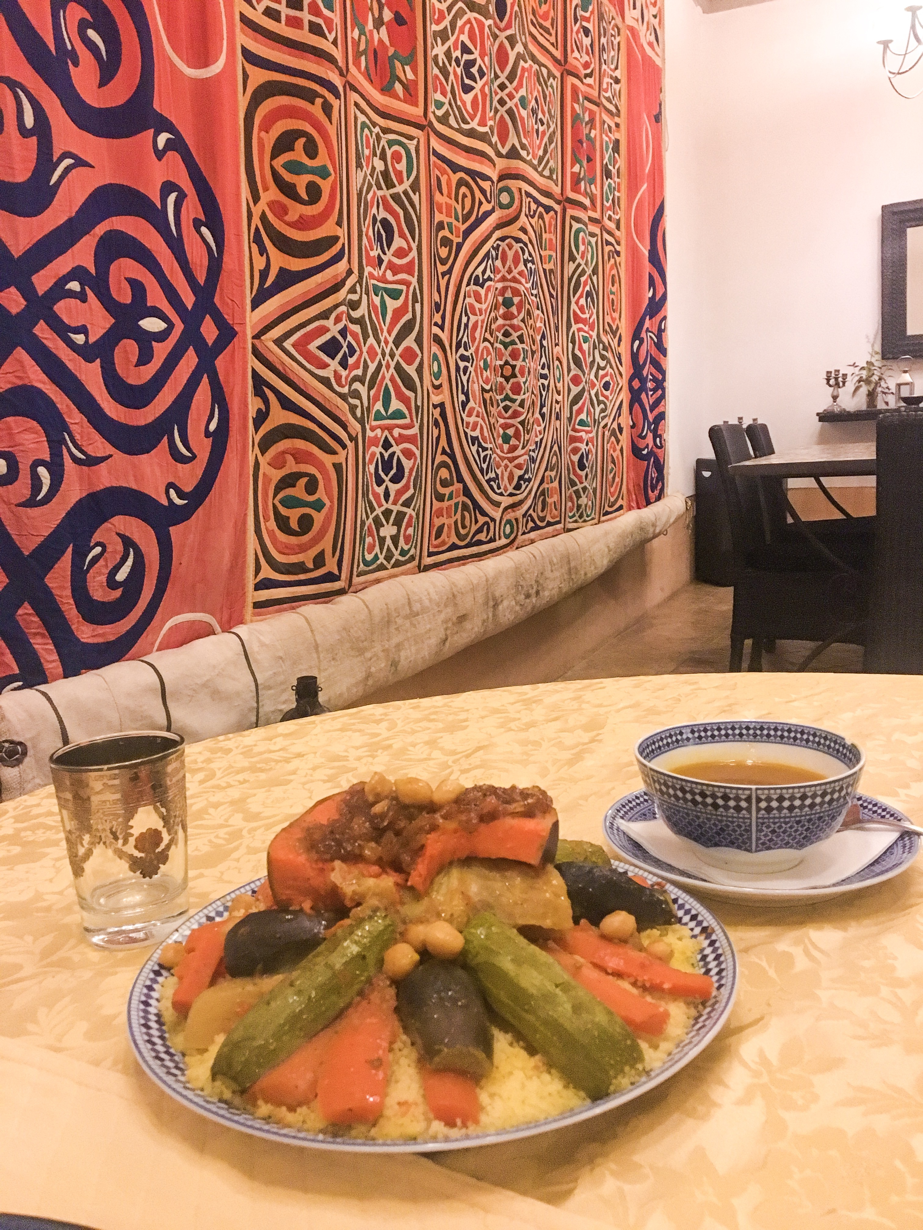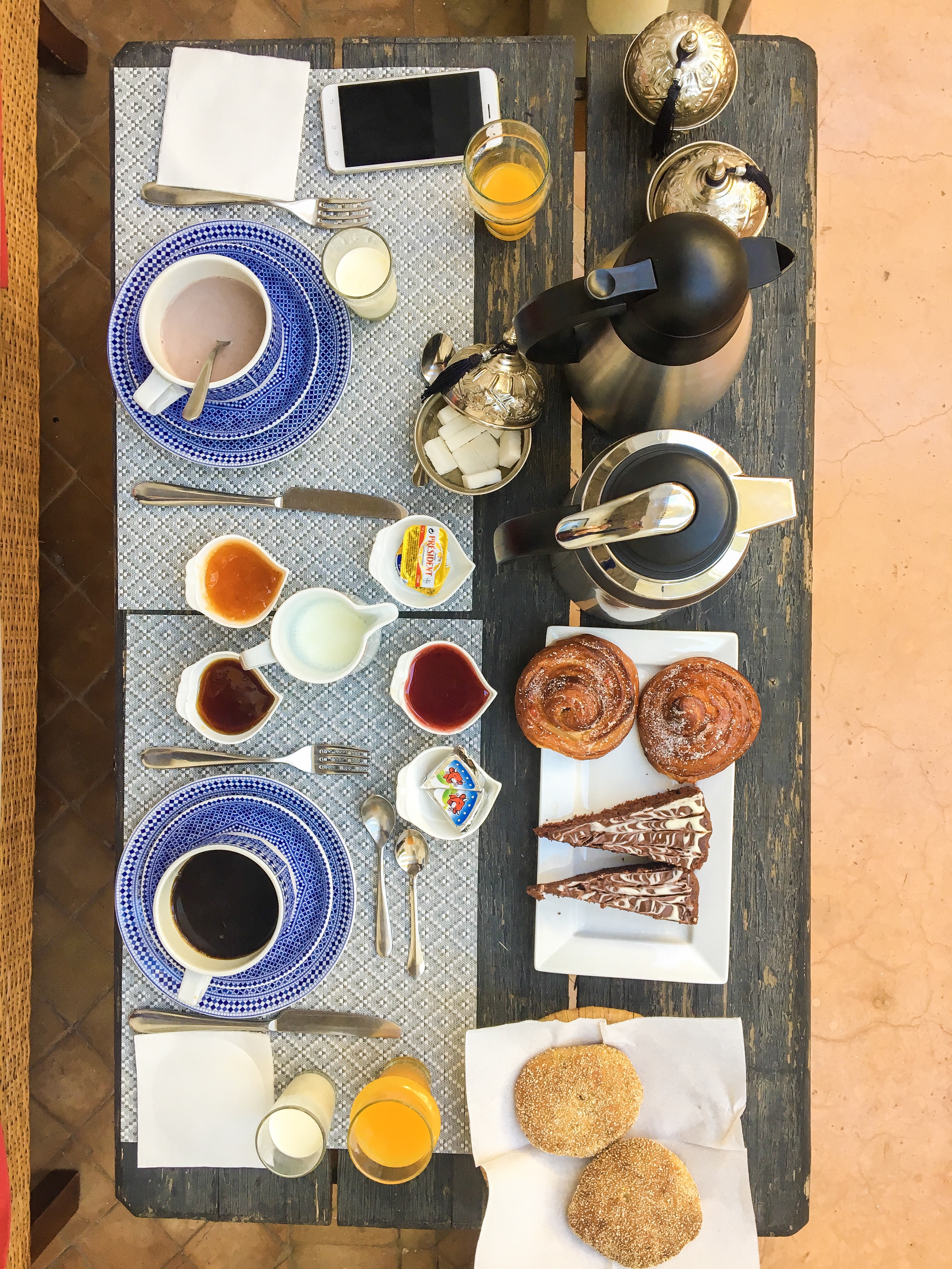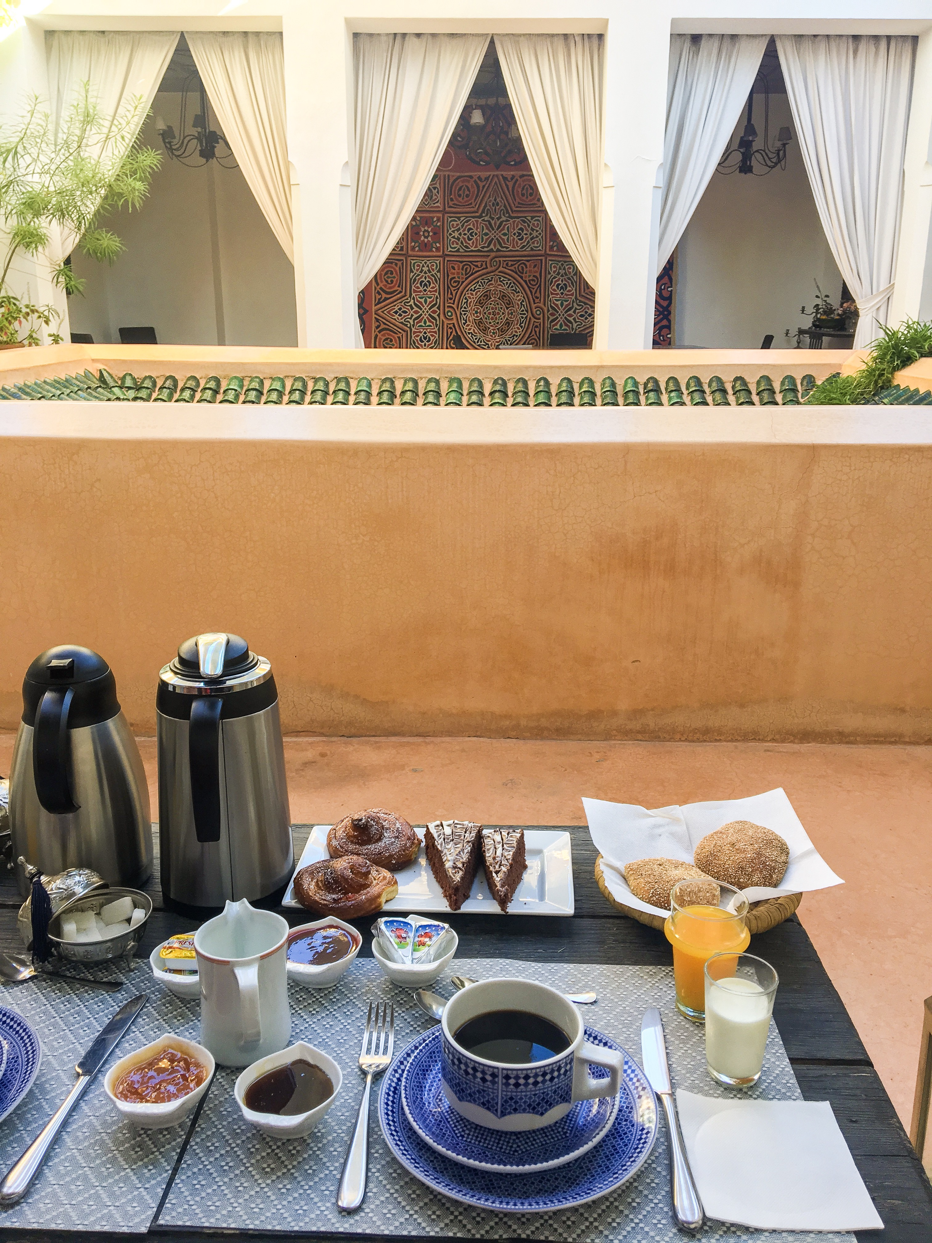 Le riad marche à la confiance et au respect de chacun, ainsi les portes des chambres restent entre-ouvertes et tout le monde se rejoint convivialement au premier étage pour les repas ou bien en terrasse. Allons-y !