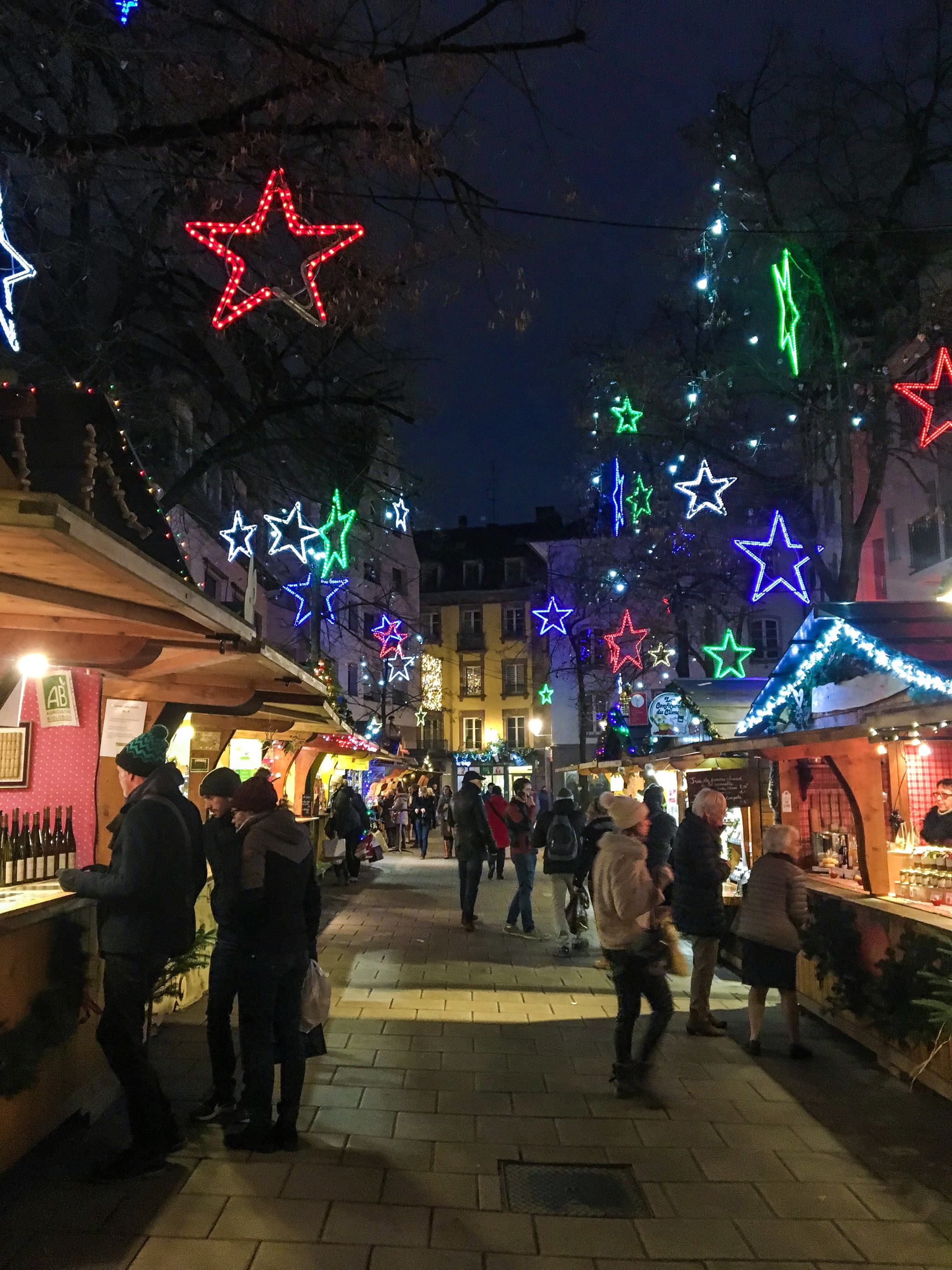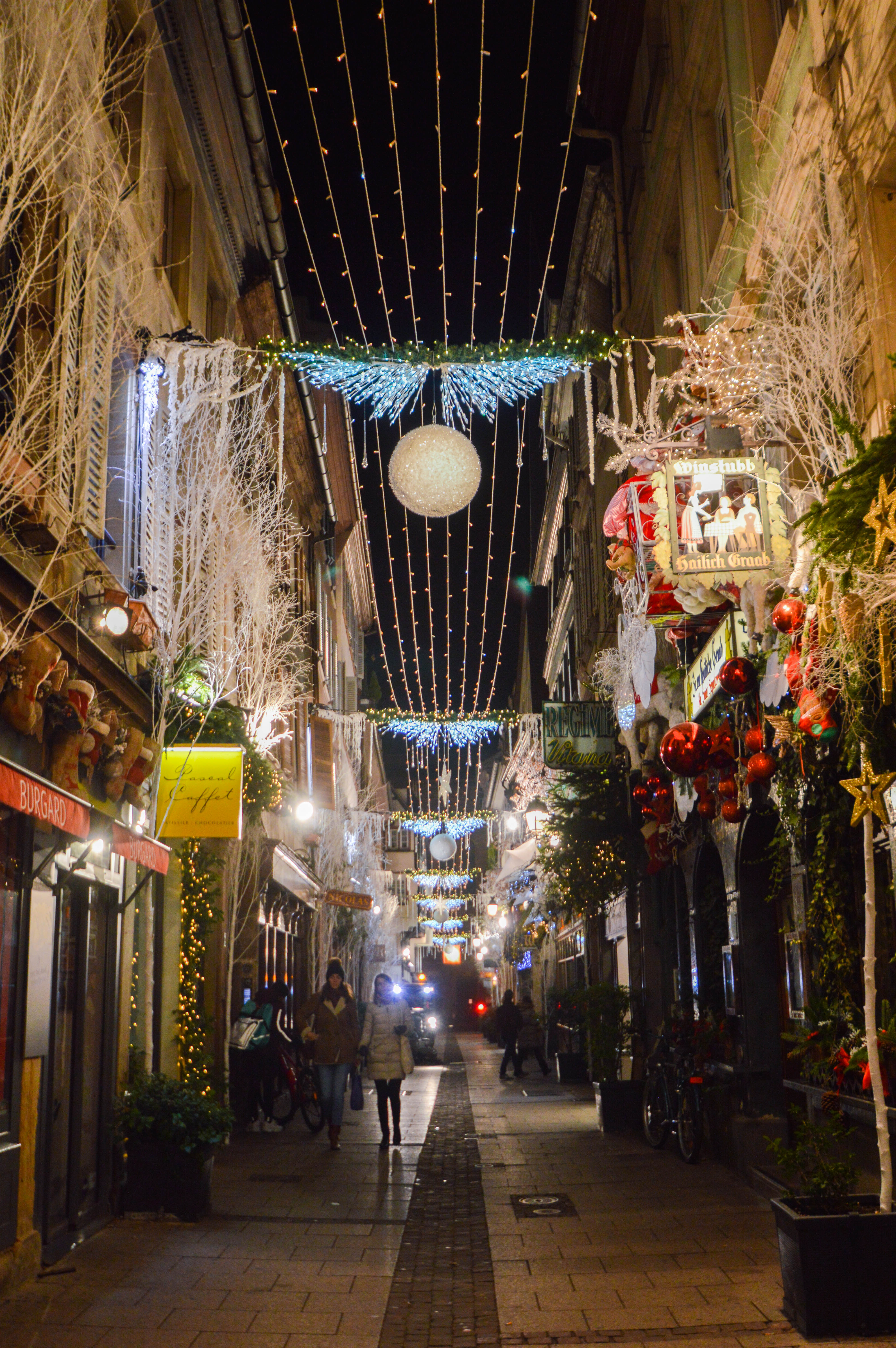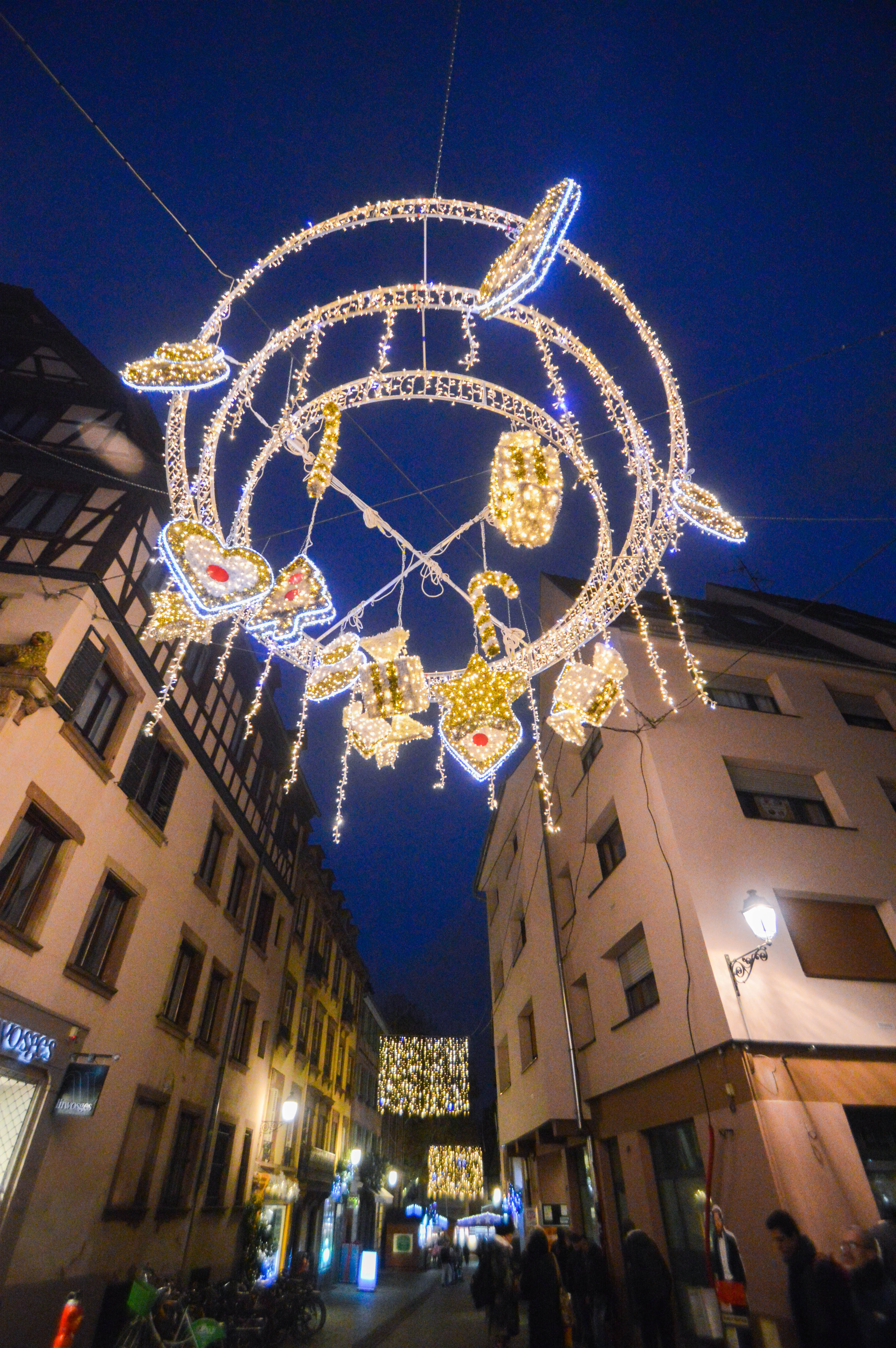 Que serait un passage en Alsace sans bretzel ? Dans le coeur historique et commerçant, la Rue des Orfèvres est parfaitement revêtue d’un plafond de lumières étincelantes et on peut y déguster de délicieux bretzels dont ceux de chez Bretzel Burgard. Elle comporte plein de jolis édifices et de maisons d’orfèvres du 18ème siècle, à qui elle doit son nom. Les trois autres rues de ce Carré sont la Rue du Chaudron, Rue du Sanglier et la Rue du Temple Neuf où l’on trouve tout plein d’enseignes gastronomiques, boulangeries, pâtisseries, fromageries, boucheries, charcuteries, des restaurants et aussi de cosmétiques, de mode et d’accessoires, de bijoux, autant d’idées cadeaux pour les fêtes.