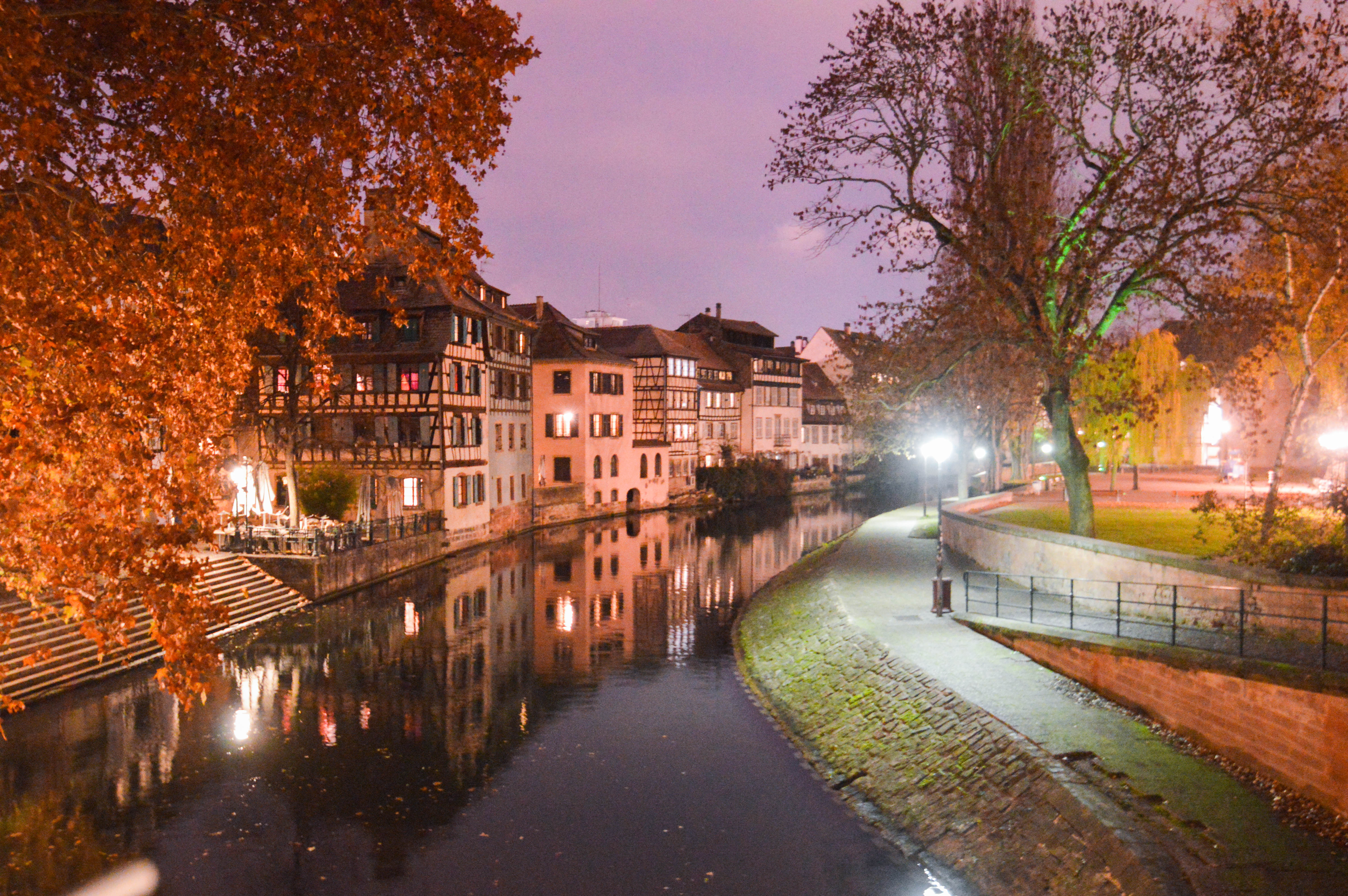 Etape incontournable d’une visite dans Strasbourg, le quartier de la Petite France et son bouquet coloré de façades depuis les berges et les ponts ! De nuit, les maisons à colombages illuminées dans un reflet parfait dans l’eau, que demander de plus magique ?