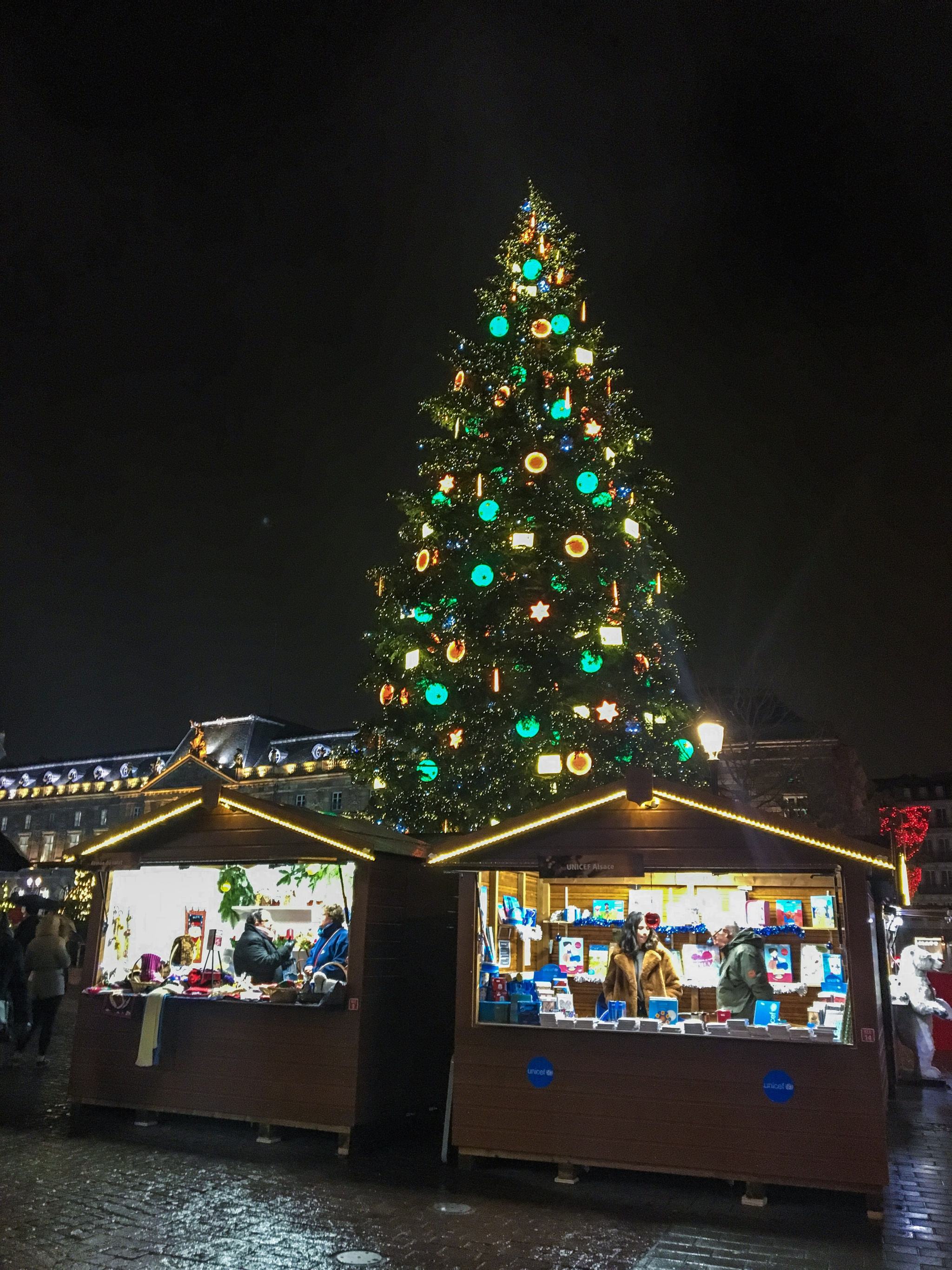 Grande place étendue jusqu’à l’Opéra et bordée par la librairie de Broglie, elle accueille le magnifique et vaste marché de Noël Christkindelsmärik. On n’hésitera pas à y déguster un bon vin chaud, de bons chocolats d’Alsace à toutes les saveurs, des pâtes de fruits, du pain d’épice, faire un tour de carrousel pour les enfants, acheter des décorations d’anges de noël pour le sapin, mais surtout profiter des décorations simplement et magiquement réussies ! Impossible de dire qu’on n’est pas transportés dans l’ambiance de Noël 🙂
