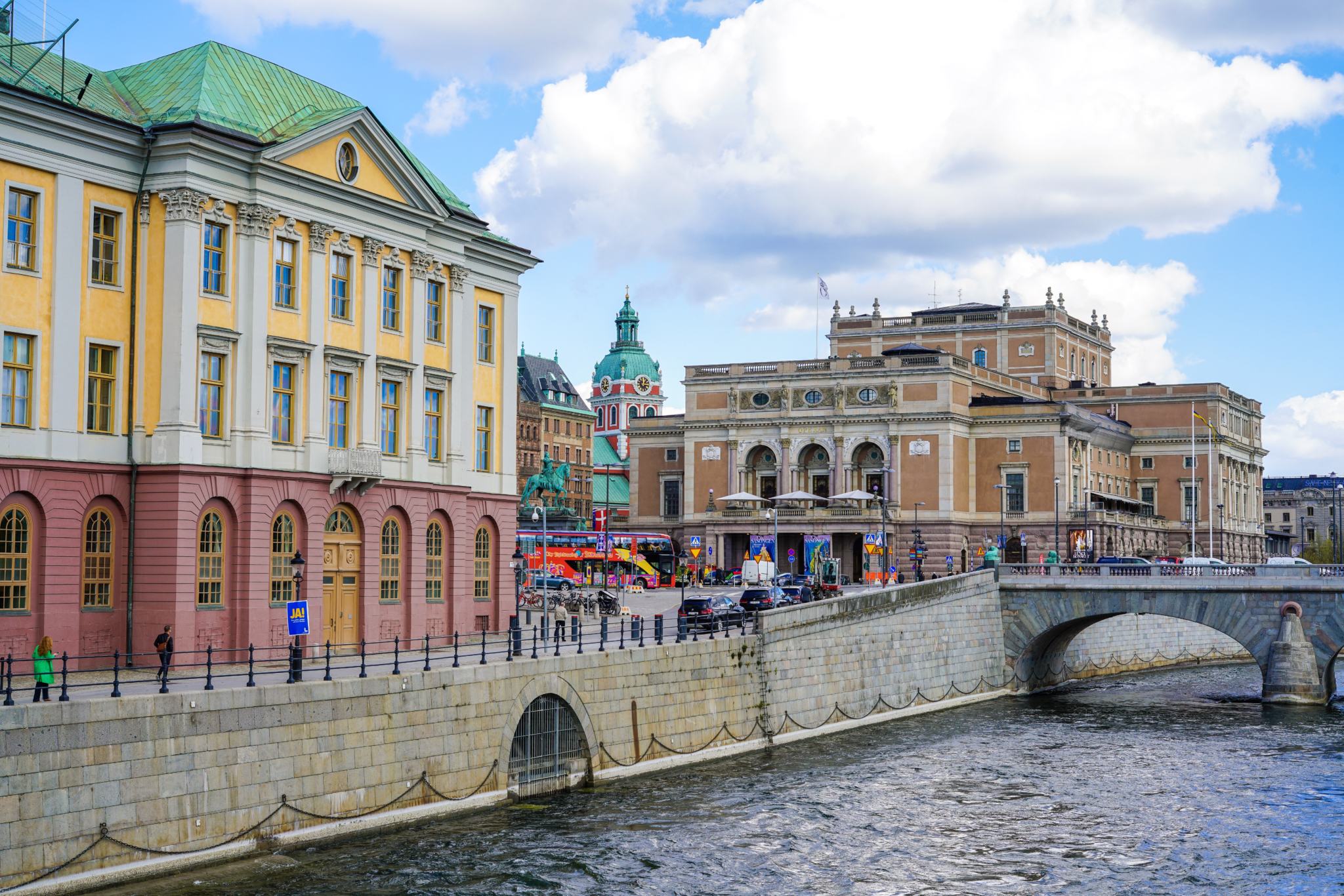Avec le bus hop-on hop-off, on peut descendre à Gamla Stan pour visiter le centre historique qui est rempli de bars, cafés, restaurants, boutiques de souvenirs. Arpenter ses petites rues pavées, passer devant ses façades colorées jusqu’à arriver à la Place Stortorget et ses bâtiments d’architecture rappelant facilement ceux d’autres charmantes villes polonaises, belges ou lettonnes. Elle était à l’époque le centre de la ville médiévale et a conservé l’ancien bâtiment de la bourse de Stockholm, siège de l’Académie suédoise, ainsi que le Musée Nobel et sa bibliothèque. C’est aussi dans ce centre qu’on trouve le fameux Palais Royal.