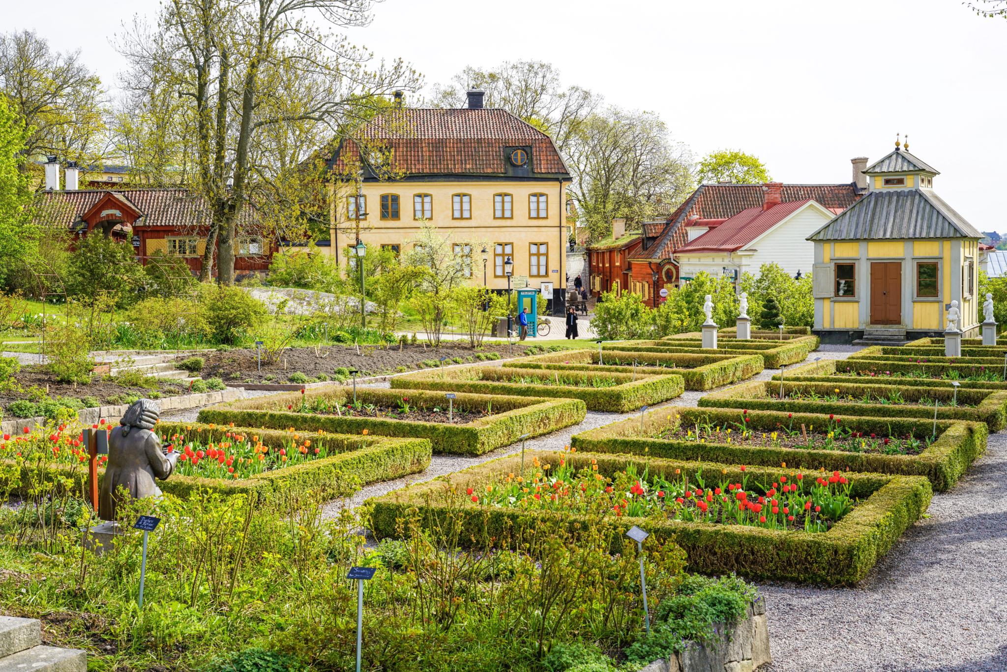 Sur une aire de 300 000 m2, Skansen est un magnifique musée à ciel ouvert qui retrace l’époque de la culture et de la tradition locale. Il se présente comme un parc de loisirs mais fut à l’origine crée en 1891 comme une véritable invitation à un voyage dans le temps sur 5 siècles de l’histoire suédoise. Une partie fait office de zoo avec différentes espèces animales domestiques mais aussi sauvages et nordiques (loups, lynx, rennes, ours, otaries…), une autre reconstitue un village avec de vrais personnages d’autrefois en tenues traditionnelles dans leurs maisons, leurs ateliers et leurs commerces, une partie est dédiée aux représentations de danse folklorique du pays dans un amphithéâtre etc. Sur le chemin, on croise des maisons rouges typiques, des cottages, des chapelles, des fermes avec leurs terrains et leurs animaux, l’hôtel de ville, des moulins, une gare, la reconstitution est tellement parfait qu’on s’y croit vraiment. Cette visite est très dépaysante, d’autant qu’elle offre un joli panorama sur Stockholm sur la colline située au nord du parc vers les animaux sauvages nordiques. Des occasions festives y sont célébrées toute l’année dont Noël.