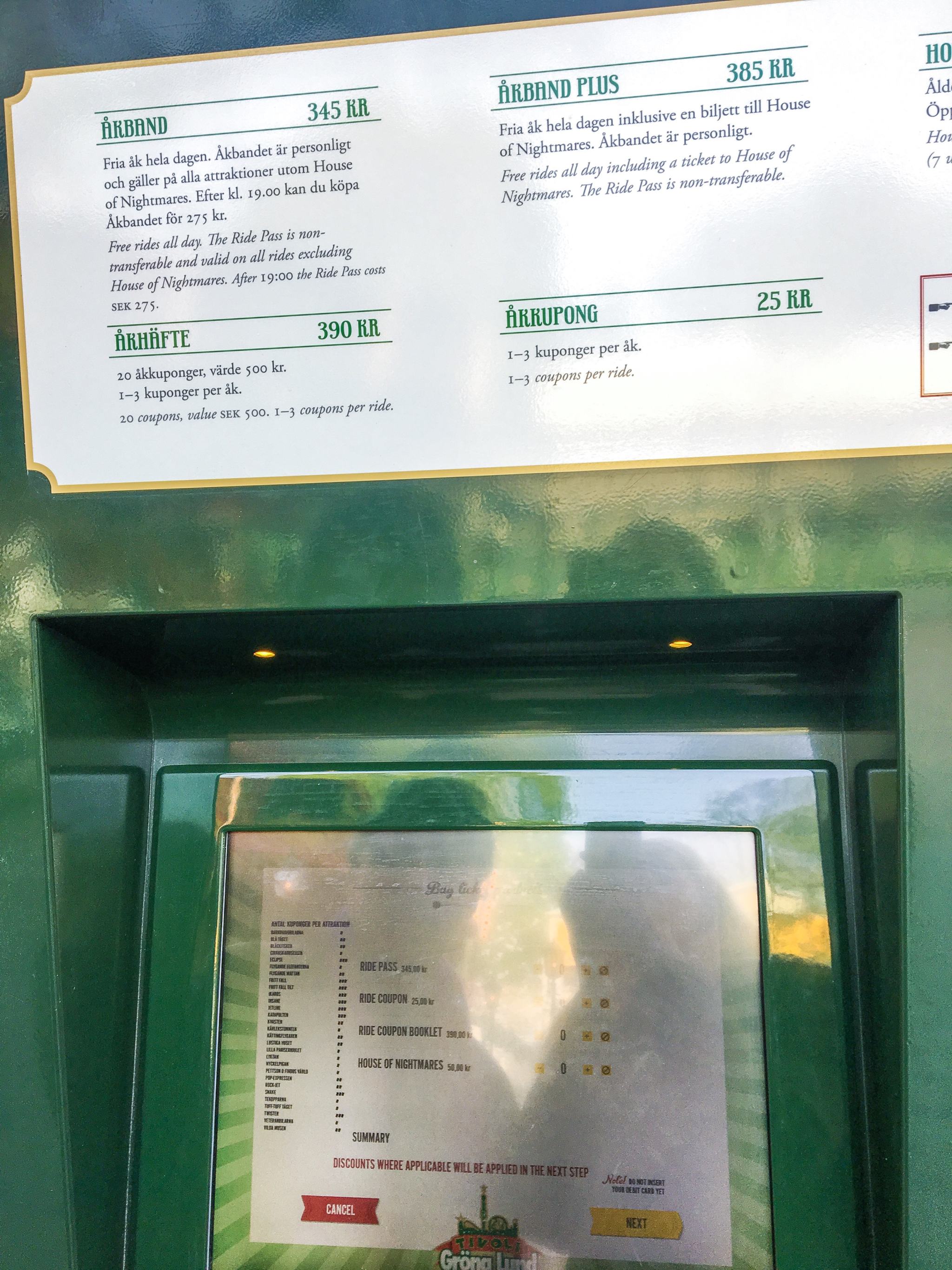 Sur l’île de Djurgården, on a le petit Disneyland Paris de Stockholm, avec ses 31 manèges, le Gröna Lund est le plus ancien parc d’attractions suédois. On y trouve des attractions similaires à notre Disney local comme des tasses ou des éléphants. L’entrée avec le Pass est gratuite mais il faut payer chaque attraction que l’on veut faire sur la machine que l’on aperçoit ci-dessous.