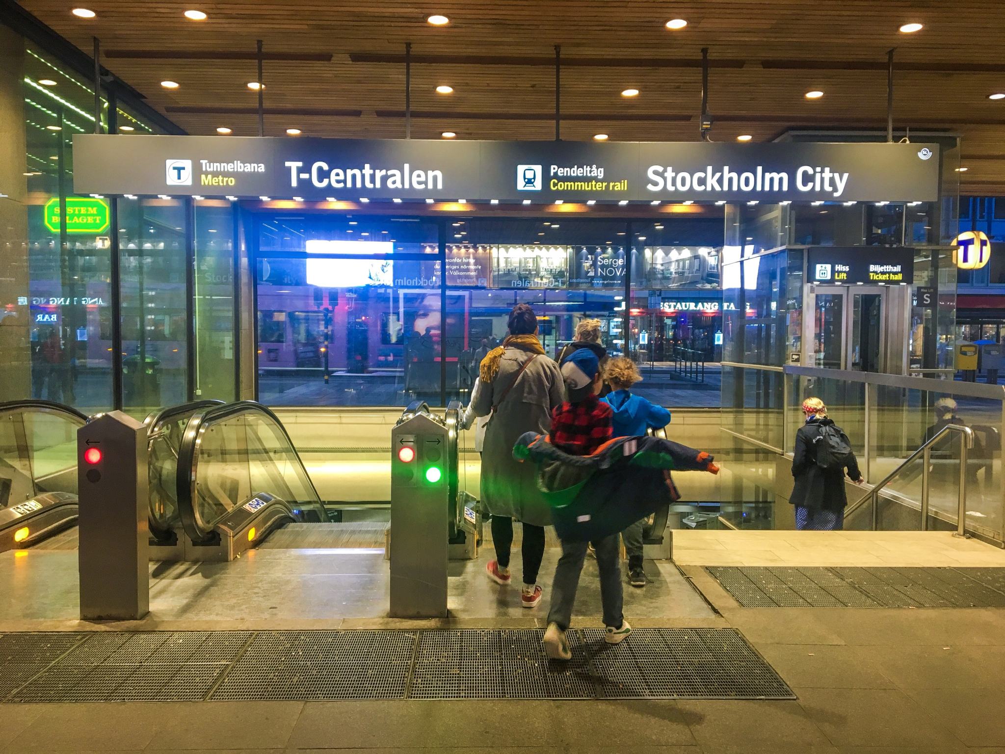- T-Centralen, la ligne bleue, avec ses plafonds blancs ponctués d’épis bleus
