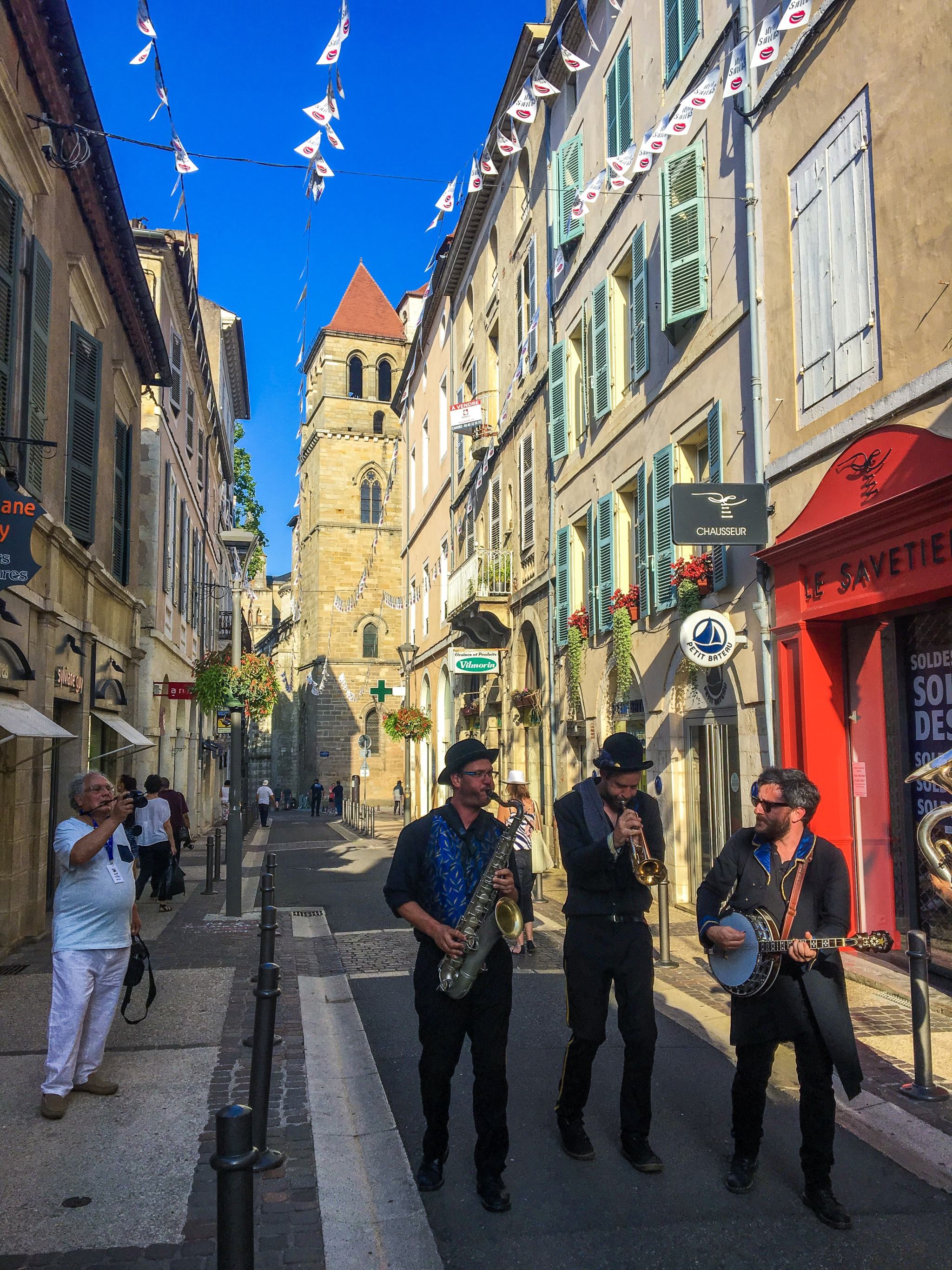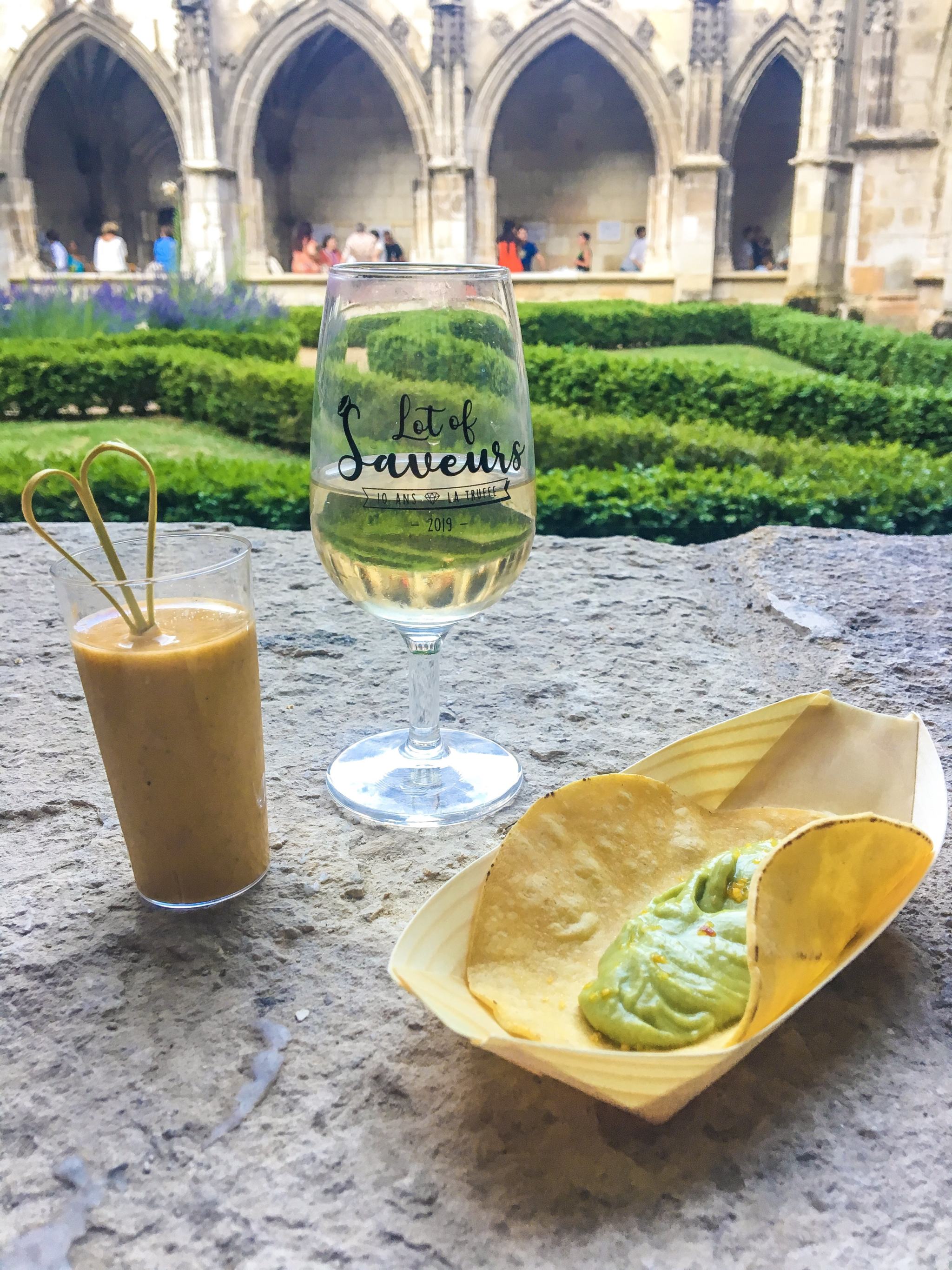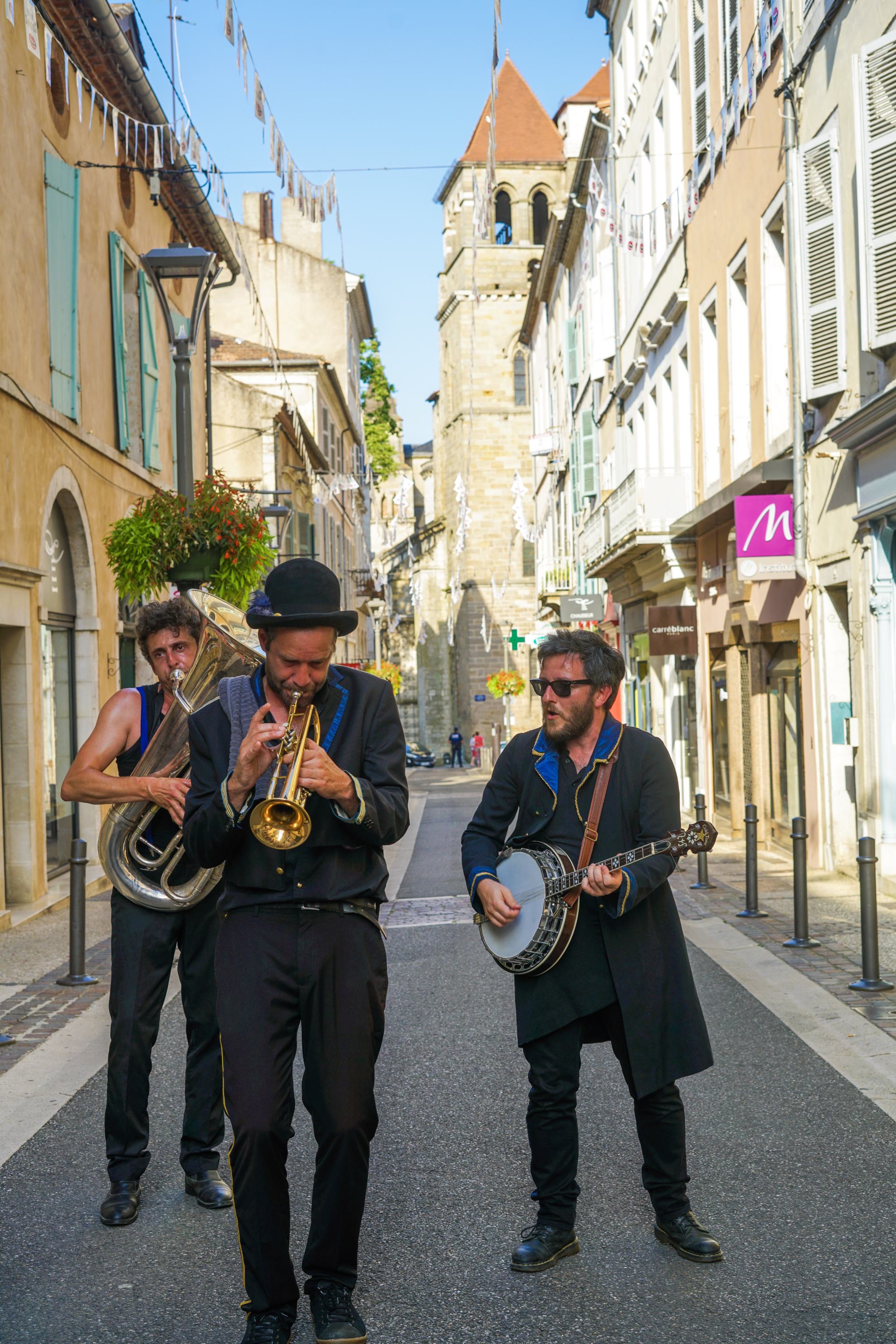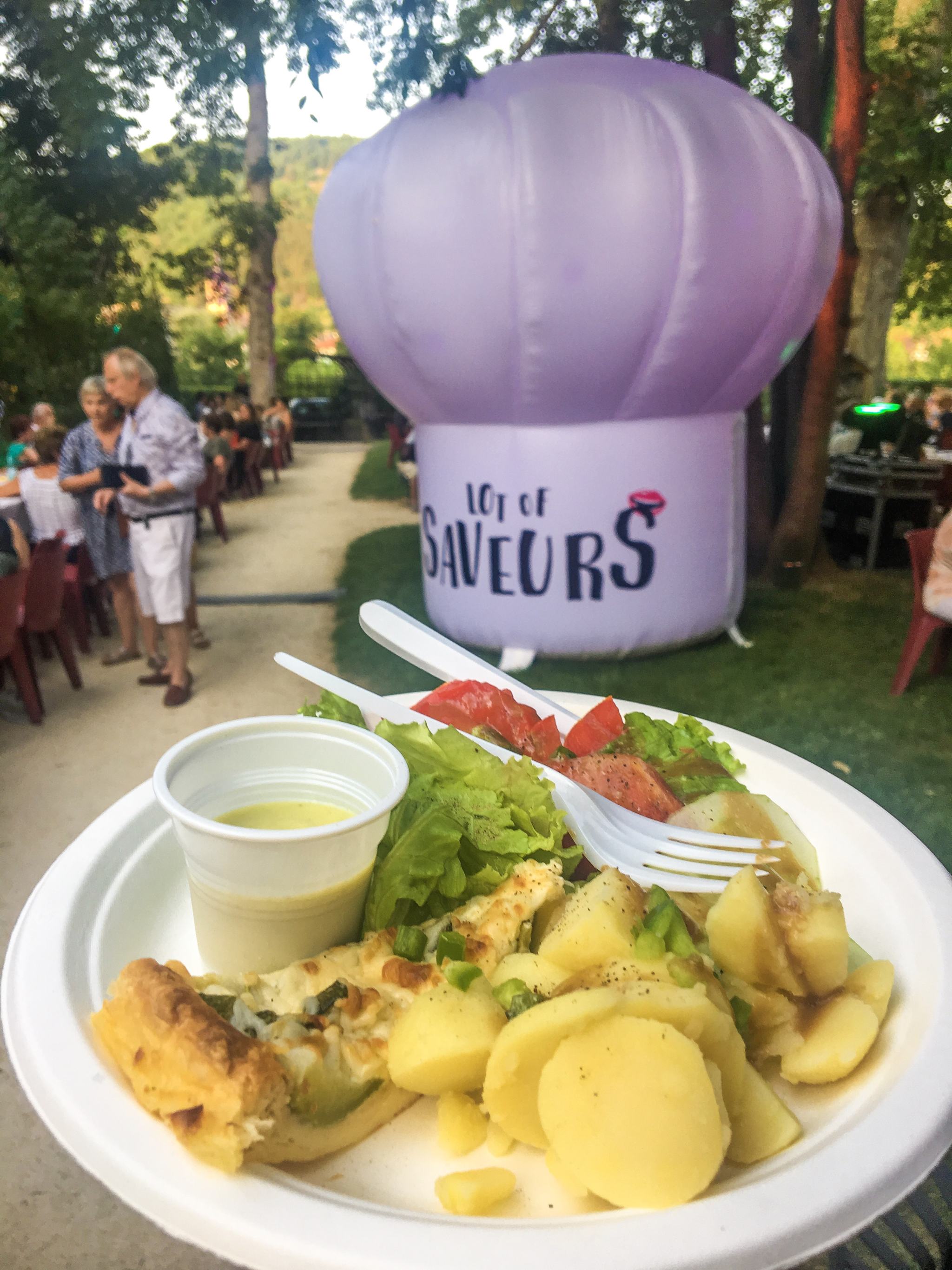 Le week-end a ensuite débuté par l’inauguration du Festival Lot of Saveurs en plein centre de Cahors, en présence du Maire de la ville Jean-Marc Vayssouze-Faure et du parrain de cette 10ème édition, Christian Constant. Nous avons dégusté l’inévitable verre de rosé Malbec en écoutant la présentation, suivi d’un concert de talentueux trompettistes qui jouaient corps et âme malgré la canicule qui frappait. Nous avons déambulé avec eux dans les rues de la ville en fête jusqu’à la Cathédrale Saint-Etienne de Cahors.