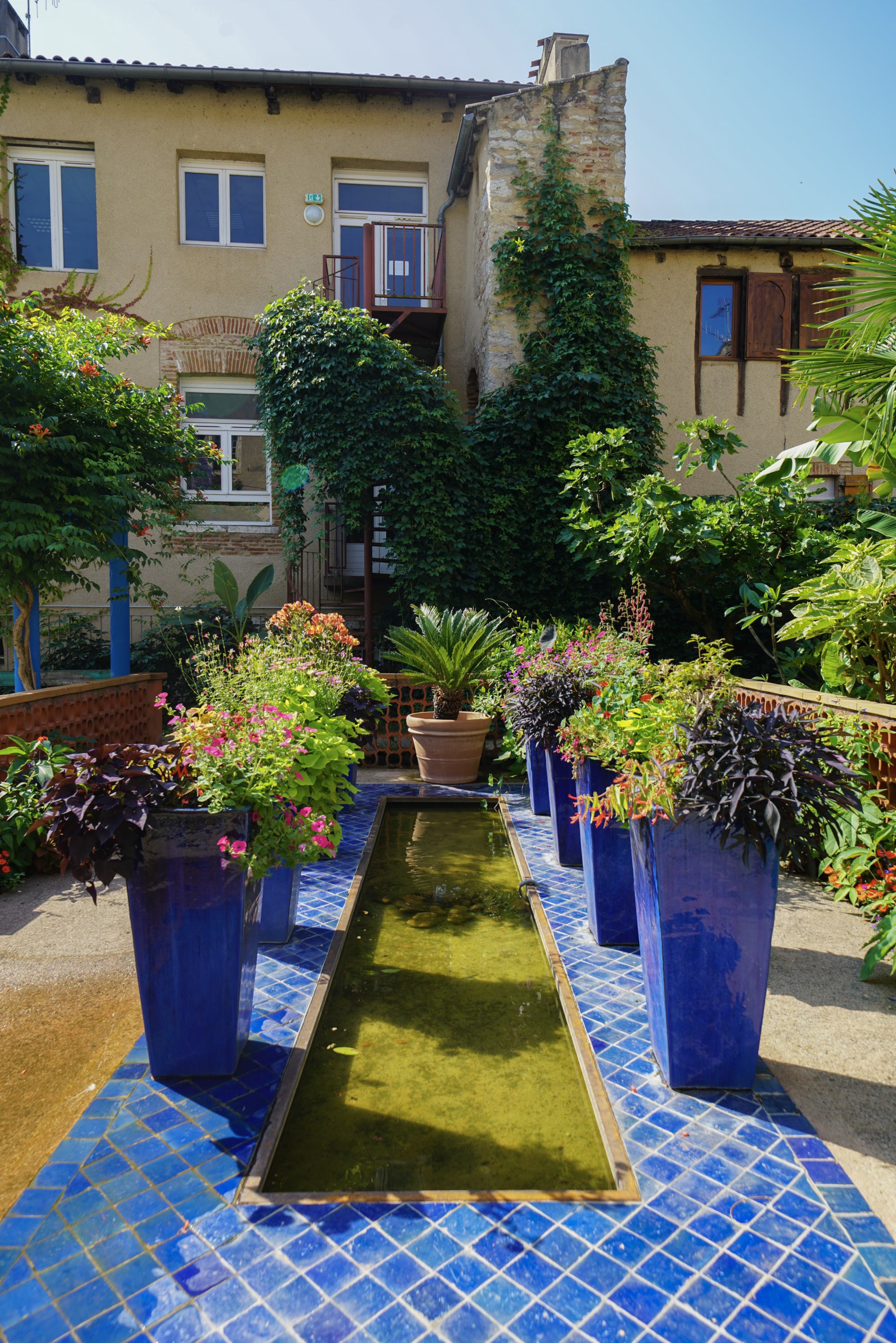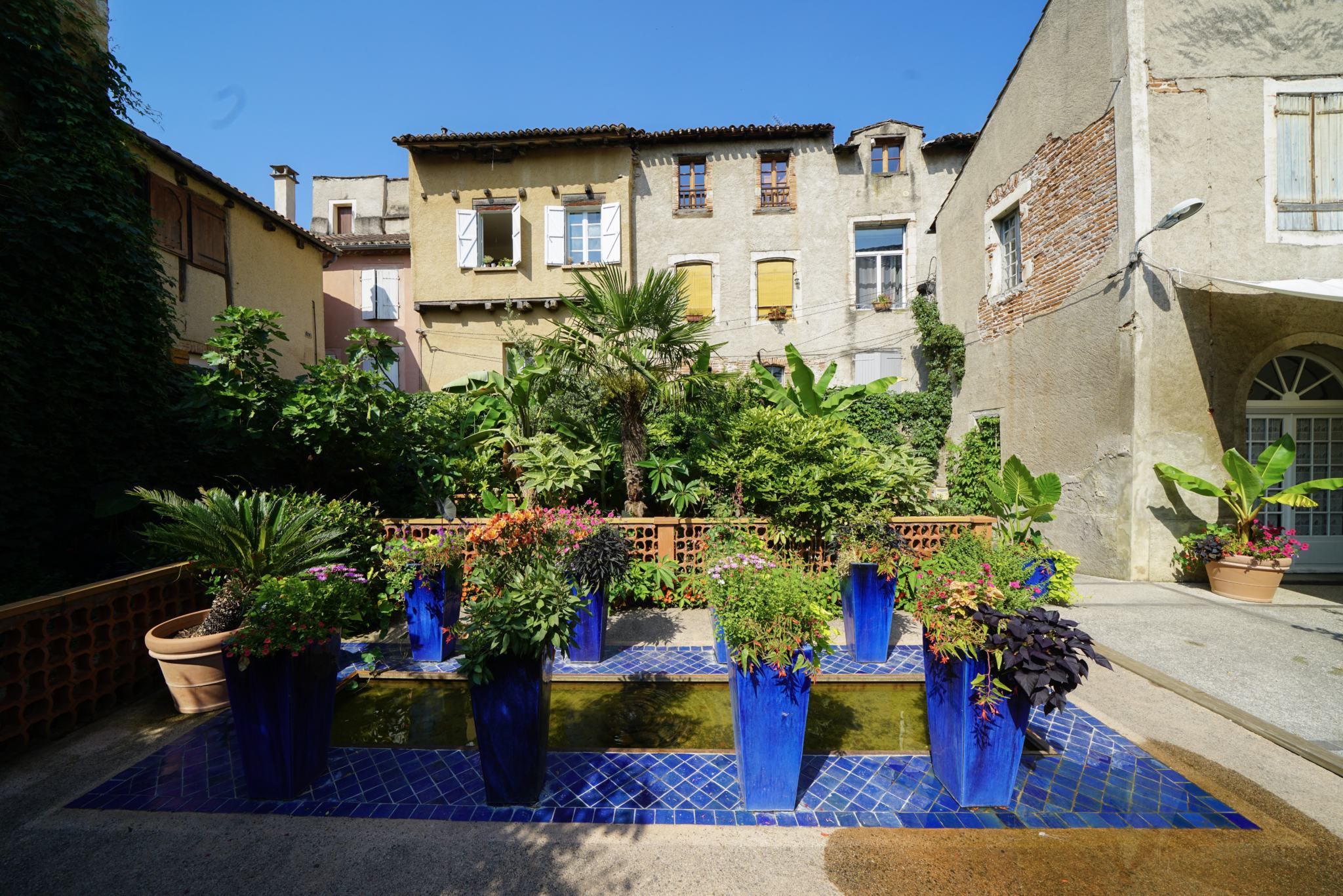 Nous reprenons la balade dans les rues, et arrivons à une autre surprise. Le « Jardin Mauresque« , d’inspiration arabe, un écrin de verdure caché dans un style oriental marocain qui m’a de suite fait penser au Jardin Majorelle à Marrakech grâce à ses jolis tons bleu nuit.