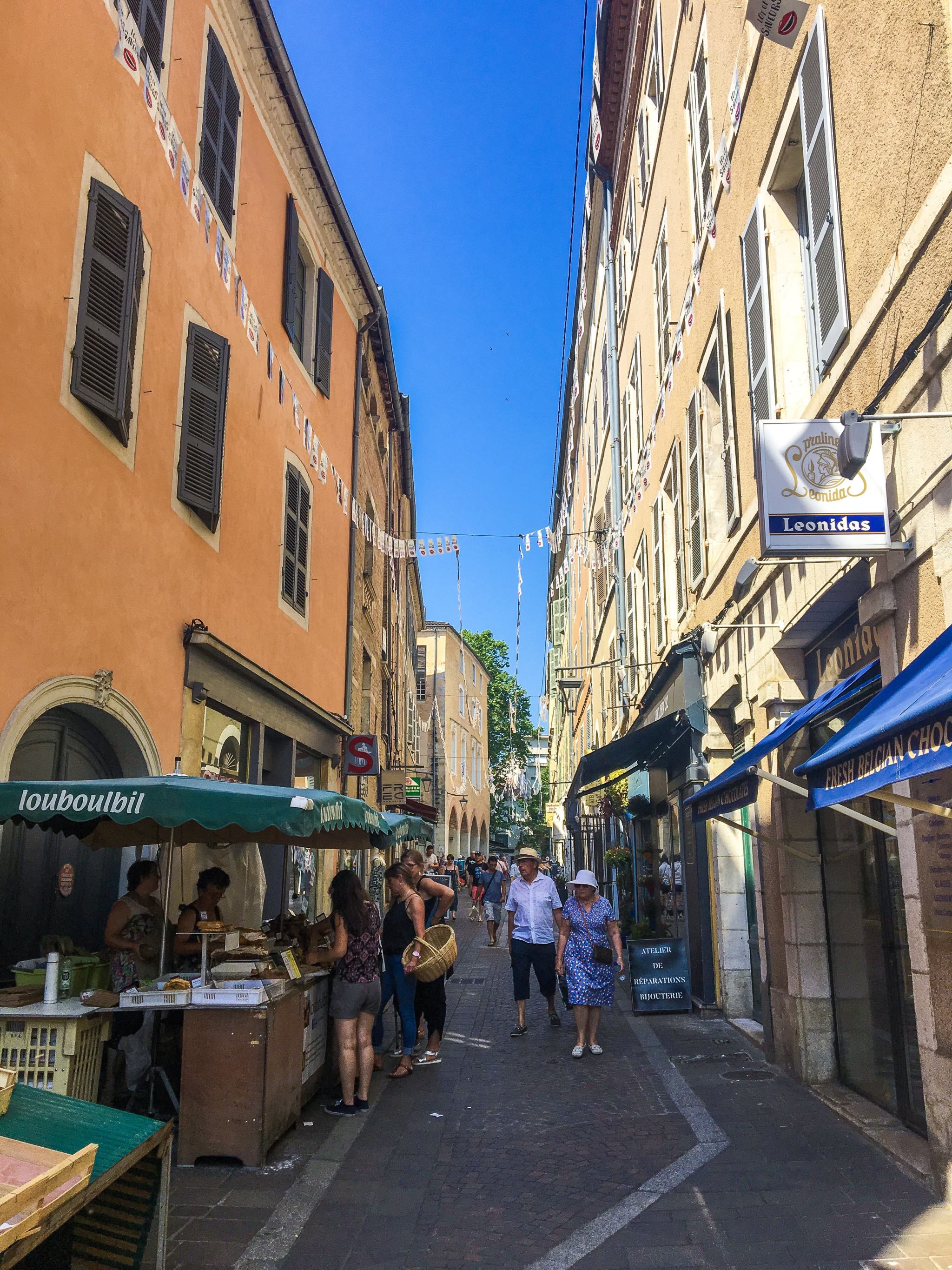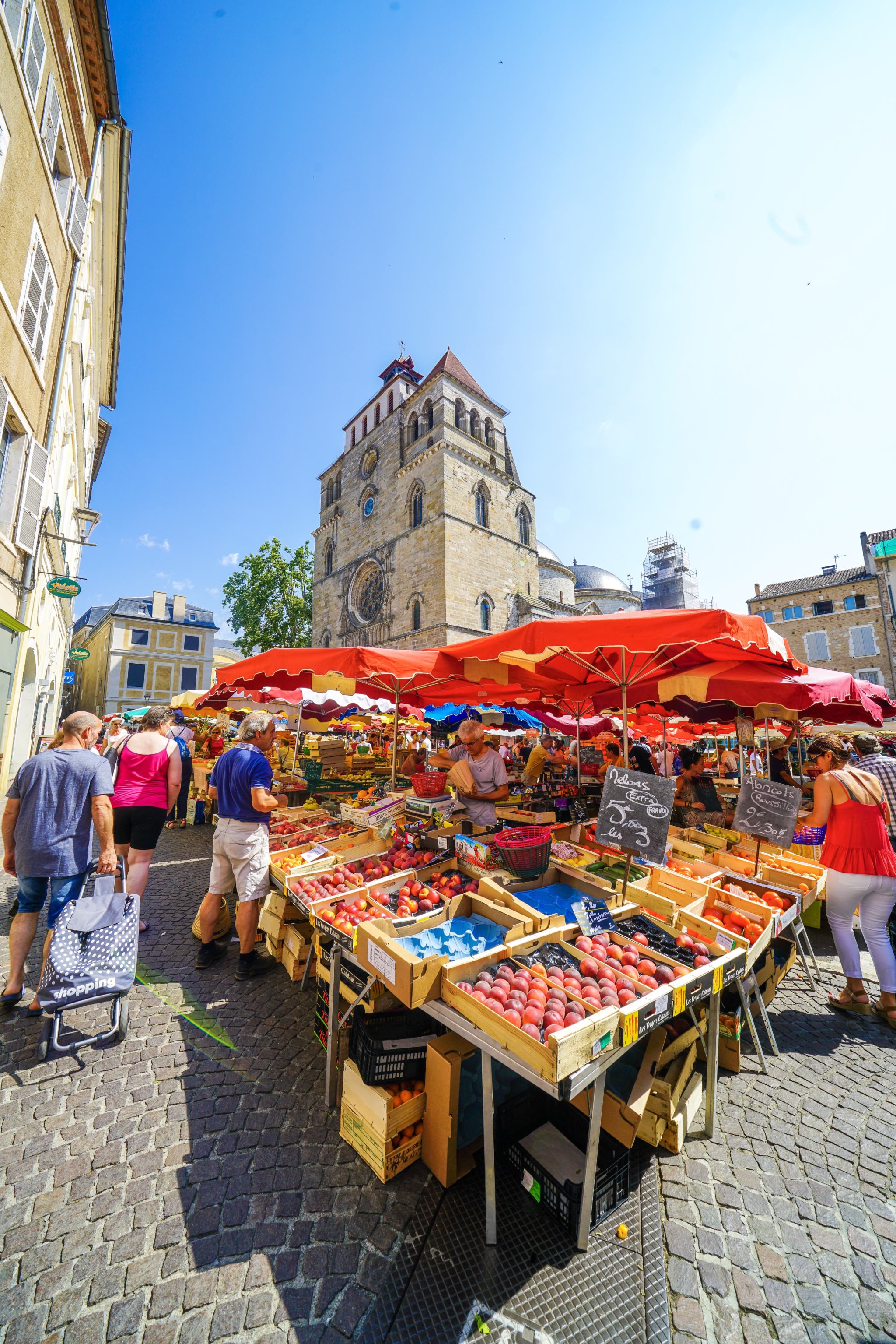 Arrivés au coeur face à la Cathédrale, nous arpentons le marché traditionnel de la ville, Place Chapou, qui prend place chaque samedi matin, un marché gourmand qui est l’un des plus beaux que j’ai fait.
