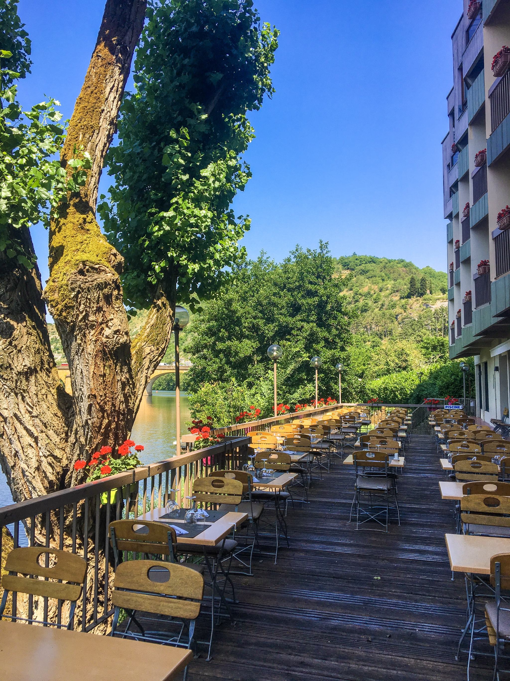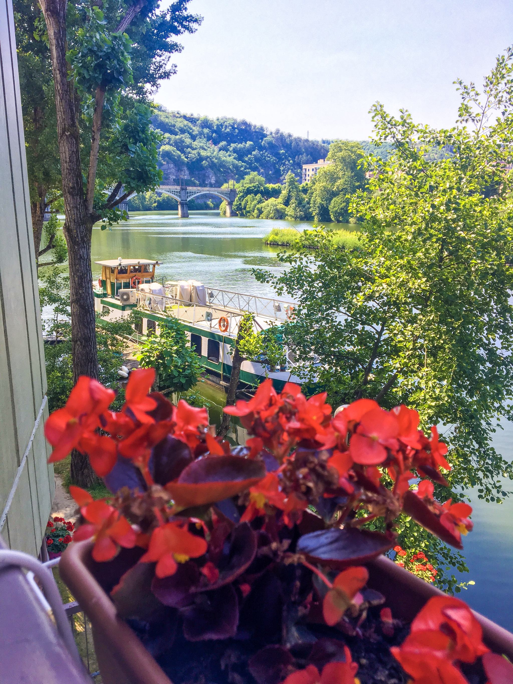 Gentiment accueillis par l’équipe du festival, nous sommes installés à l’Hôtel Restaurant La Chartreuse, un bel hôtel fleuri avec une superbe vue sur le Lot, voyez plutôt !
