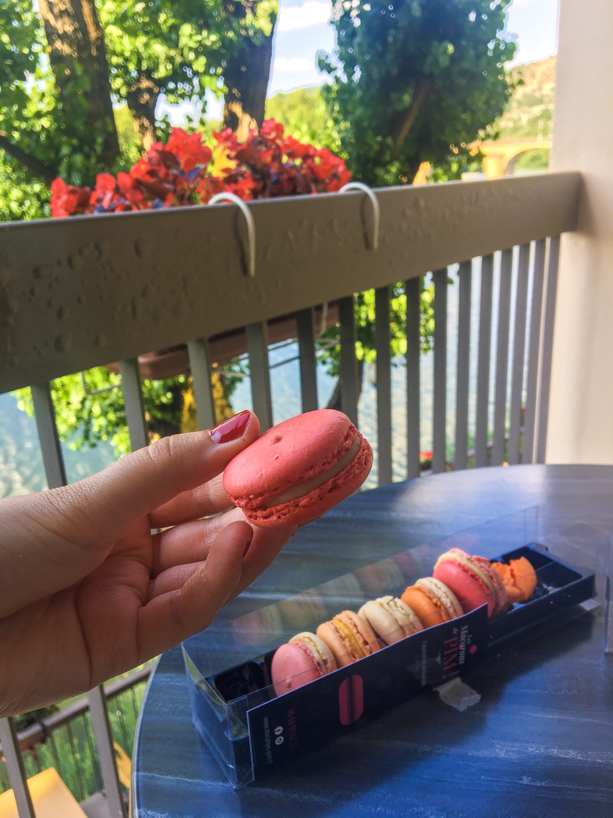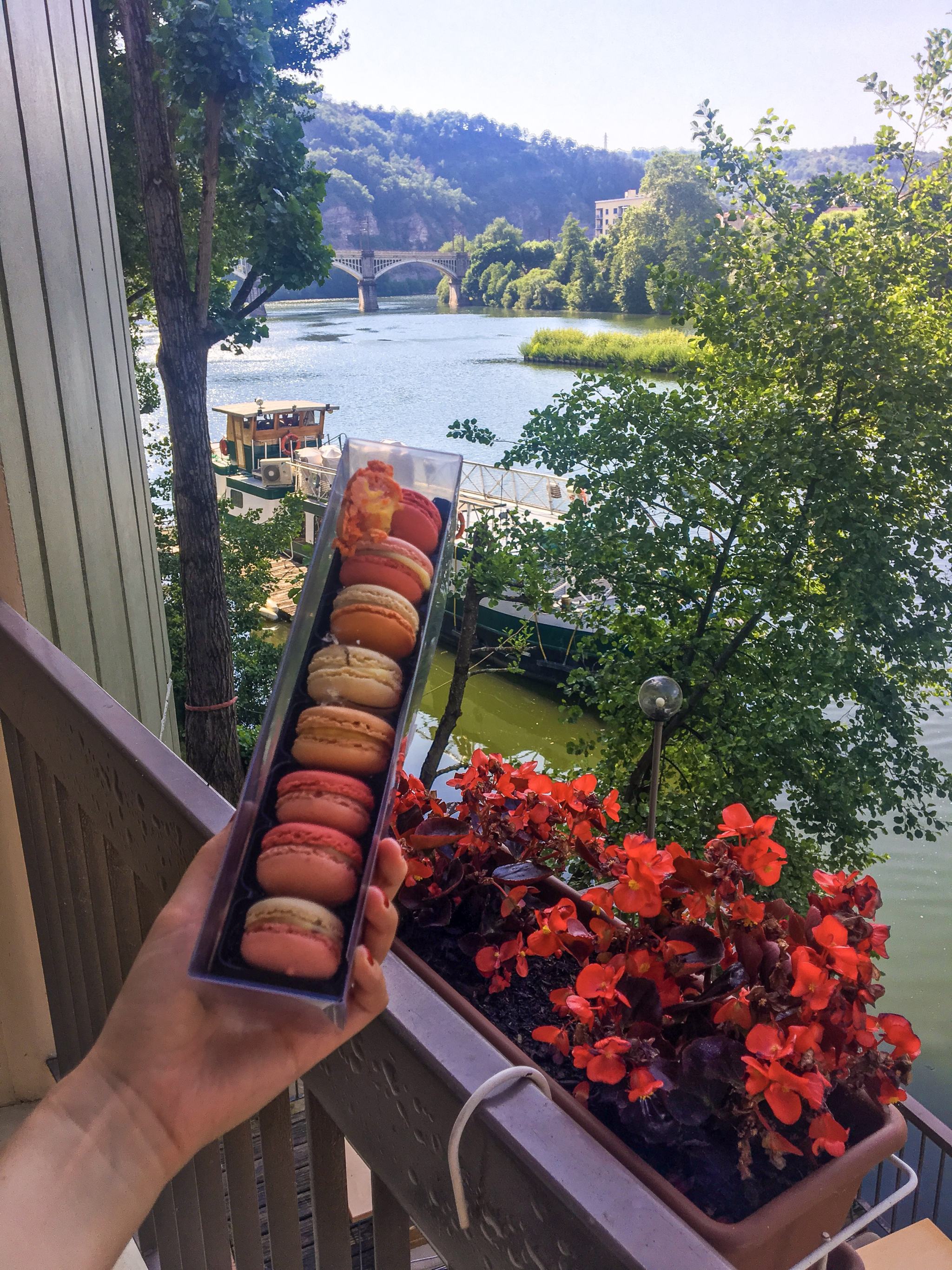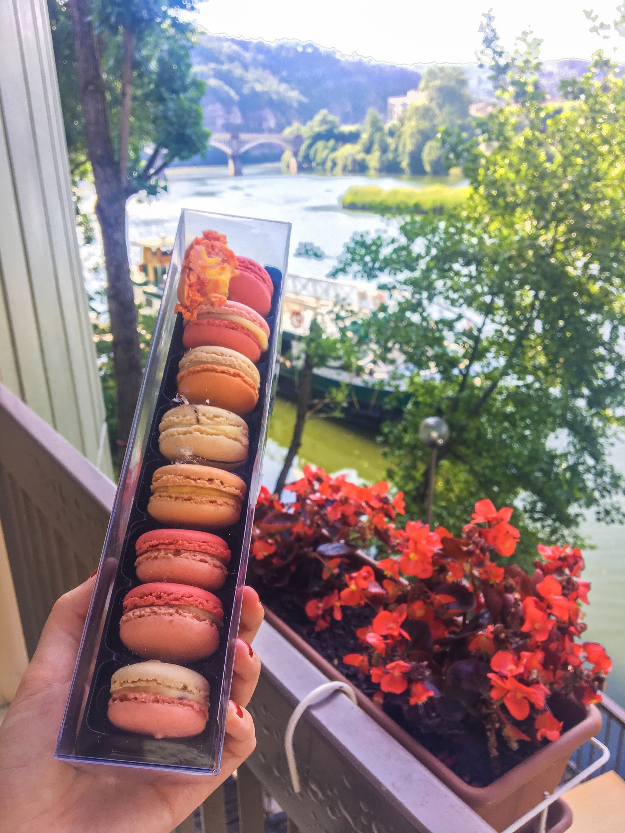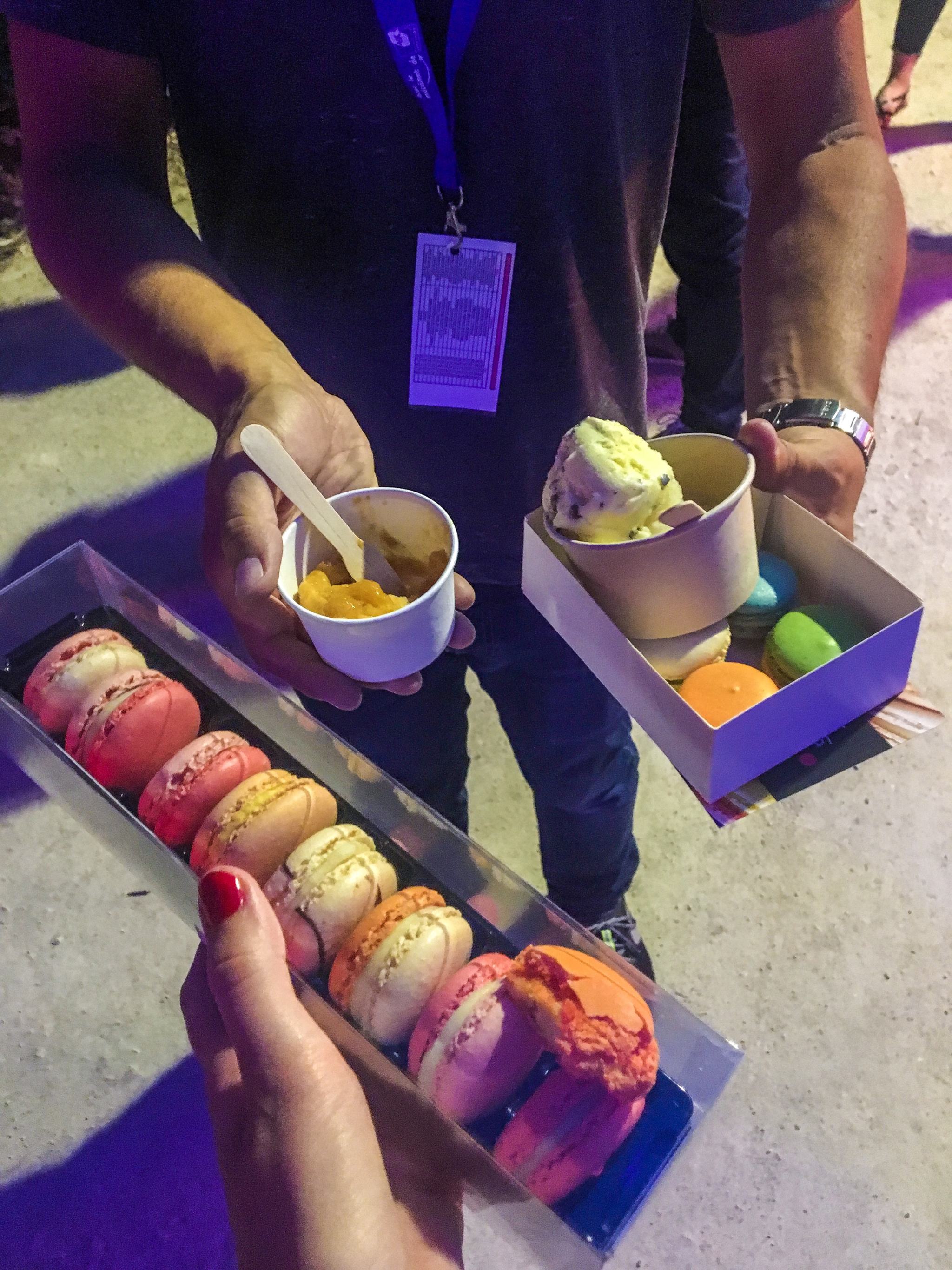 La soirée s’est terminée au Marché Gourmand pour un excellent dîner et moment partagé tous ensemble dans le Square Olivier-de-Magny. Une ambiance festive et chaleureuse au milieu des arbres recouverts de décorations lumineuses colorées, de grandes tablées d’hôtes pour recevoir tout le monde. Tous les producteurs de la région se sont réunis sur cette place pour servir des denrées locales, entre salades fraîches, fromages, pains, vins, glaces et aussi ces macarons de fabrication artisanale de la Maison Pim chez qui nous avons fait une razzia ! Des goûts comme jamais je n’ai goûté et des parfums assez peu communs qui nous ont de suite conquis…rose framboise, thé agrumes, safran-fleur d’oranger, chocolat blanc-framboise, bounty, noix-caramel beurre salé entre autres…