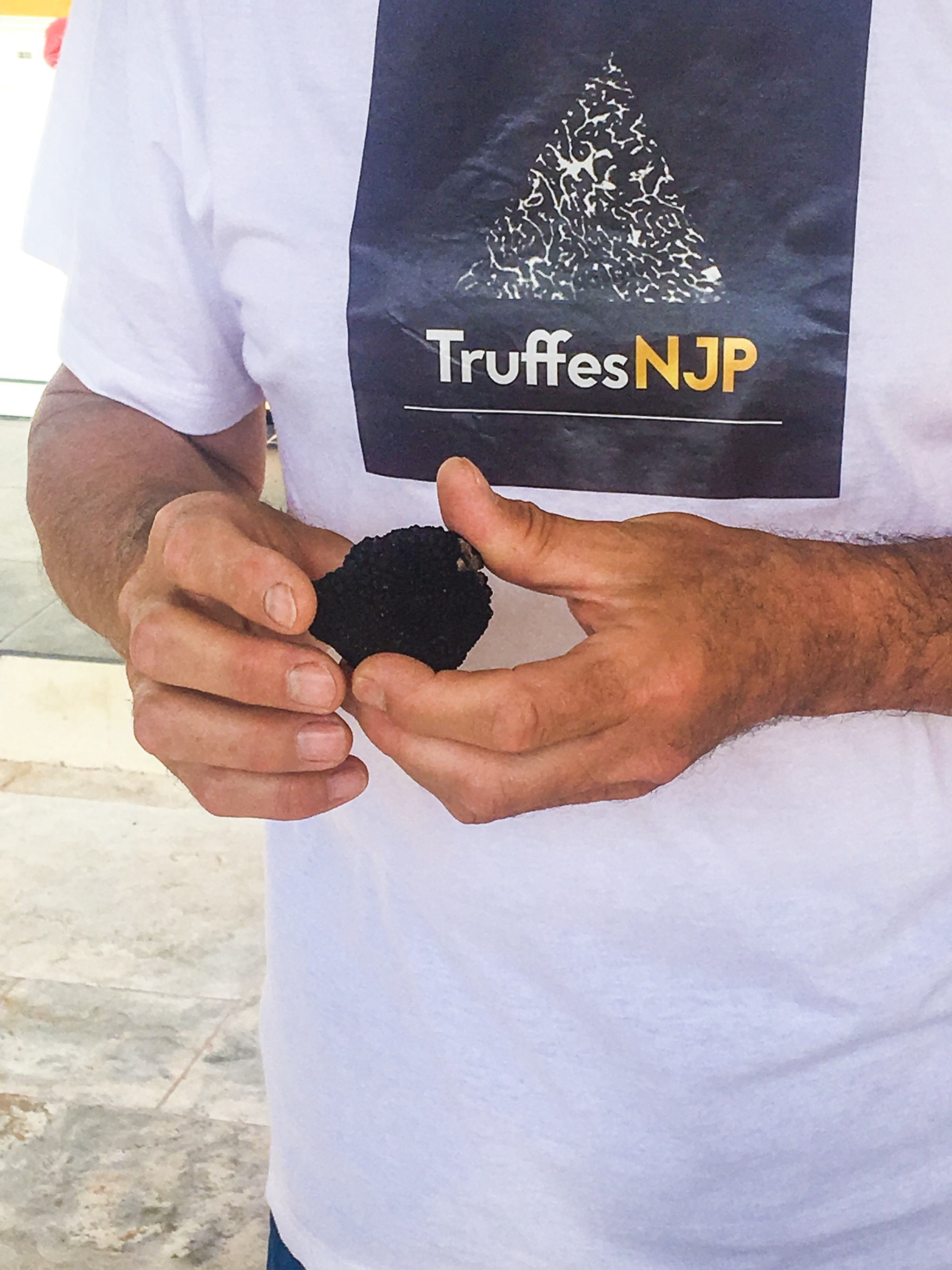Notre déplacement dans cette ville concerne surtout la découverte de ses spécialités comme le Vin de Cahors, un cépage malbec, réputé depuis le Moyen-Âge, l’assiette quercynoise avec son foie gras, noix, magret et cabecou qui est un fromage fondant au lait de chèvre cru, la fleur de crocus utilisée pour sortir le safran, et bien sûr ce pourquoi on est venu : la truffe noire ! Le produit exceptionnel de l’édition 2019 du festival, fierté des lotois, elle est un élément essentiel de la haute gastronomie cadurcienne. On la surnomme diamant noir en raison de sa rareté. Finalement, dans ce décor bucolique, elle fait en effet une belle « muse » noire.